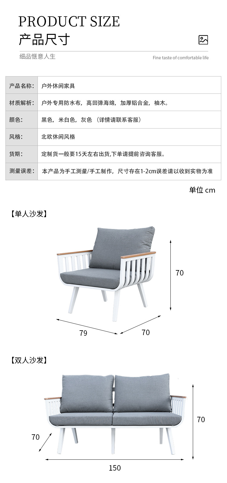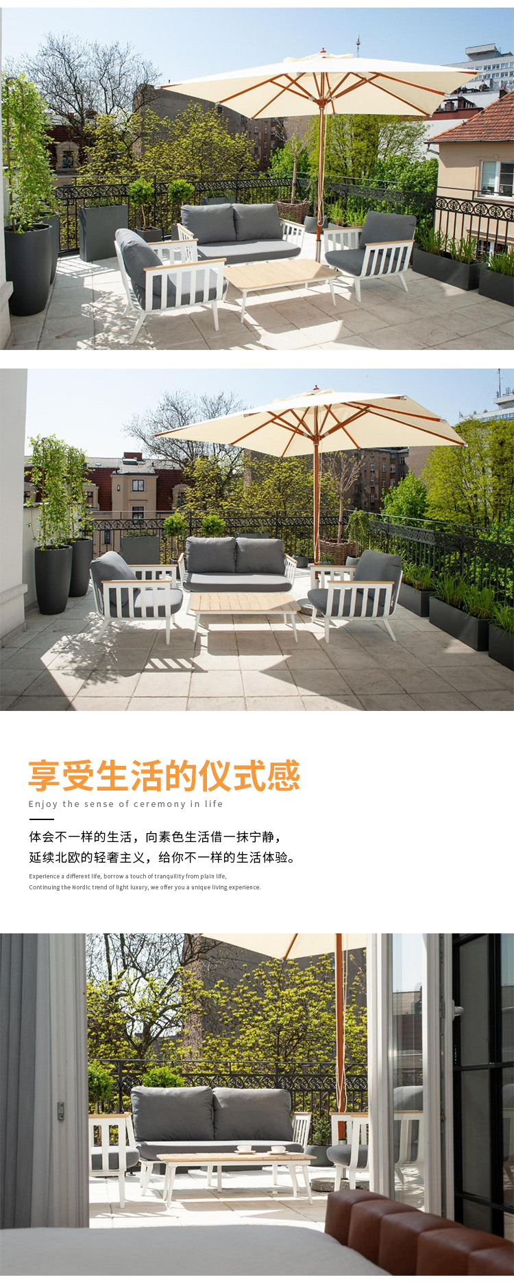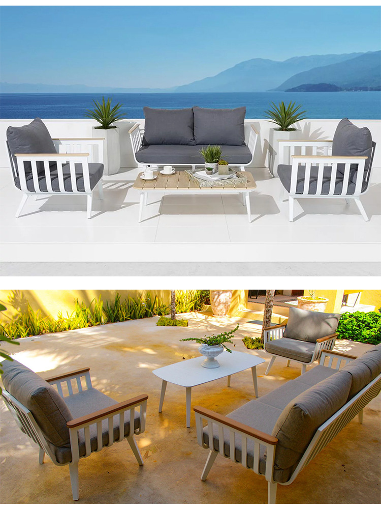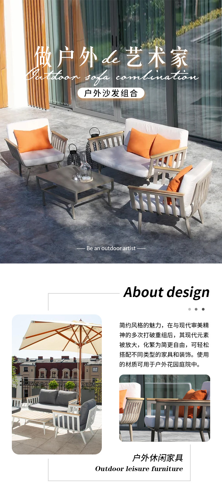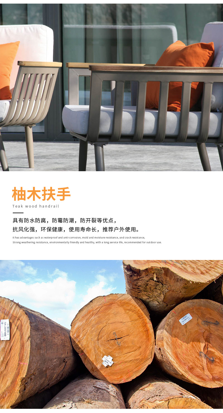 야외 소파 콤비네이션 커피 테이블 티크 테이블과 의자 안뜰 야외 발코니 레저 빌라 정원 방수 자외선 차단제 야외
