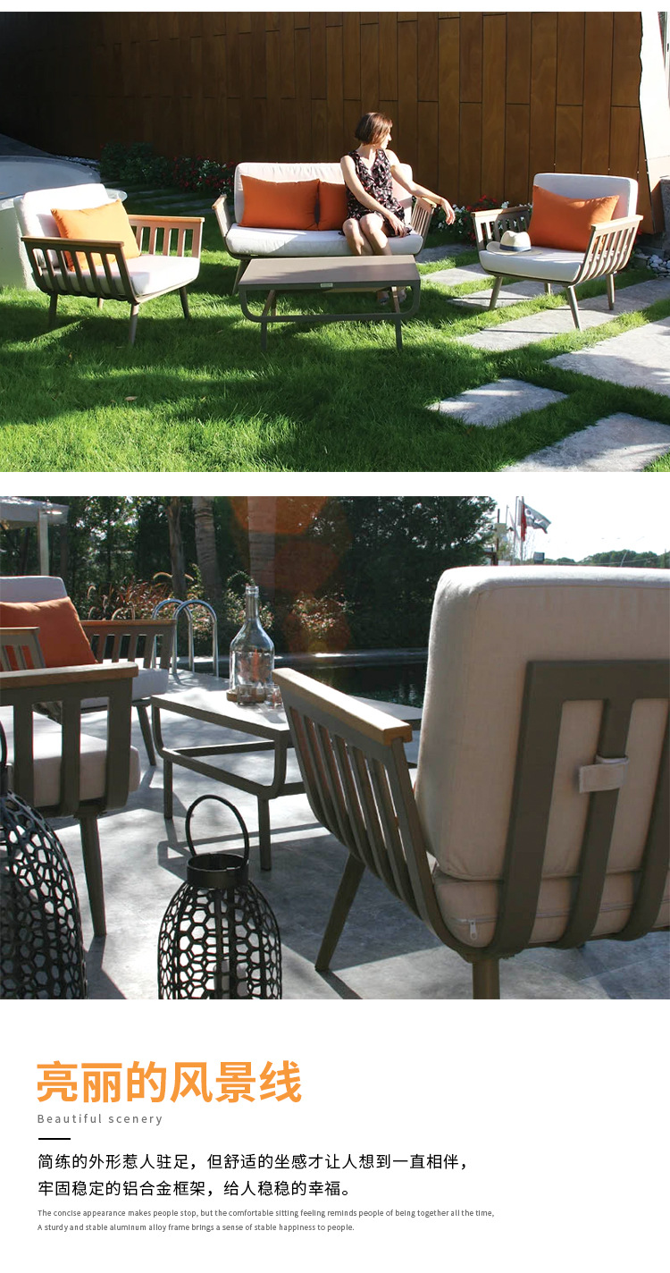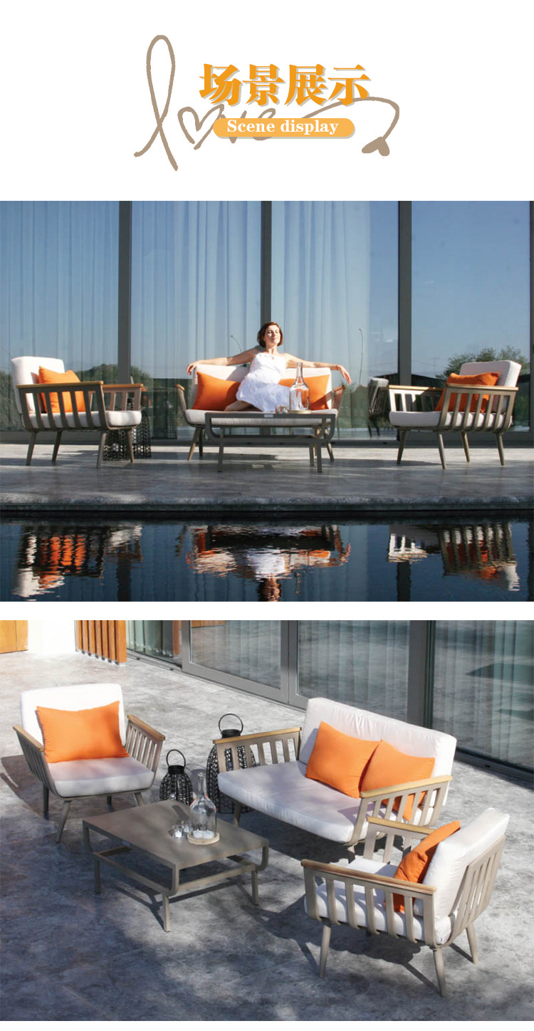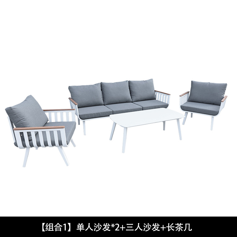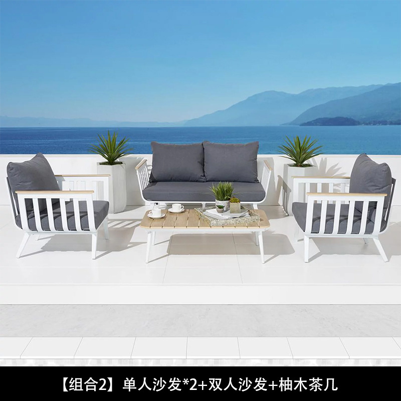 야외 소파 콤비네이션 커피 테이블 티크 테이블과 의자 안뜰 야외 발코니 레저 빌라 정원 방수 자외선 차단제 야외스토어 가기