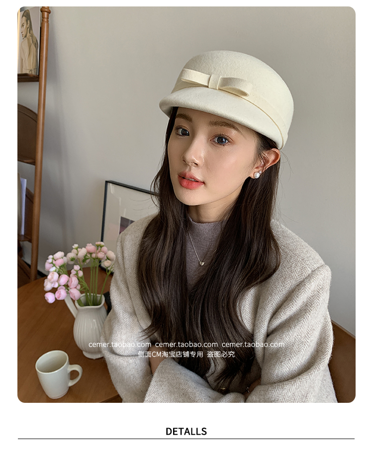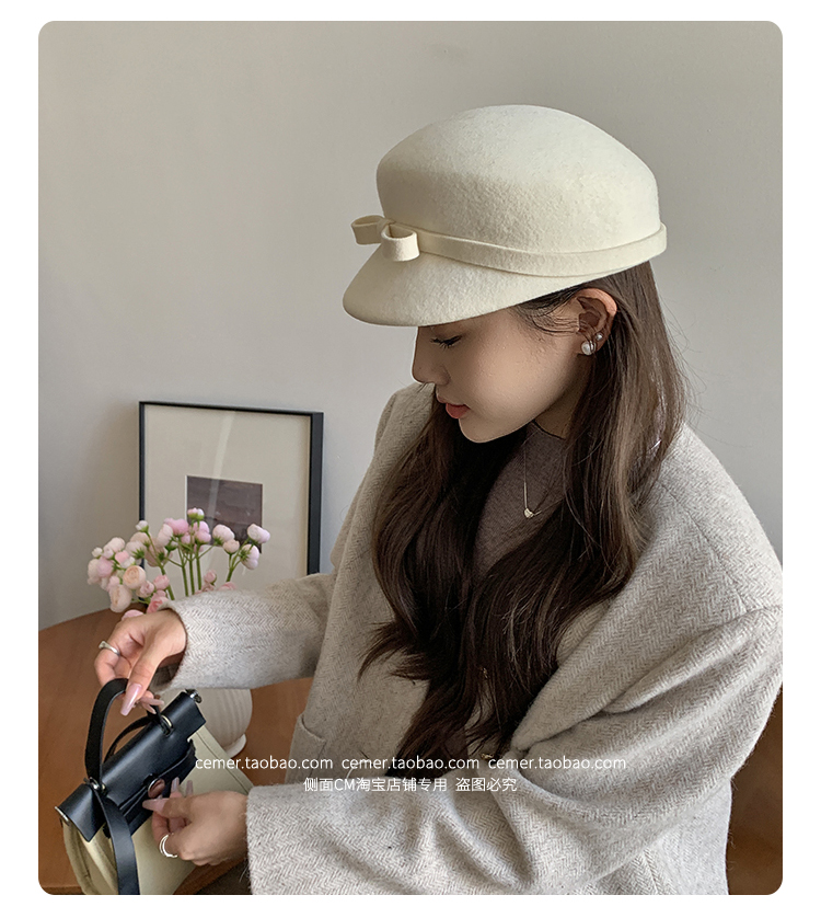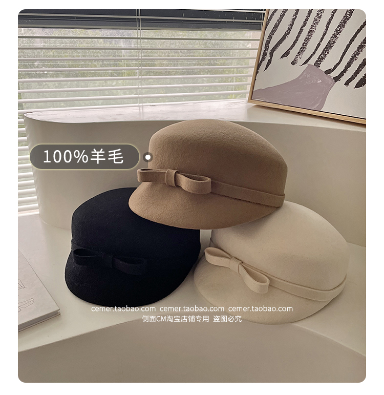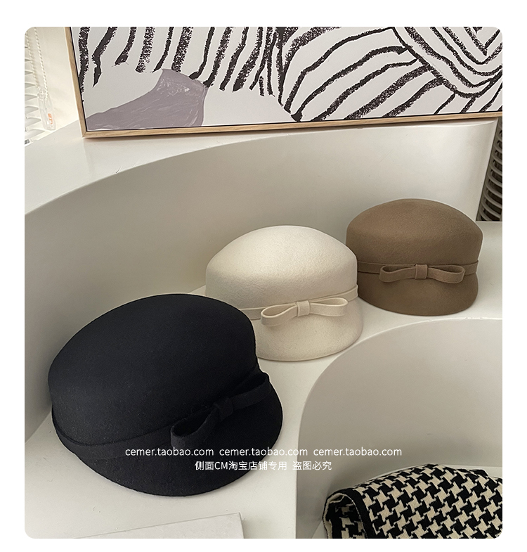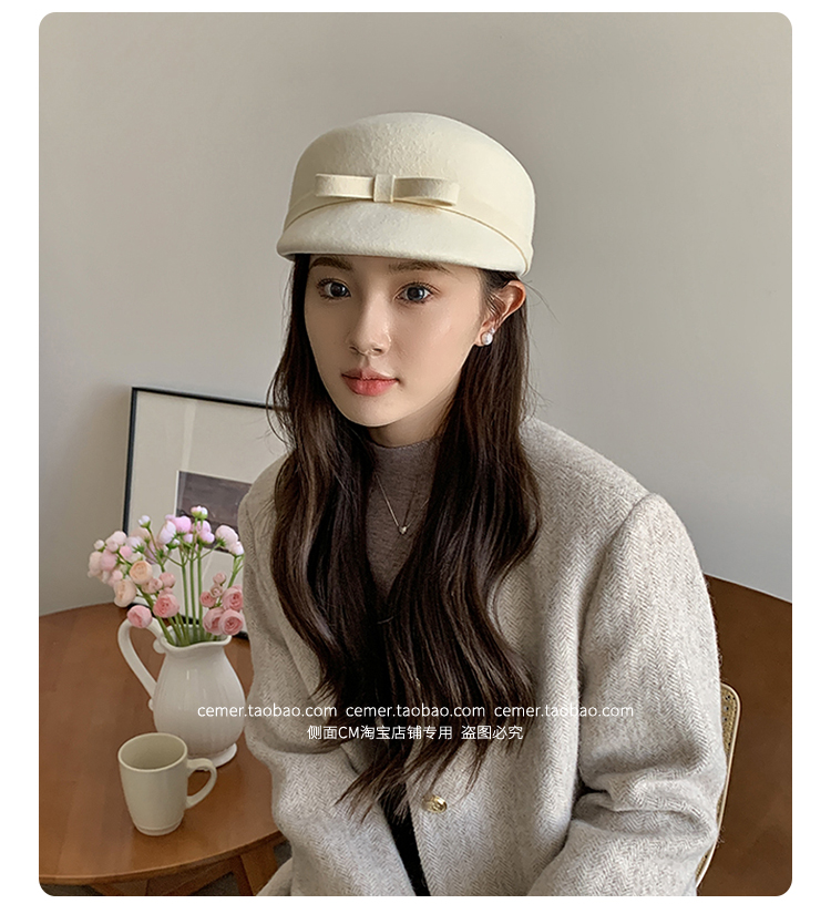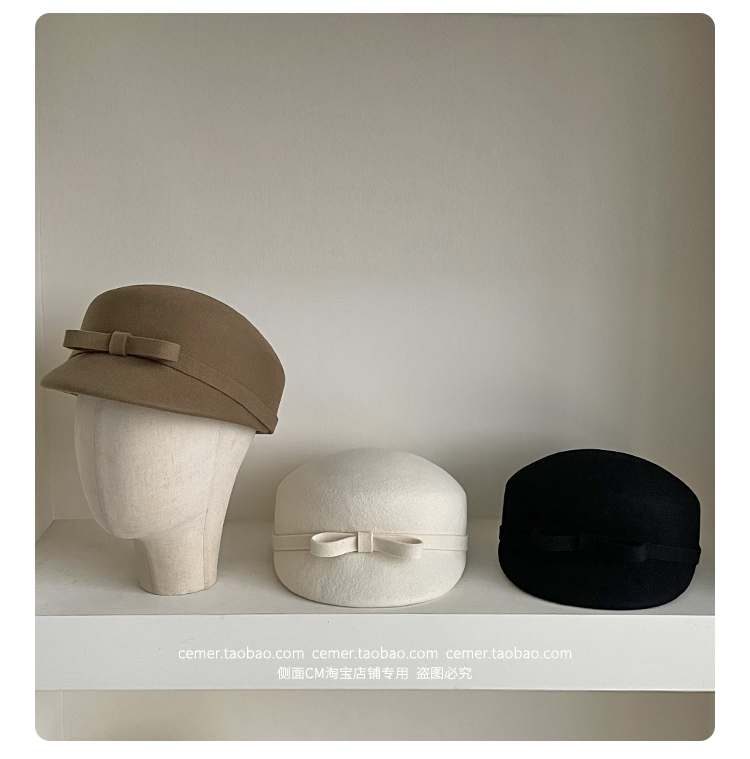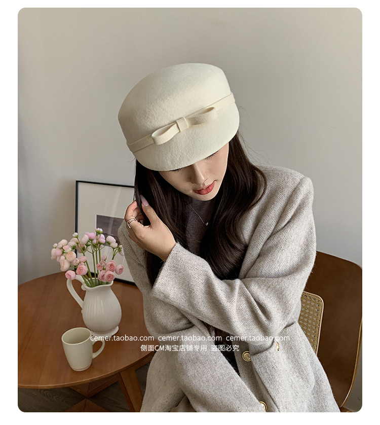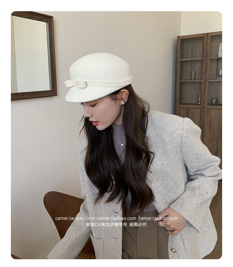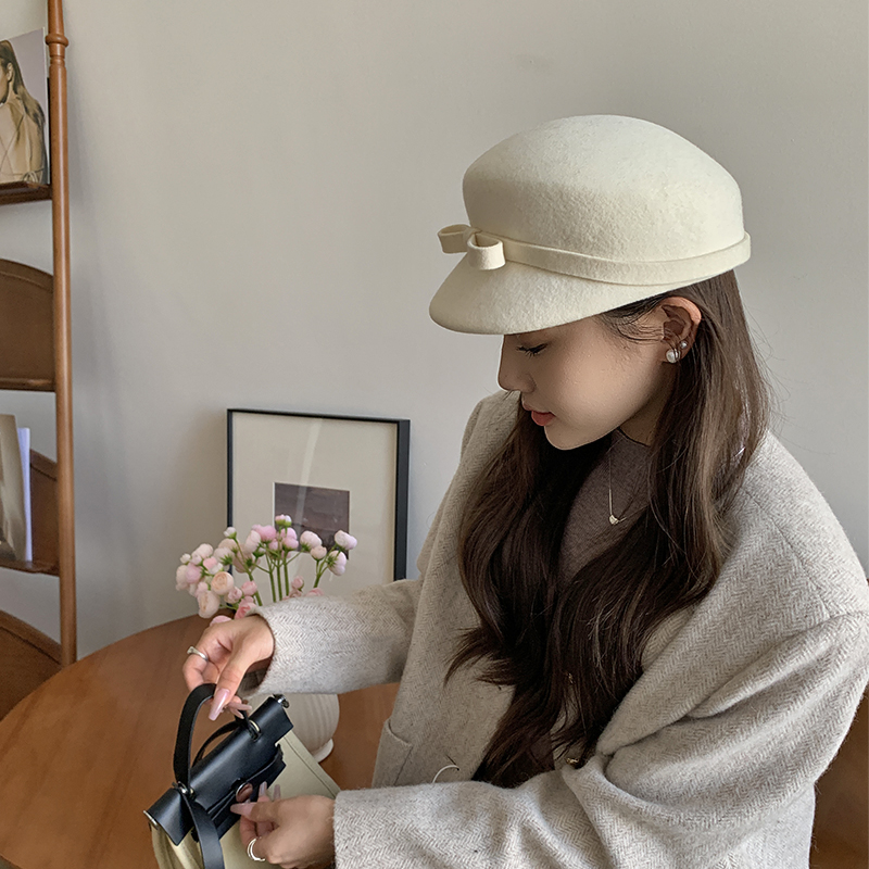 샤넬 스타일 달콤한 활 양모 모자 어린이 펠트 모자 하이 엔드 베레 웨스턴 스타일 프렌치 탑 모자스토어 가기