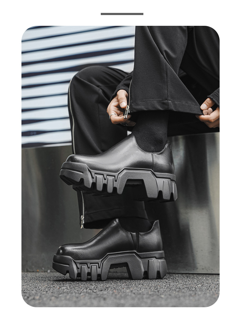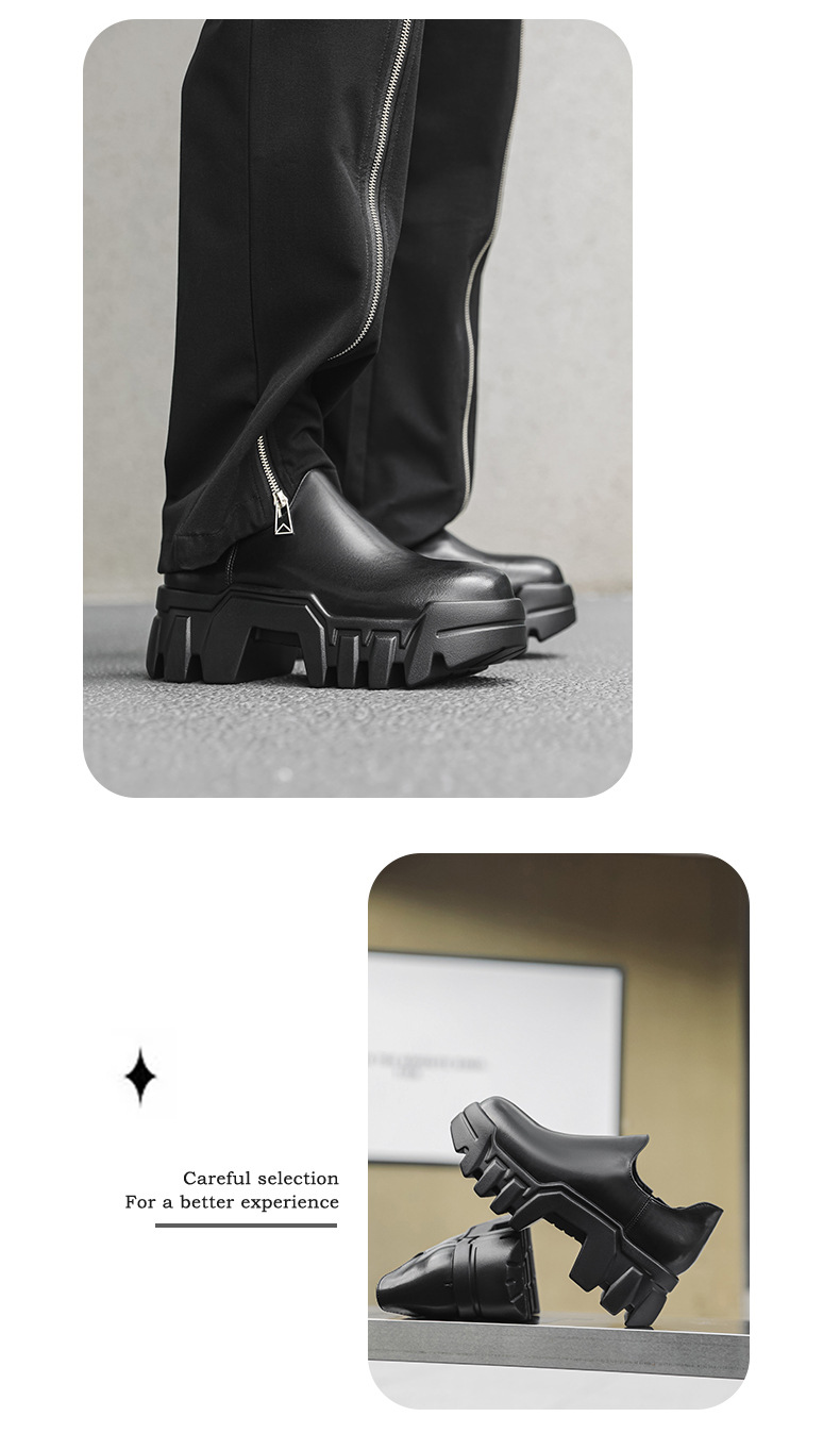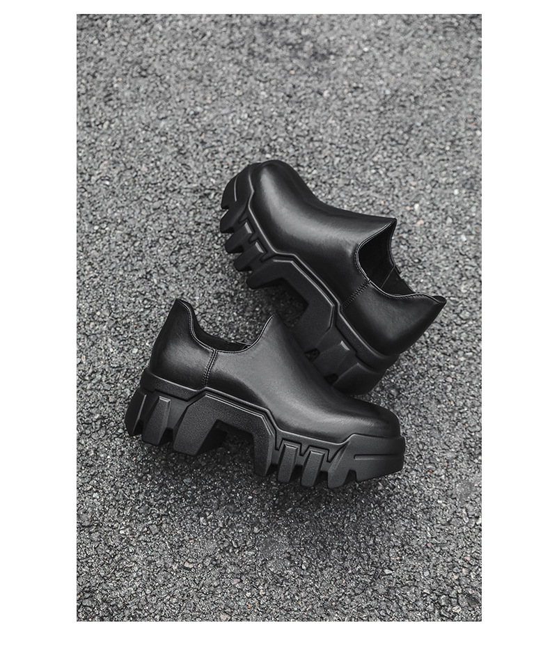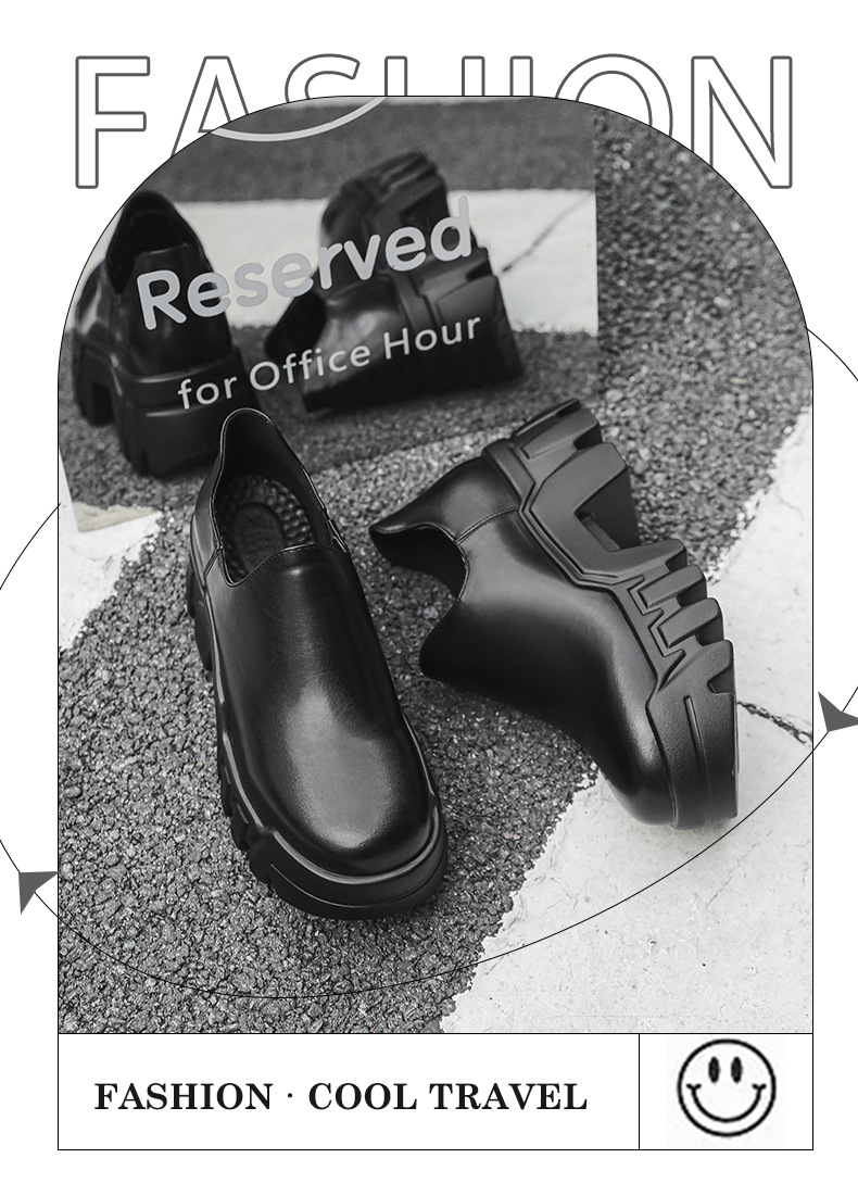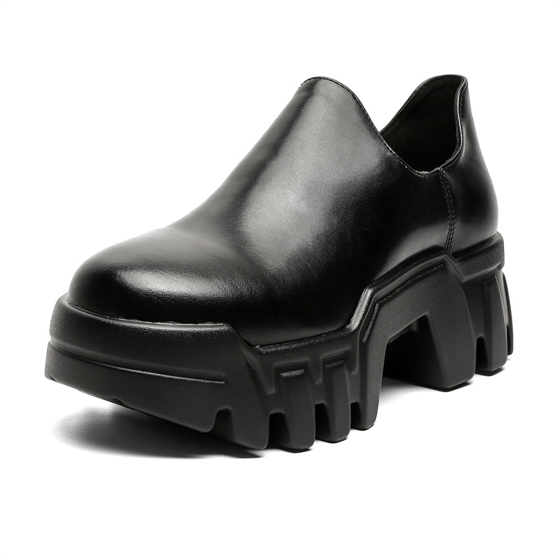 둥근 발가락 두꺼운 밑창 증가 로퍼 2024 가을 새로운 유행 올 매치 게으른 슬립 온 하이힐 가죽 신발스토어 가기