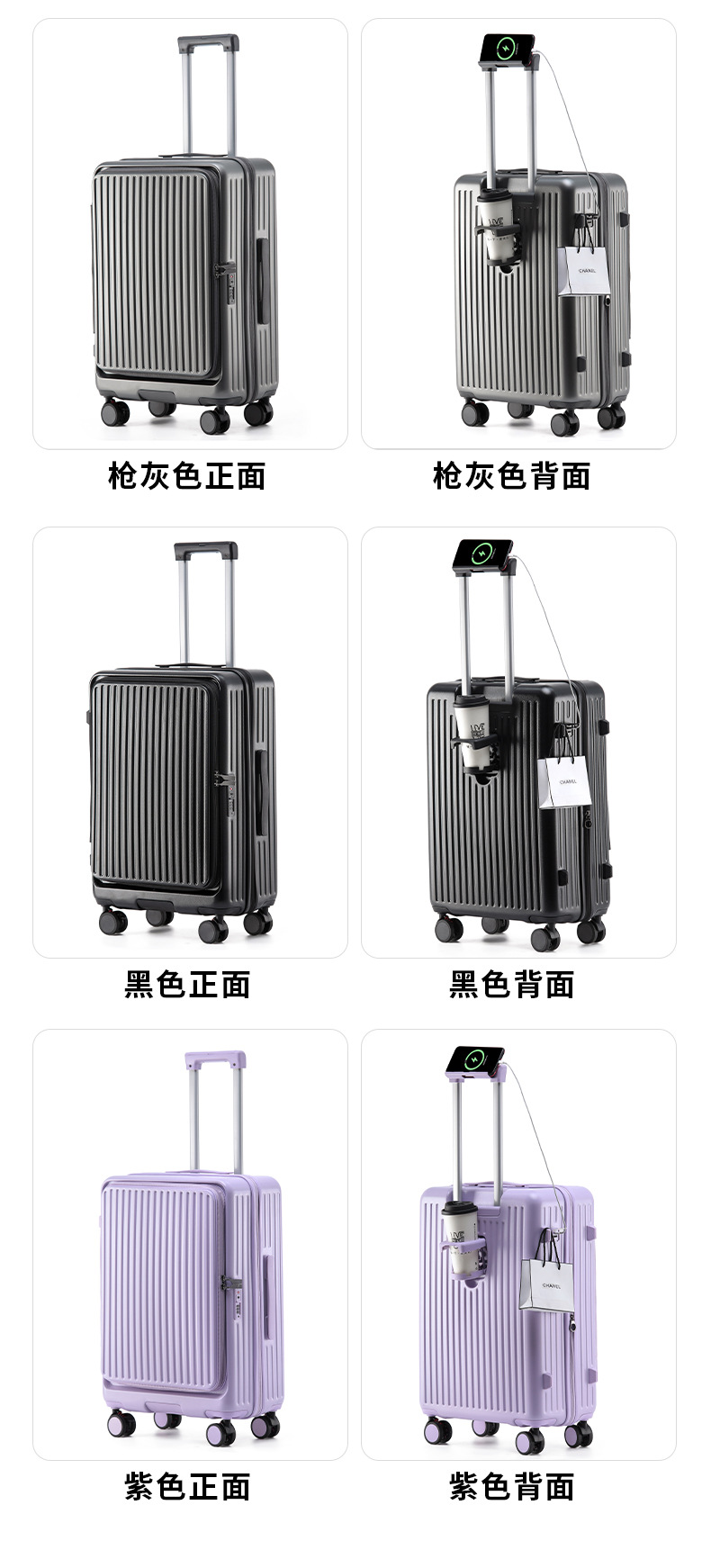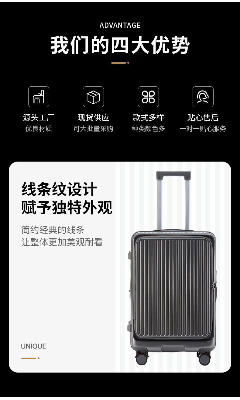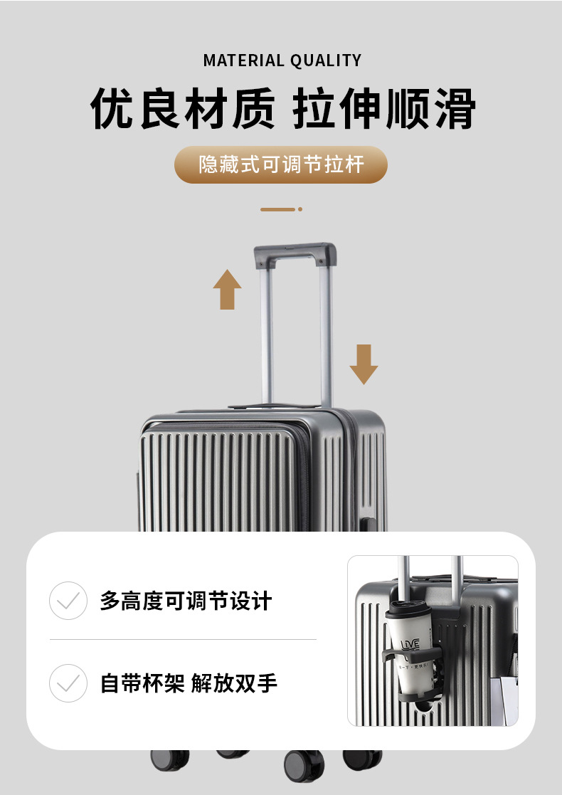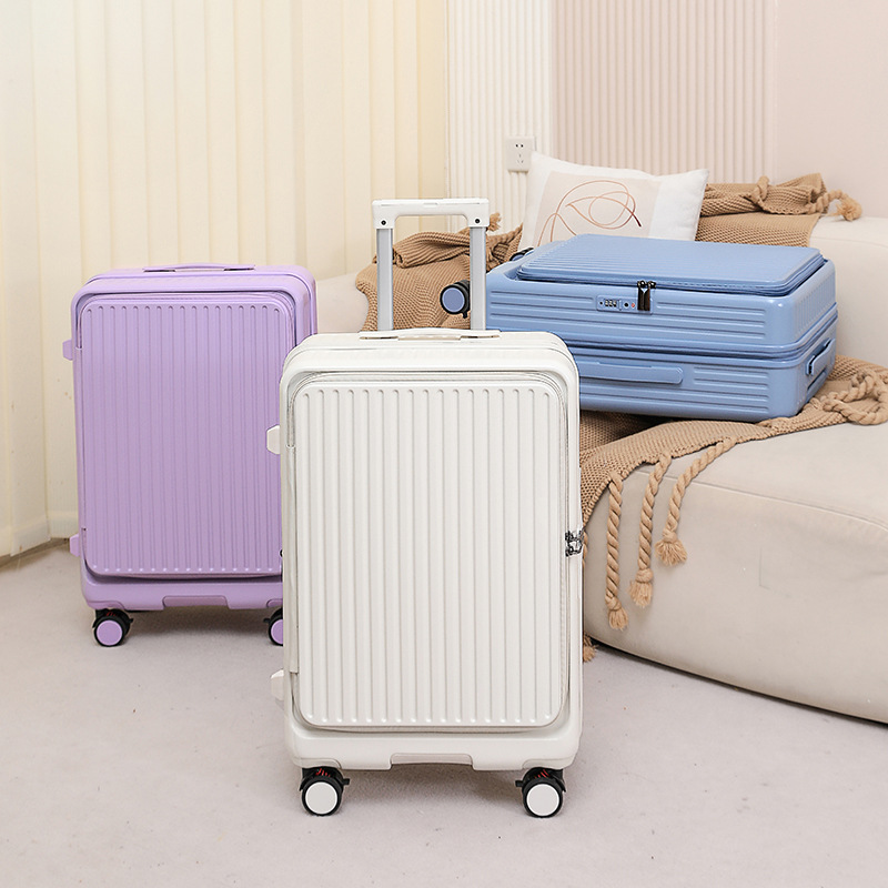 측면 개방형 다기능 여행가방, 남성용 및 여성용 신형 대용량 여행가방, 컵홀더가 포함된 경량 비밀번호 탑승 케이스