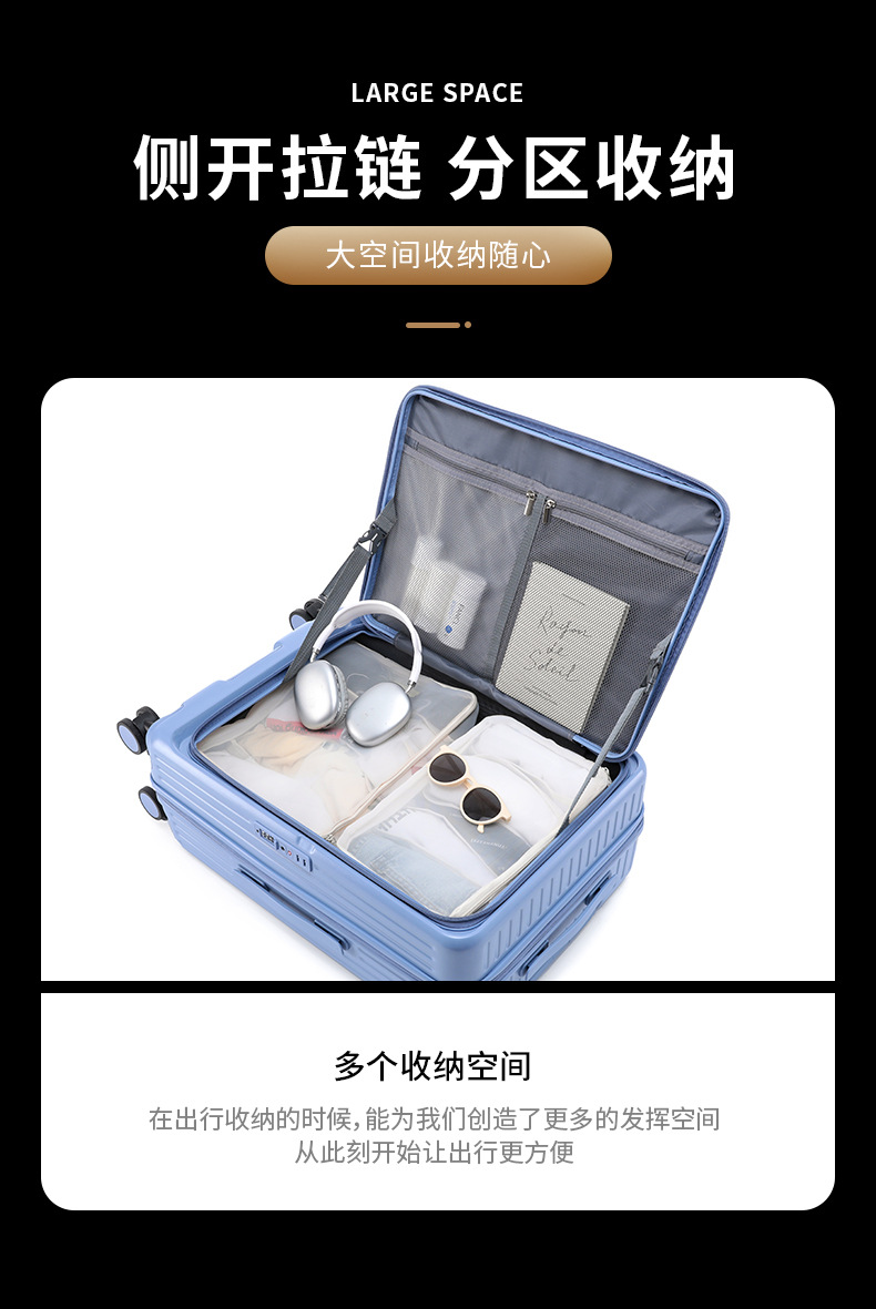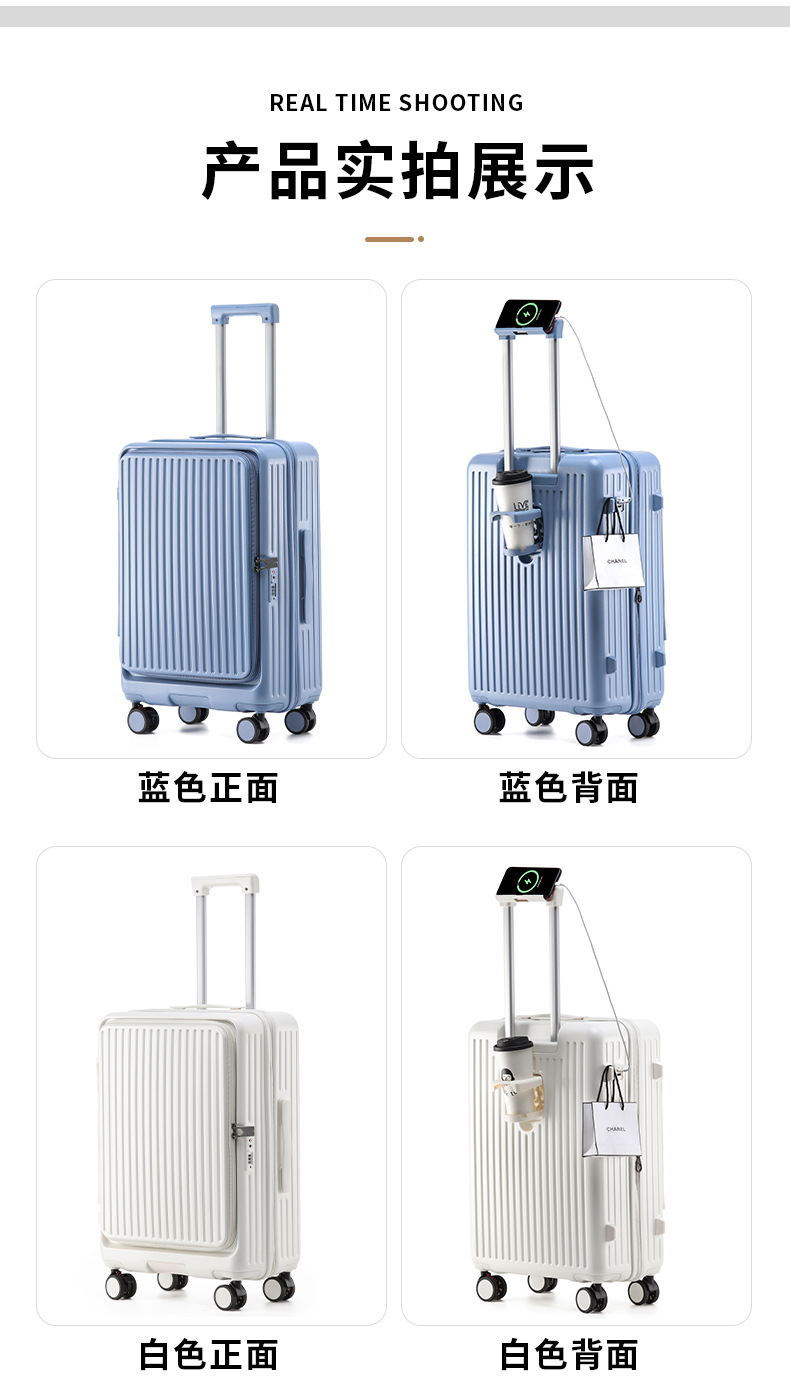 측면 개방형 다기능 여행가방, 남성용 및 여성용 신형 대용량 여행가방, 컵홀더가 포함된 경량 비밀번호 탑승 케이스스토어 가기