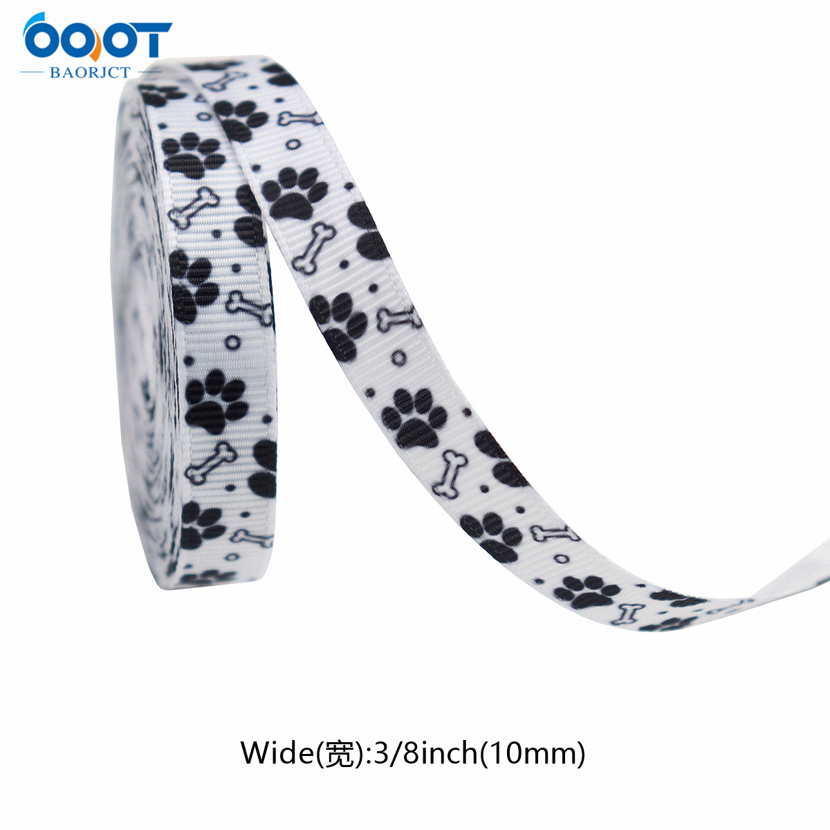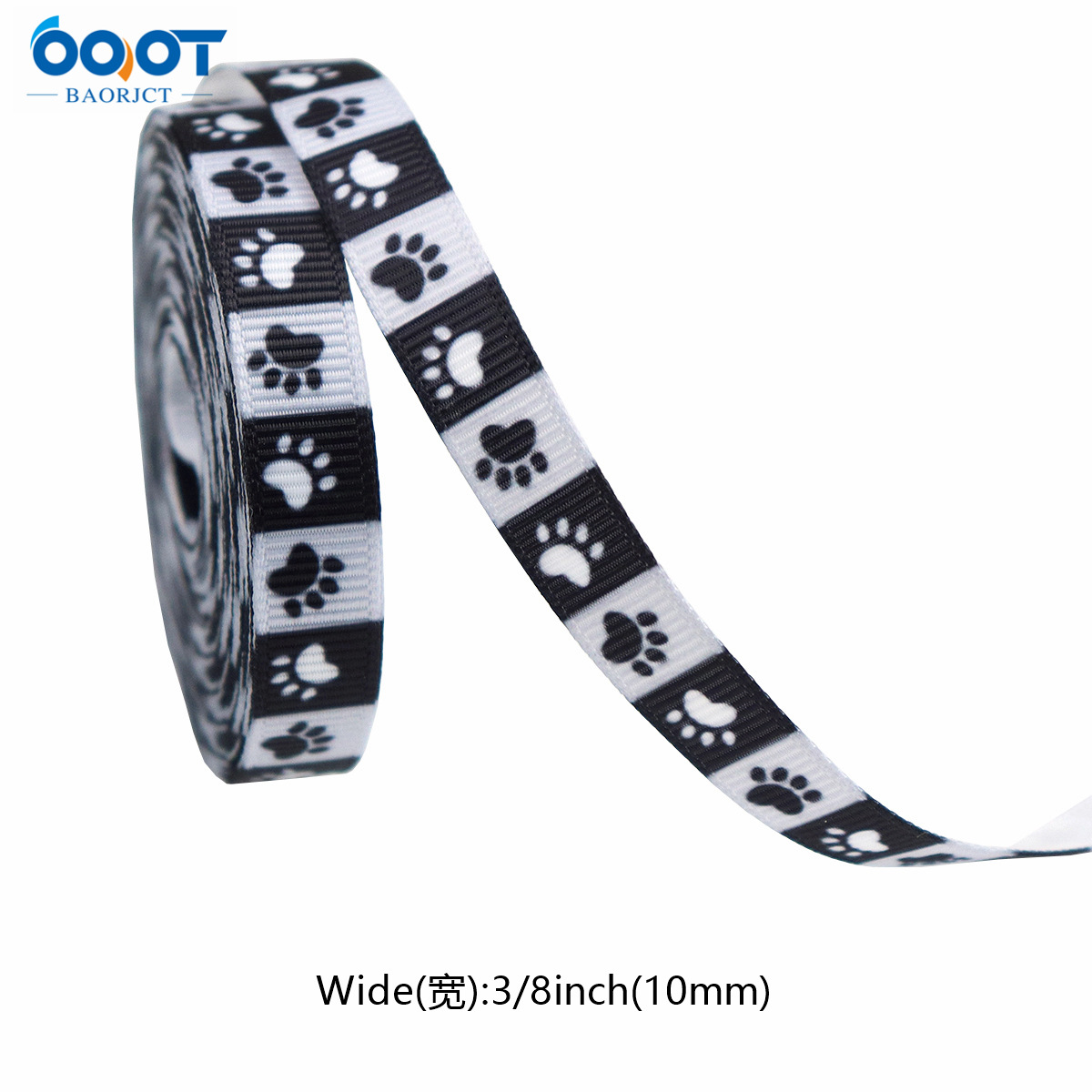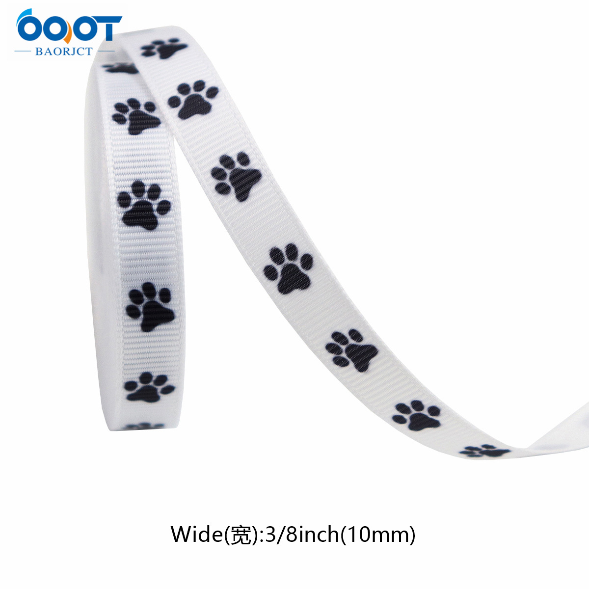 애완 동물 발자국 리본 1cm 고양이 발 인쇄 리본 DIY 생일 장식 선물 포장 칼라 견인 로프 리본