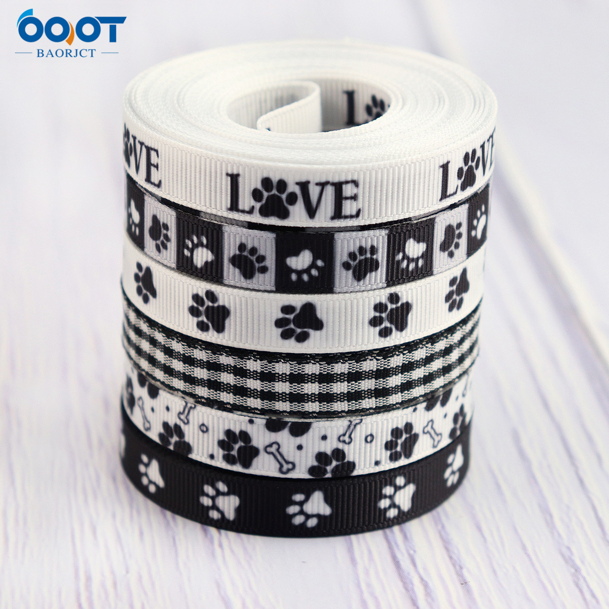 애완 동물 발자국 리본 1cm 고양이 발 인쇄 리본 DIY 생일 장식 선물 포장 칼라 견인 로프 리본스토어 가기