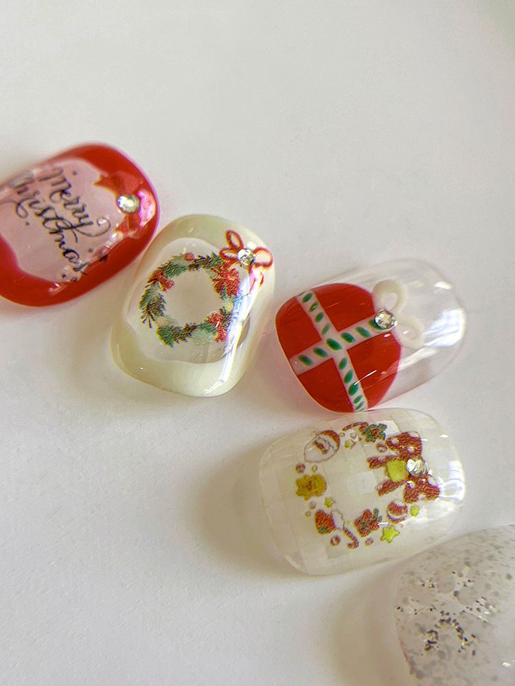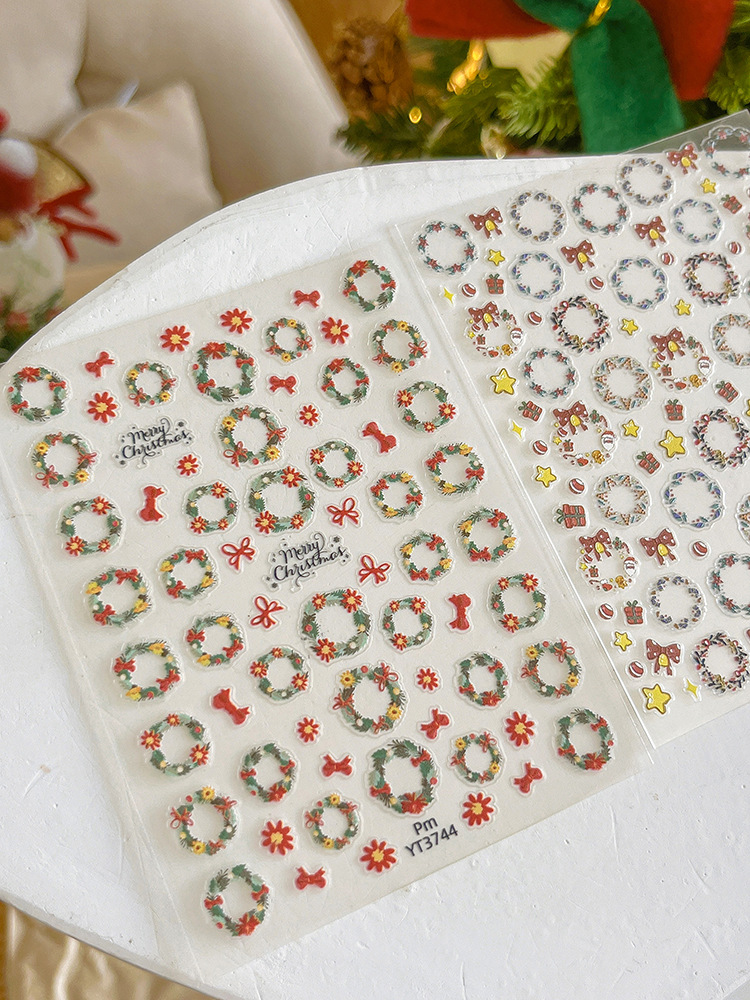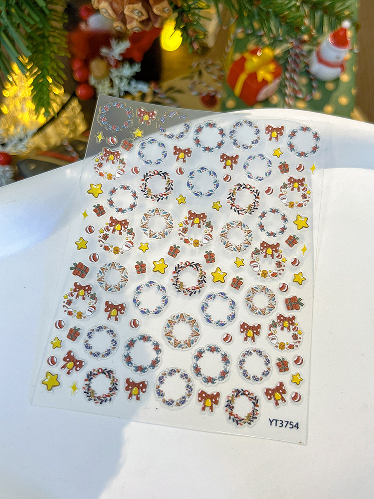 YITU 개미 그림 활 크리스마스 화환 네일 아트 스티커 3 차원 구호 접착 네일 장식 데칼 YT3754스토어 가기