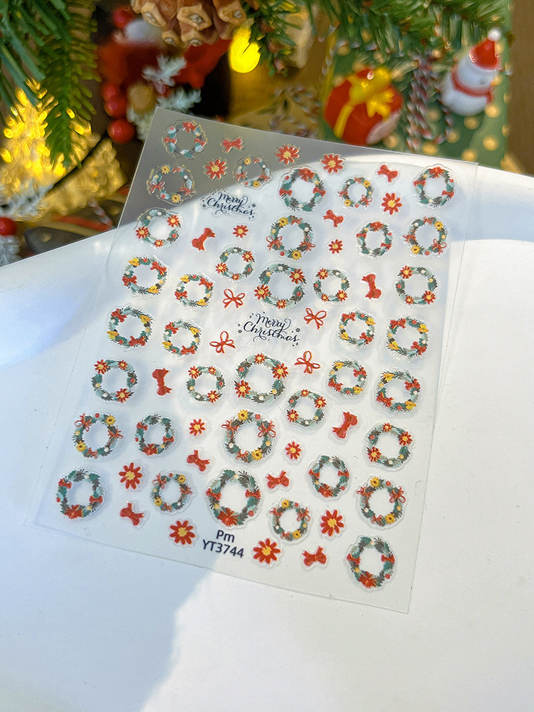 YITU 개미 그림 활 크리스마스 화환 네일 아트 스티커 3 차원 구호 접착 네일 장식 데칼 YT3754