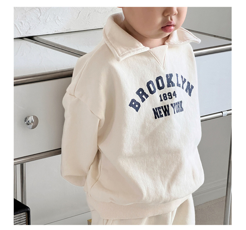 2024 년 아동복 Ins 한국식 어린이 봄 가을 세트 편지 패턴 옷깃 트랩 스웨트 셔츠를 입은 소년 소녀를위한 투피스 세트스토어 가기