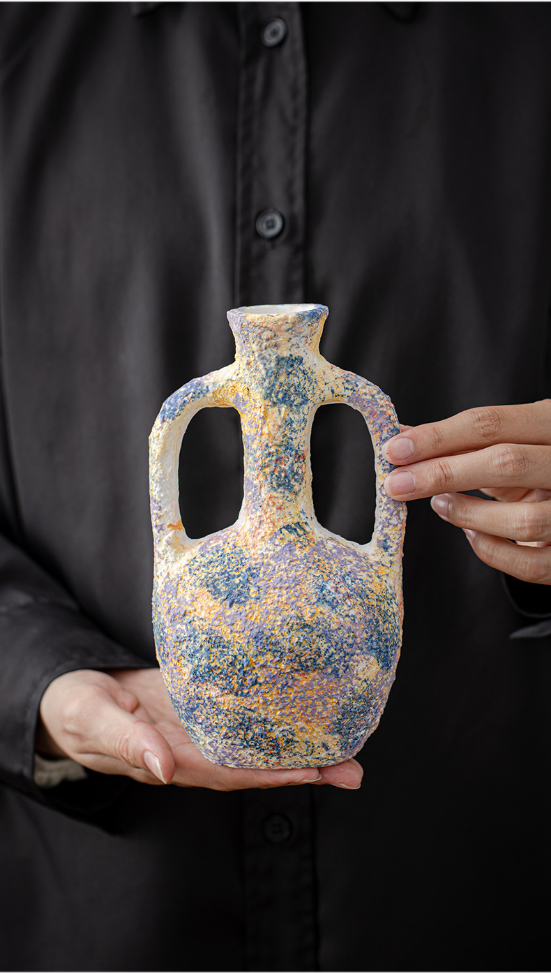 Fu Gu Sha Ji Feng 거친 도자기 손으로 그린 시리즈 세라믹 꽃병 골동품 수제 향수 거실 TV 캐비닛 티 테이블 꽃 배열