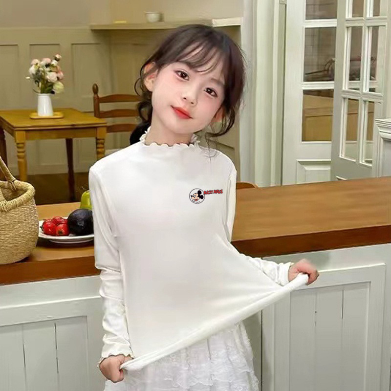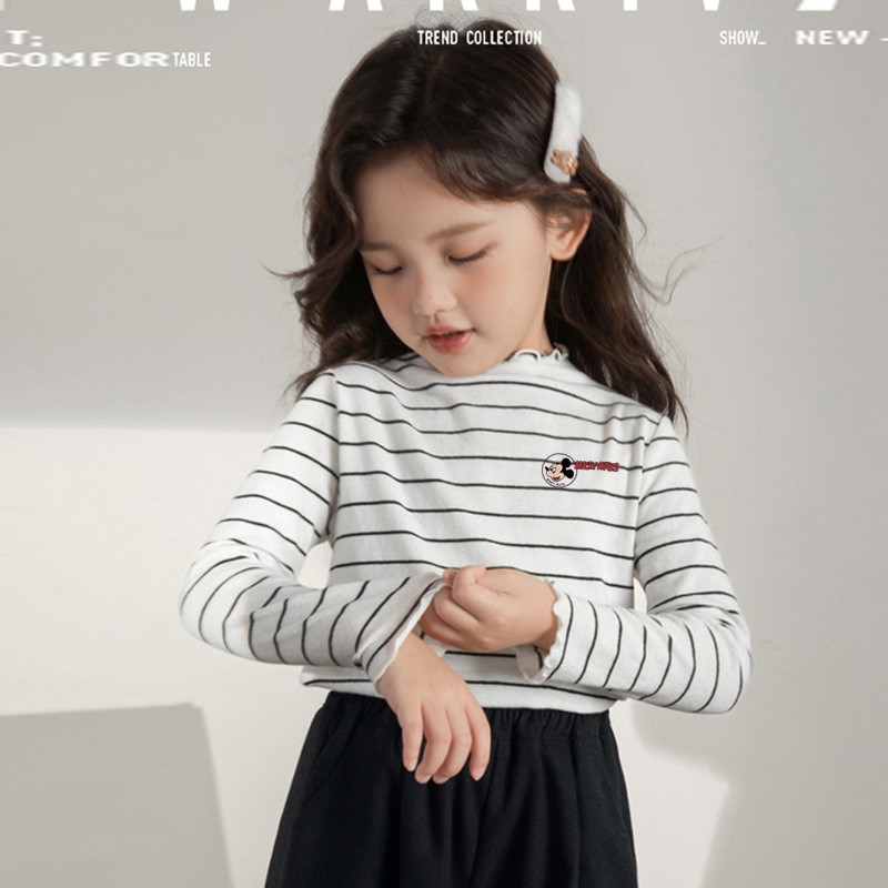 소녀의 만화 슬림 핏 양털베이스 셔츠 따뜻한 가을과 겨울 소녀의 하프 하이 칼라 탑 어린이 줄무늬 긴팔 티셔츠스토어 가기