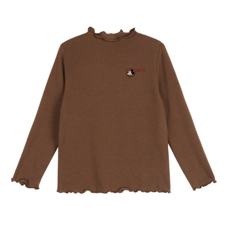 소녀의 만화 슬림 핏 양털베이스 셔츠 따뜻한 가을과 겨울 소녀의 하프 하이 칼라 탑 어린이 줄무늬 긴팔 티셔츠