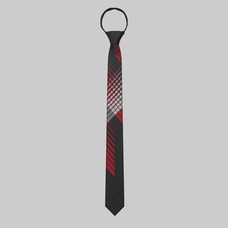 • 검정색 바탕에 빨간색과 회색 체크무늬(5.5CM)