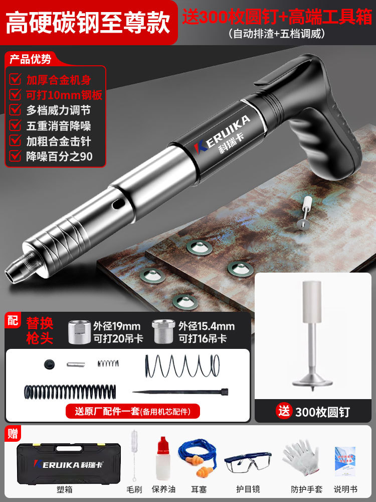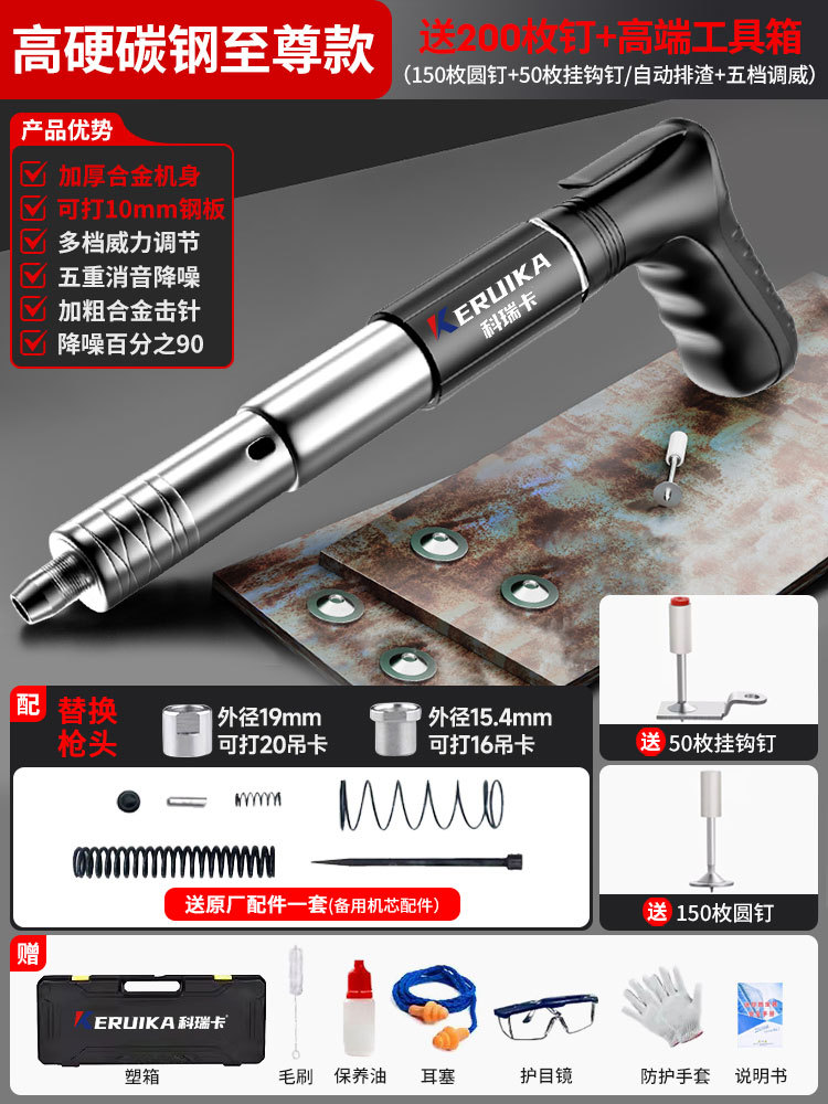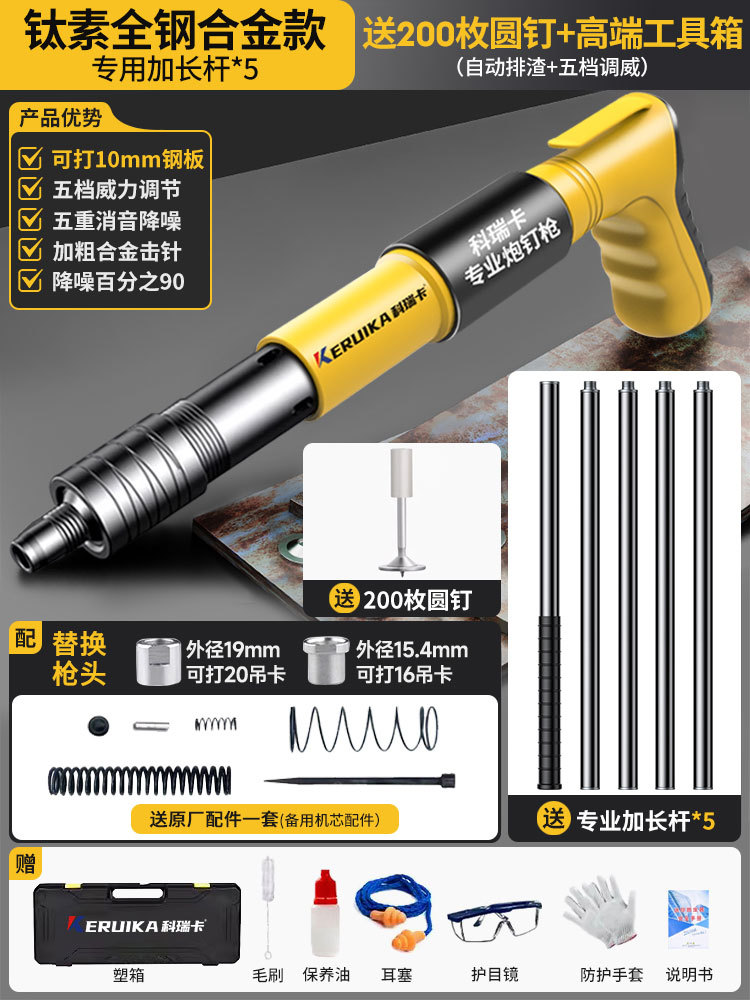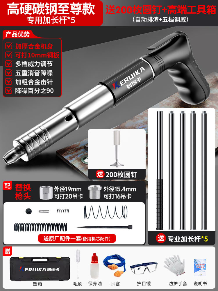 • 고탄소강 모델 + 특수 연장 로드 * 5 + 원형 못 200개 + 고급 공구 상자(자동 슬래그 배출 + 5단 파워 튜닝)