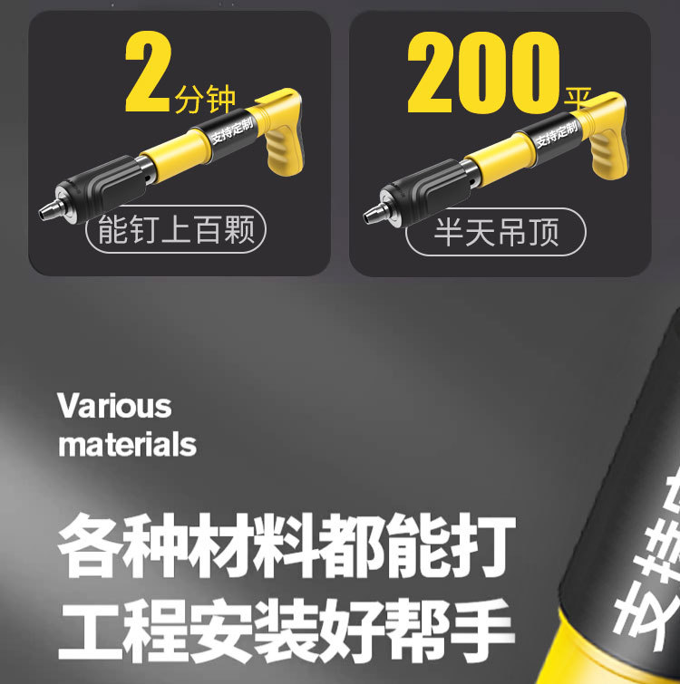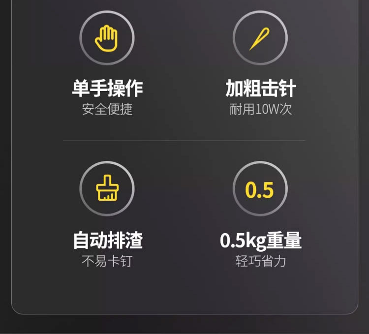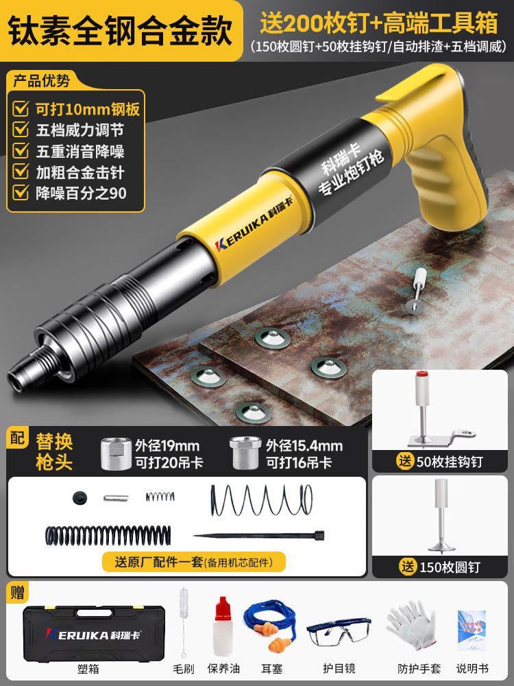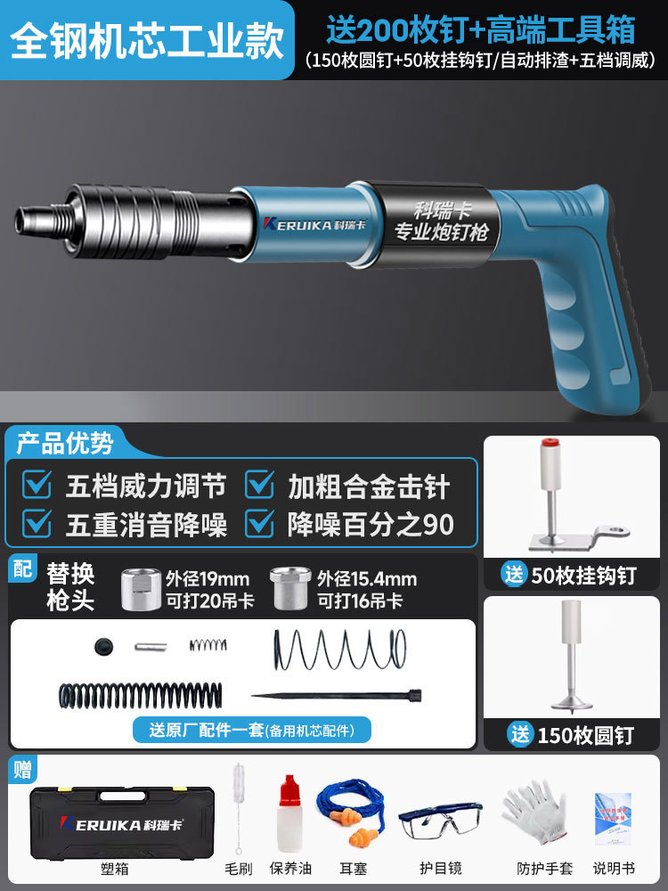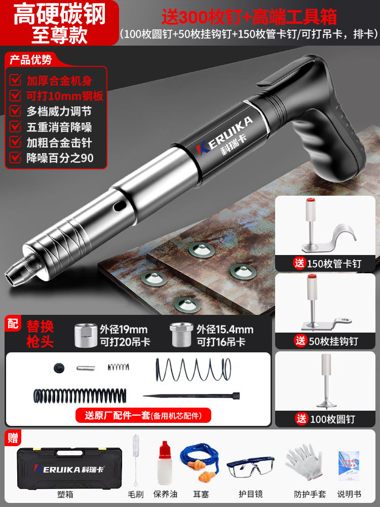 • 고탄소강 모델 + 특수 연장 로드 * 5 + 원형 못 200개 + 고급 공구 상자(자동 슬래그 배출 + 5단 파워 튜닝)