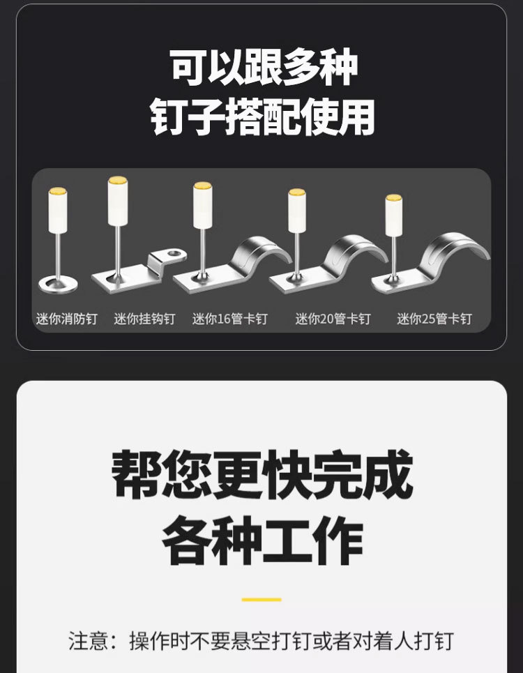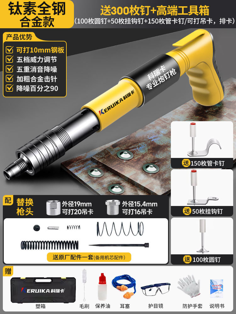 • 티타늄 올스틸 합금 모델 + 못 300개(둥근 못 100개 + 후크 못 50개 + 파이프 클램프 못 150개) + 고급 공구 상자