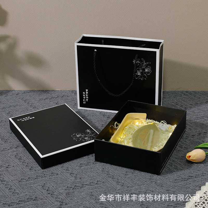 • 블랙(선물 상자 + 선물 가방 + 라피아 + 라이트 스트립); M사이즈(25*21*6) 7.0/8inch