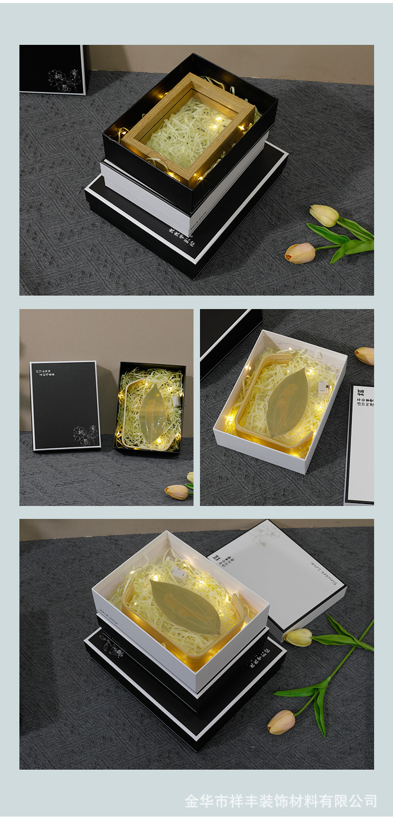 • 블랙(선물 상자 + 선물 가방 + 라피아 + 라이트 스트립), 소형(21*16*6) 6inch
