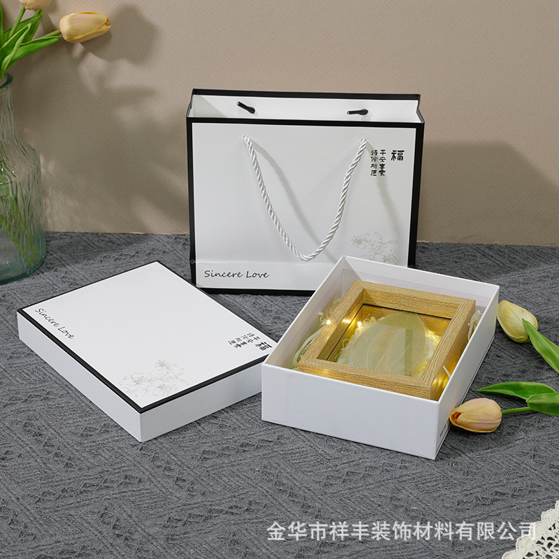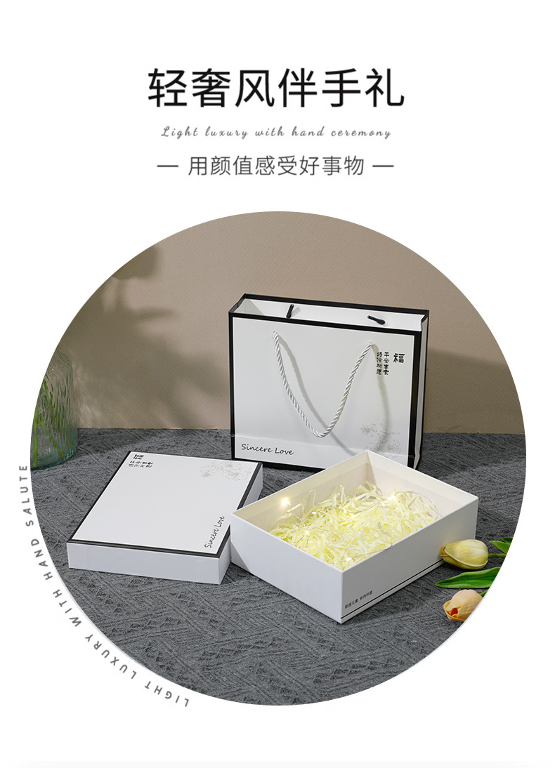 • 흰색(선물 상자 + 선물 가방 + 라피아 + 라이트 스트립), 중간 크기(25*21*6) 7.0/8inch