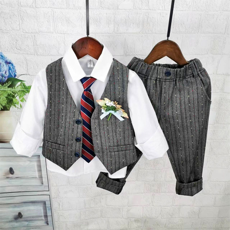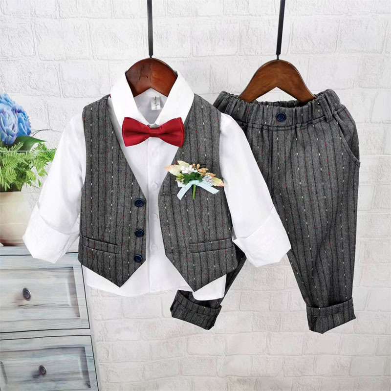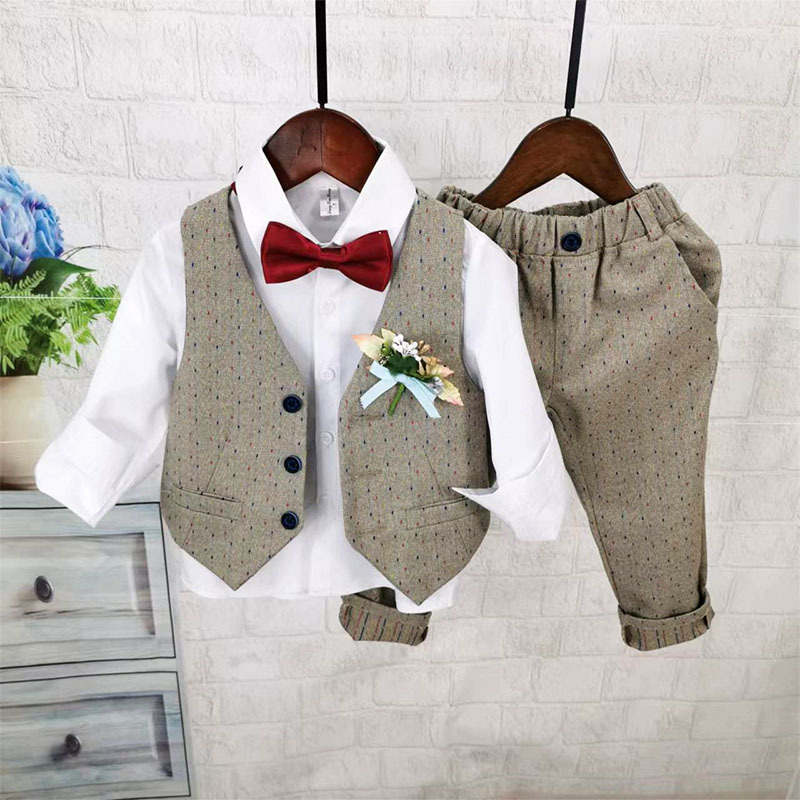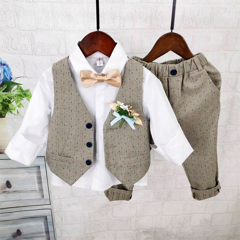 소년의 작은 신사의 원피스 가을 영국 스타일 조끼 작은 세트 소년의 아기 한 살짜리 꽃 소년의 연회 옷스토어 가기