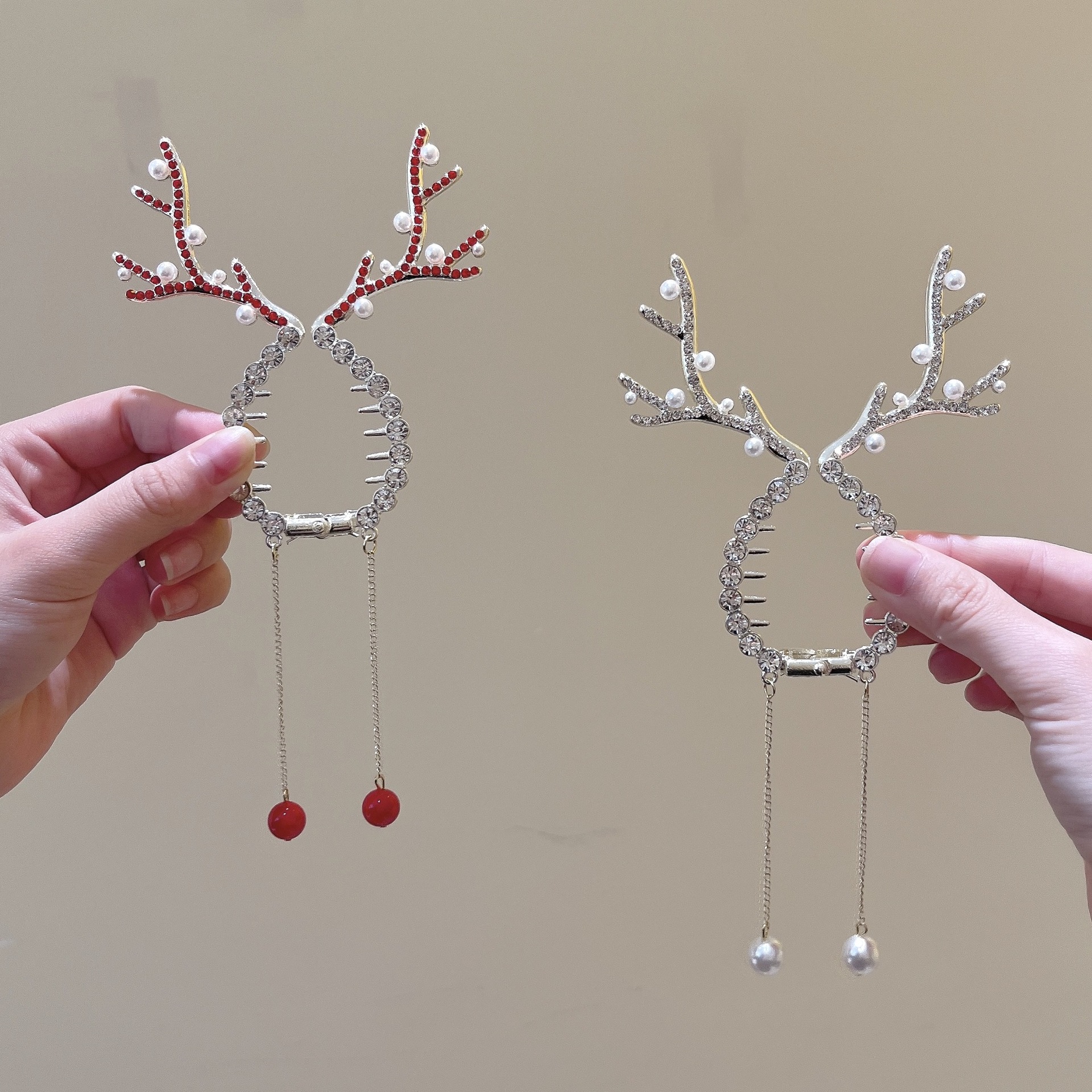 가벼운 럭셔리 진주 엘크 경적 볼 헤드 고정 아티팩트 헤어 클립 크리스마스 술 헤어 클립 고급 헤드웨어스토어 가기