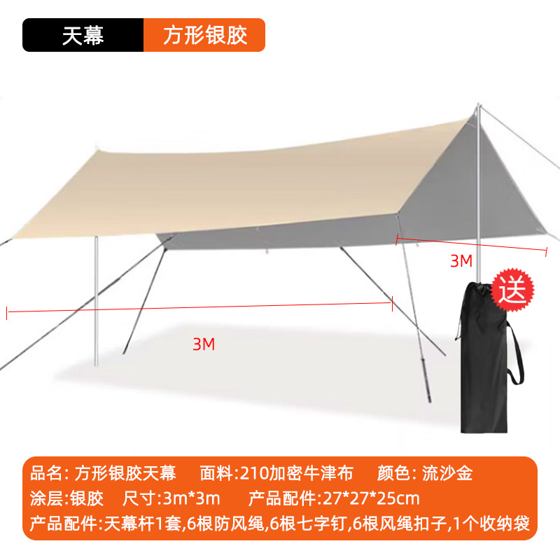 • 사각 캐노피 - 3M*3M [두꺼운 은색 접착제 모델] 4-6명_탄소강 소재 + 옥스포드 천