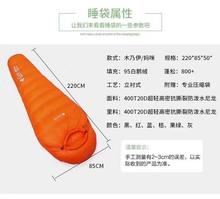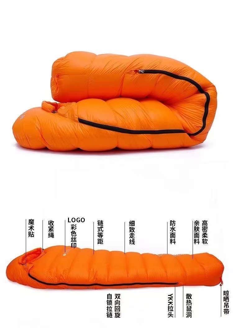 아래쪽 슬리핑 백 성인 야외 캠핑 감기 방지 미라 울트라 라이트 거위 가을과 겨울 등산 두꺼운 더블 바느질