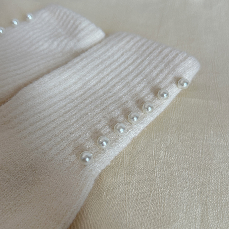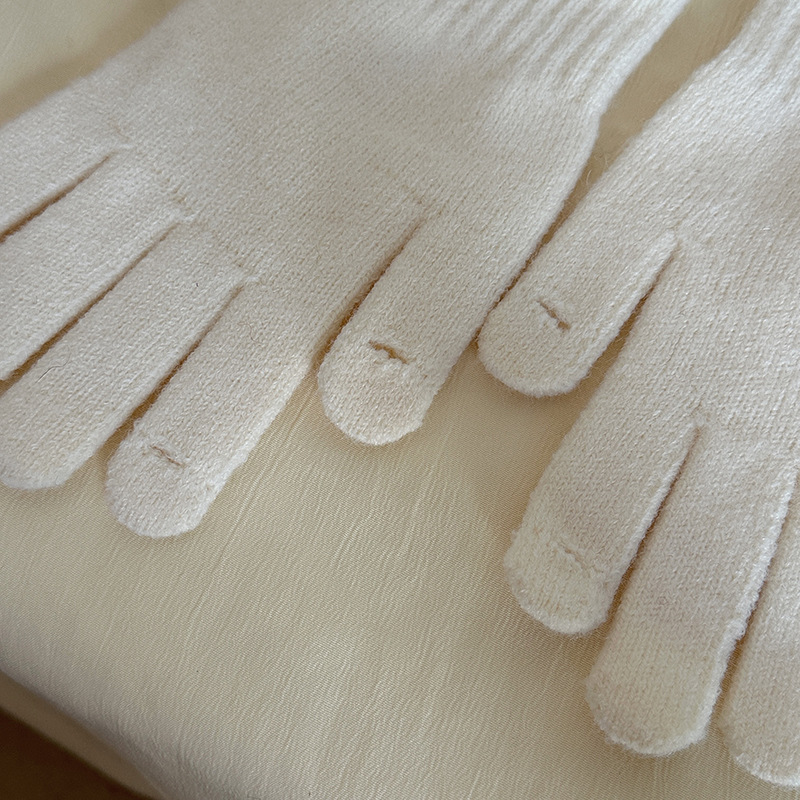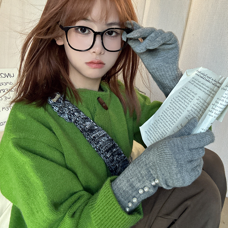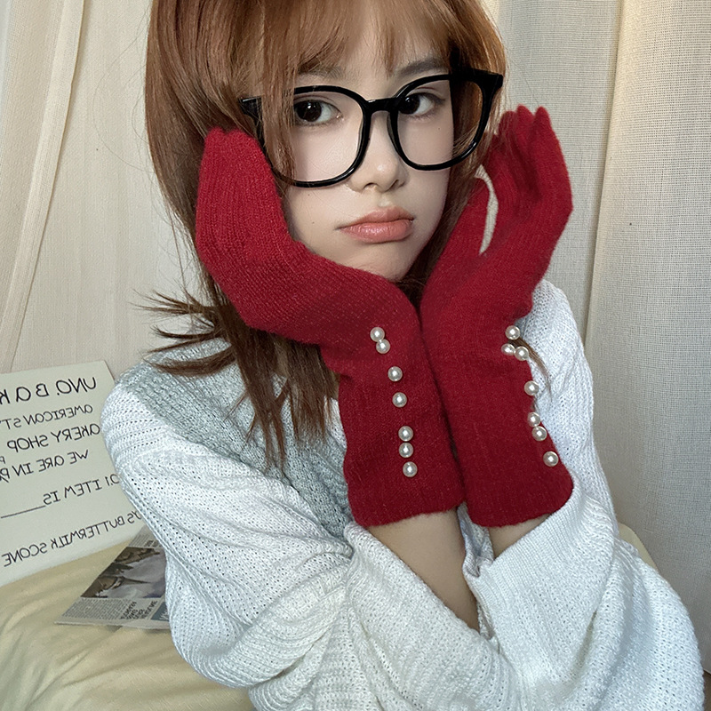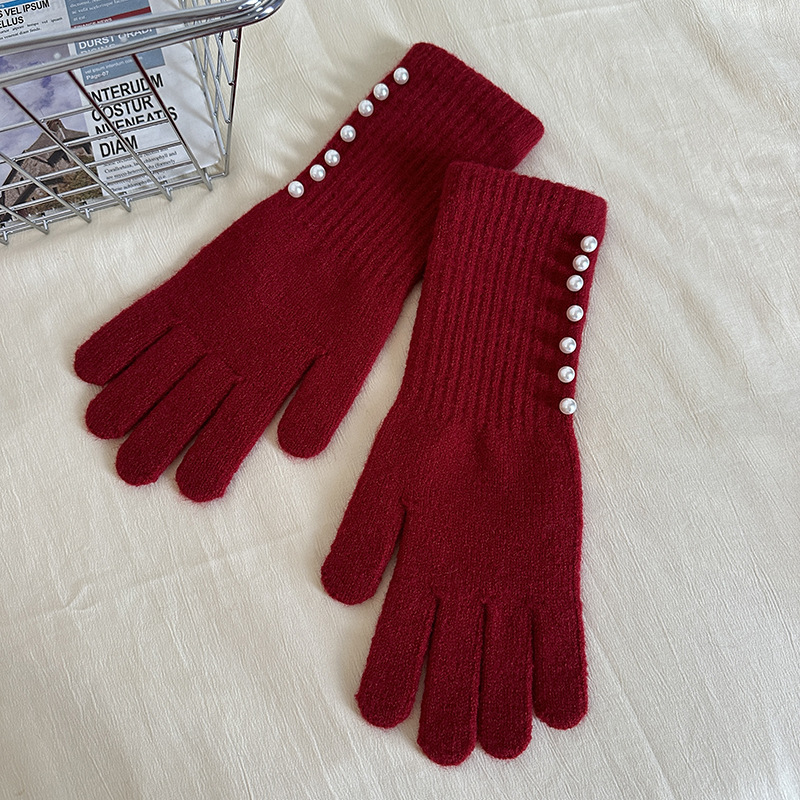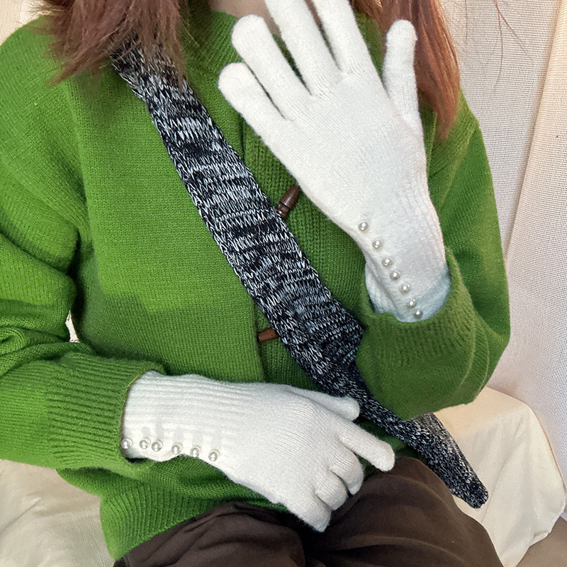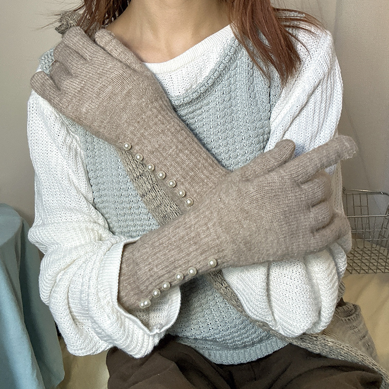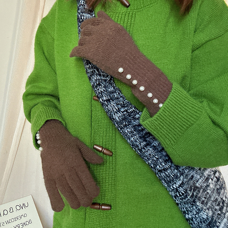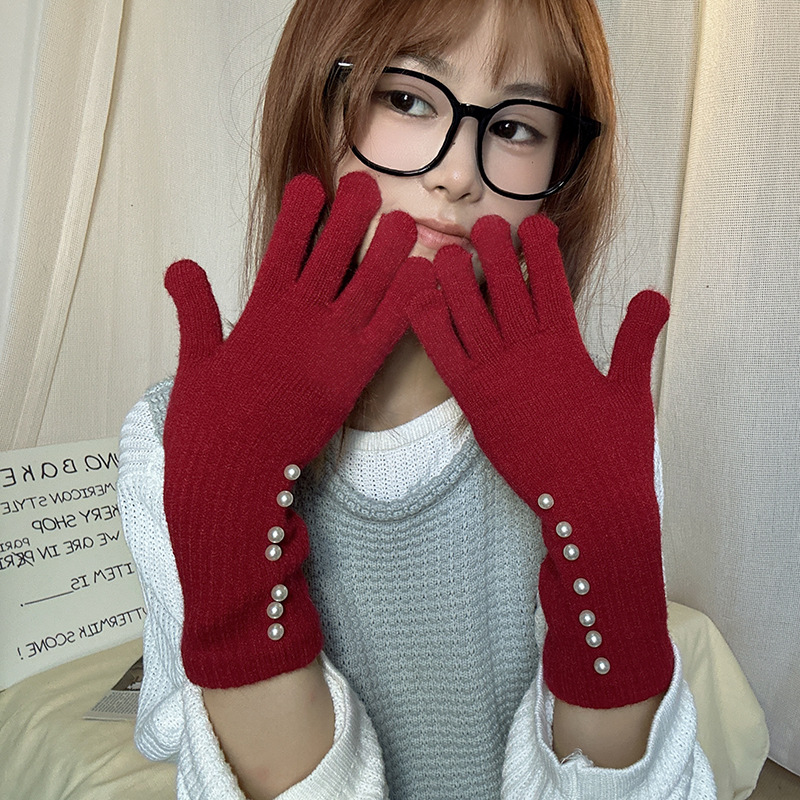 내부 빛 ~ 작은 진주 니트 장갑 여성의 단색 7 5 손가락 두꺼운 따뜻한 엑스트라 핑거 터치 스크린 울 가을과 겨울