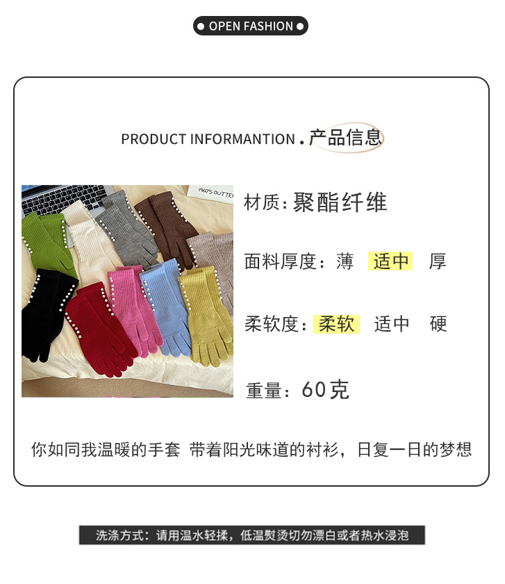내부 빛 ~ 작은 진주 니트 장갑 여성의 단색 7 5 손가락 두꺼운 따뜻한 엑스트라 핑거 터치 스크린 울 가을과 겨울스토어 가기