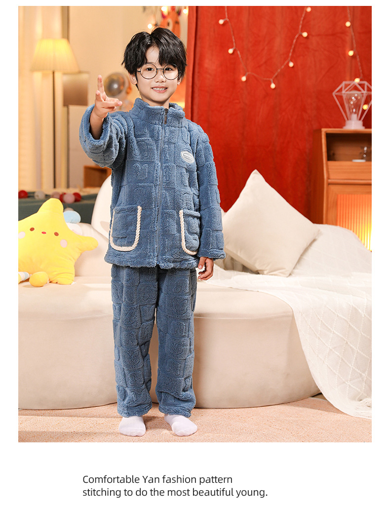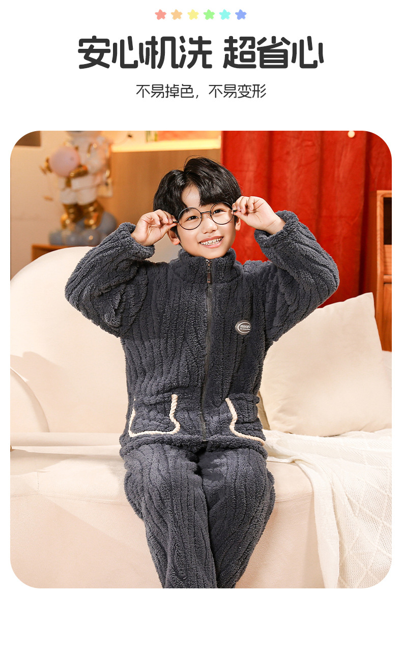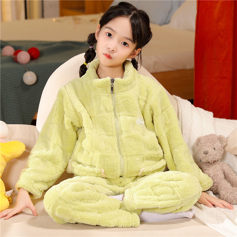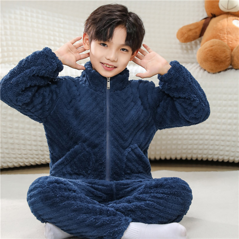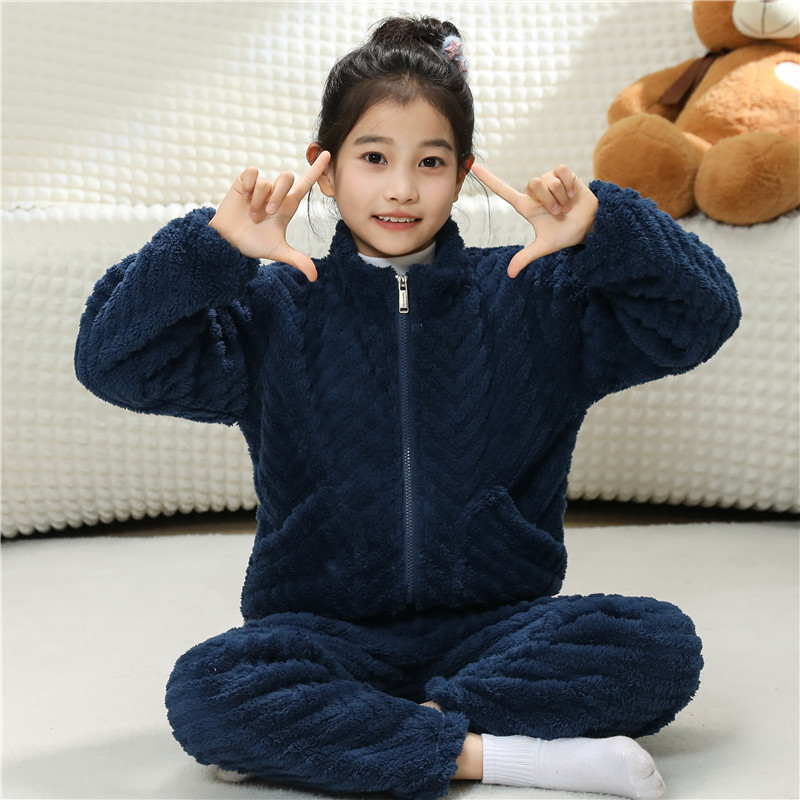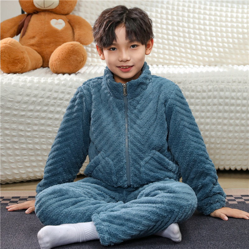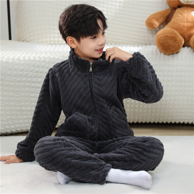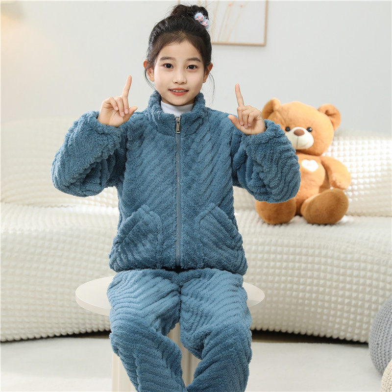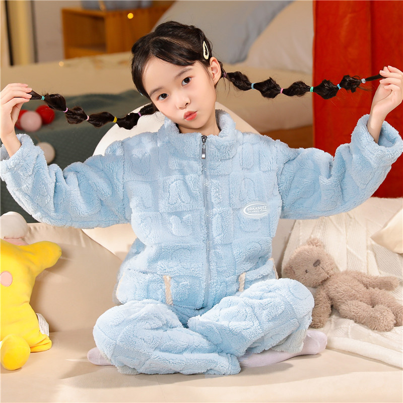 어린이 잠옷 소년 가을 겨울 지퍼 플란넬 소녀 중 · 대형 어린이 양면 양털 아기 산호 양털 홈 옷스토어 가기