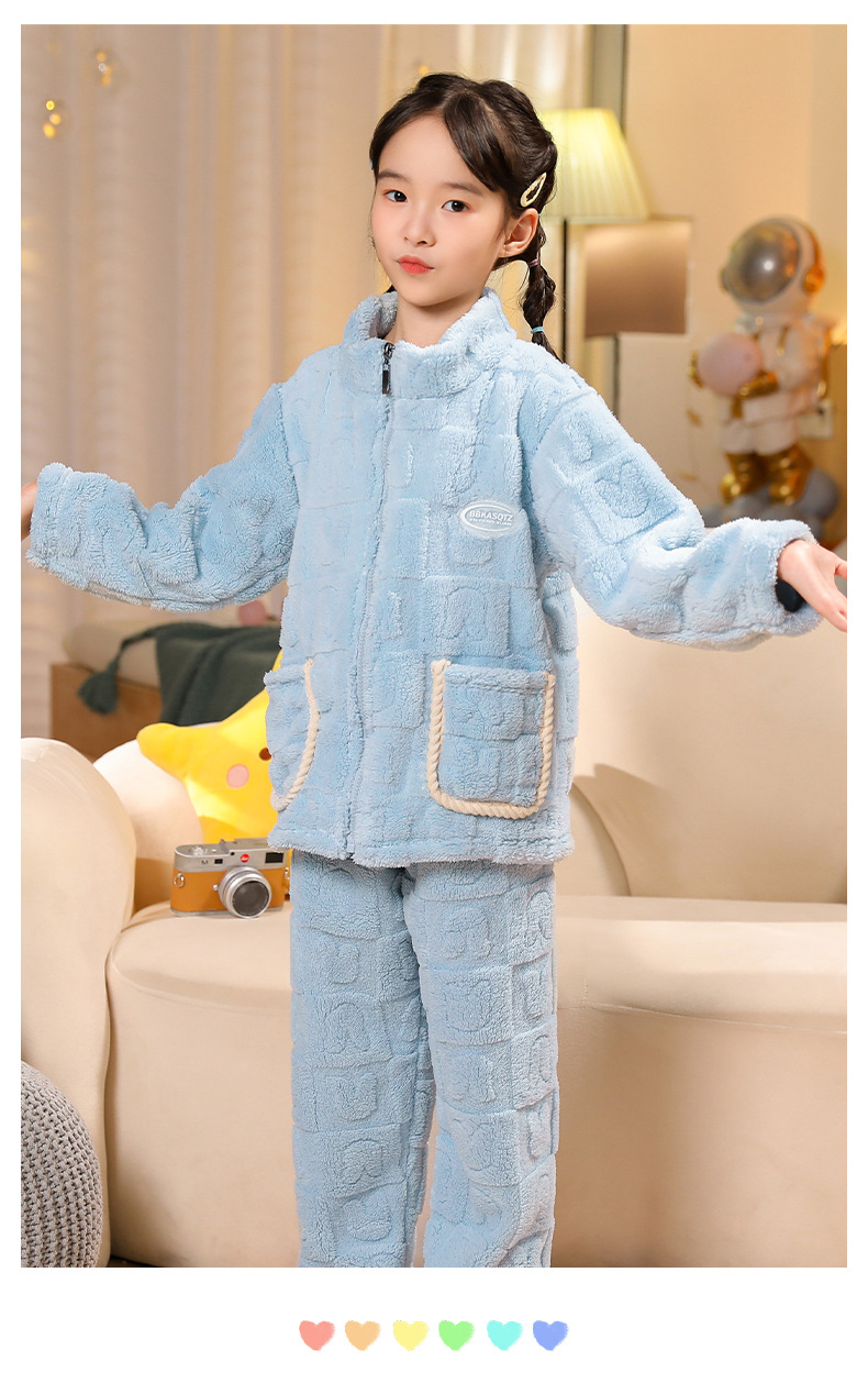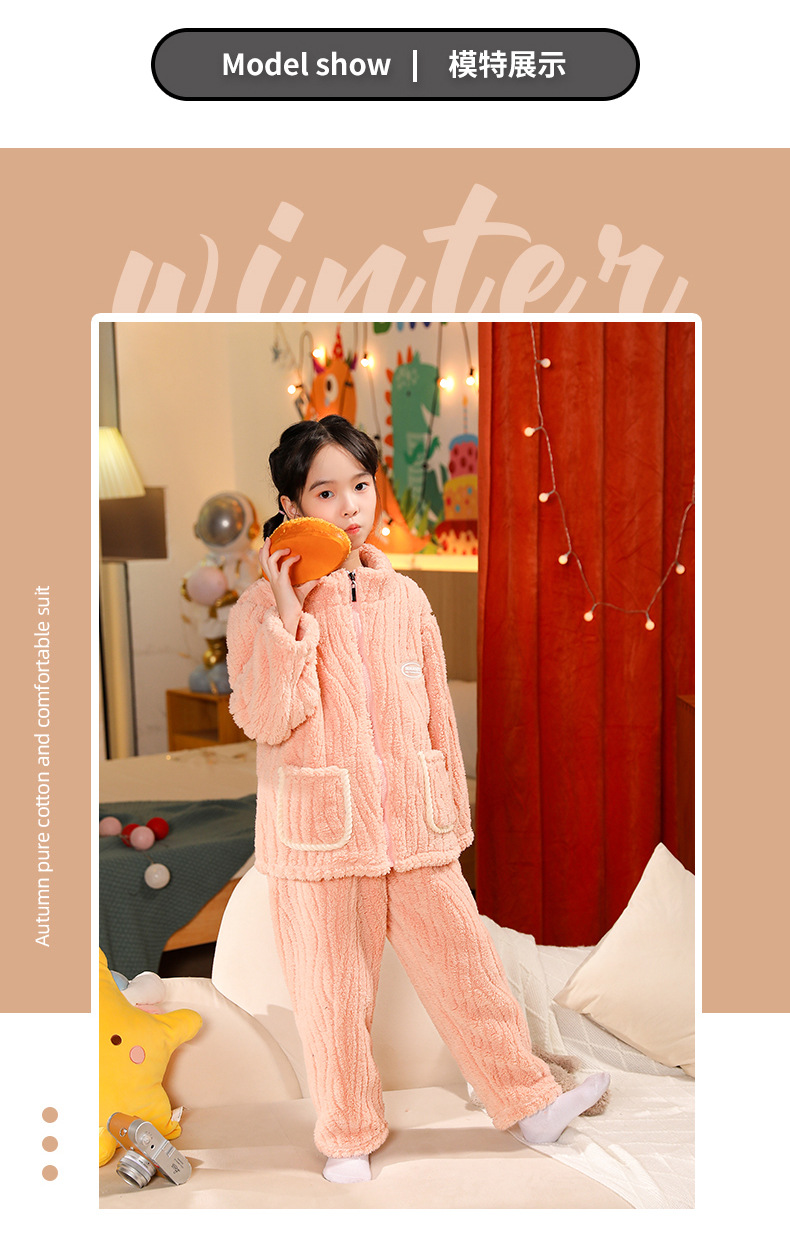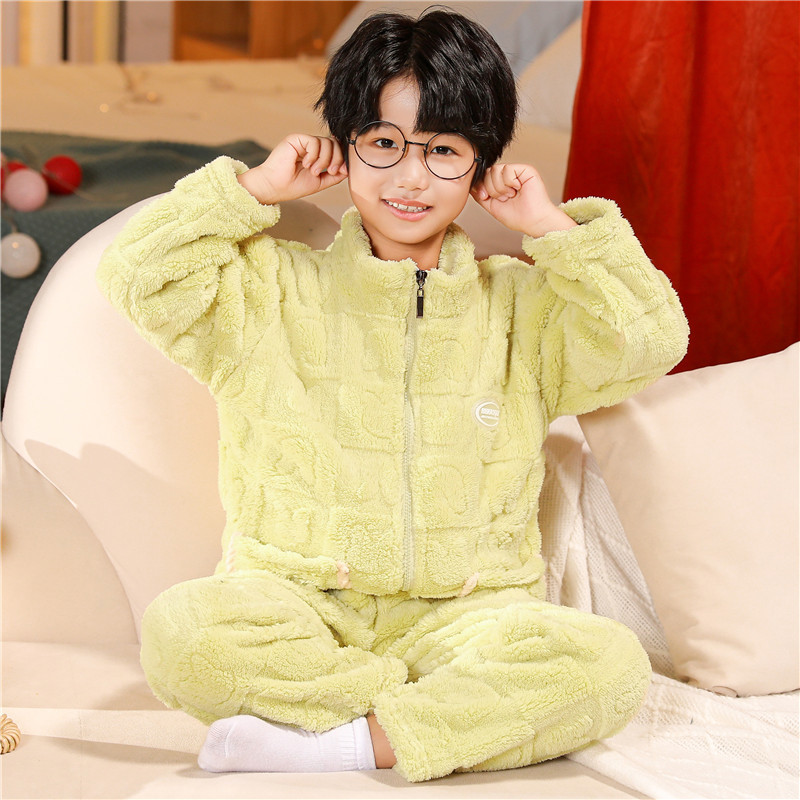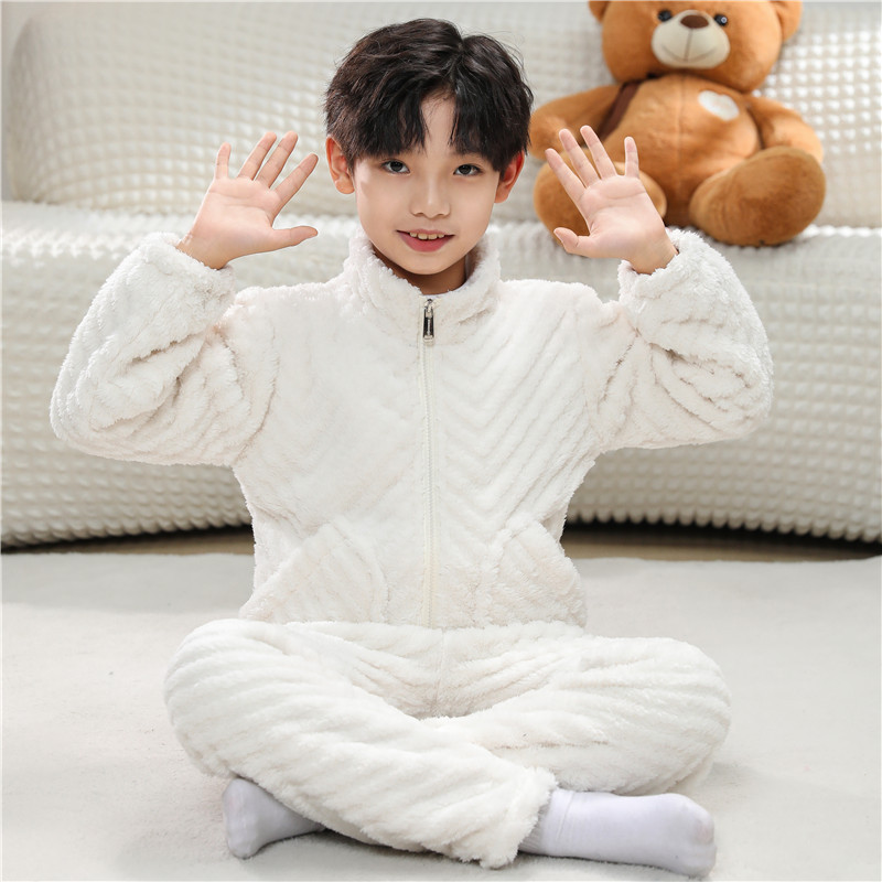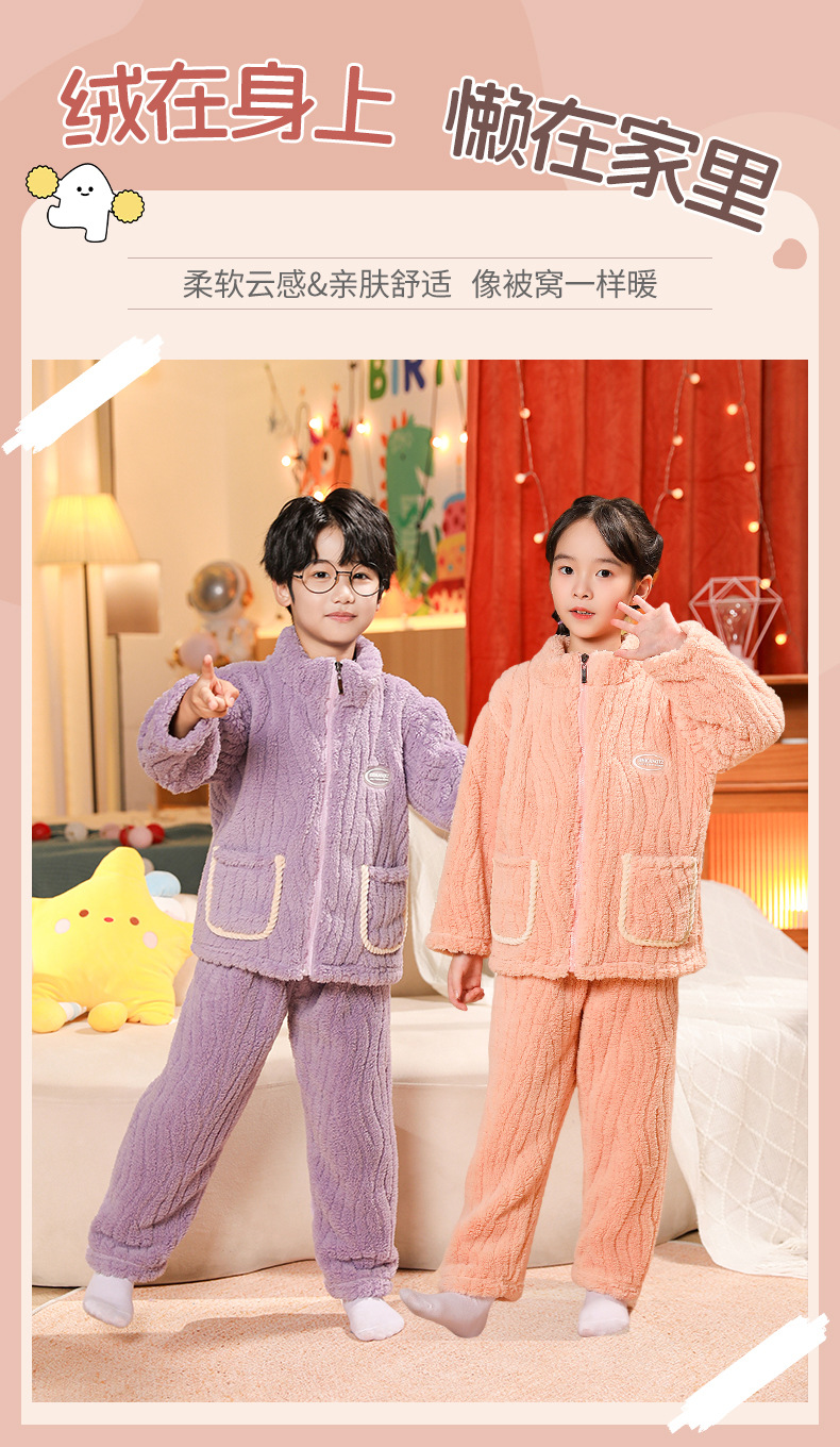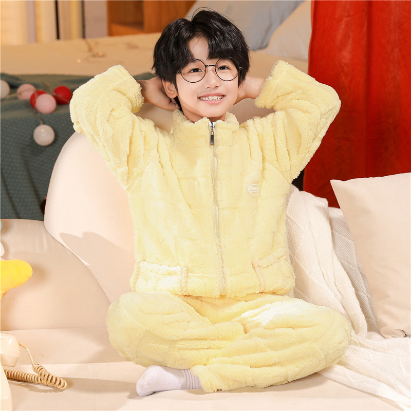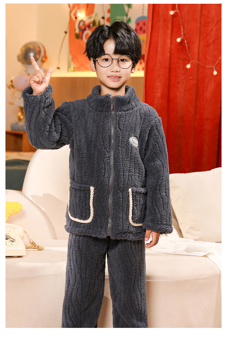 어린이 잠옷 소년 가을 겨울 지퍼 플란넬 소녀 중 · 대형 어린이 양면 양털 아기 산호 양털 홈 옷스토어 가기