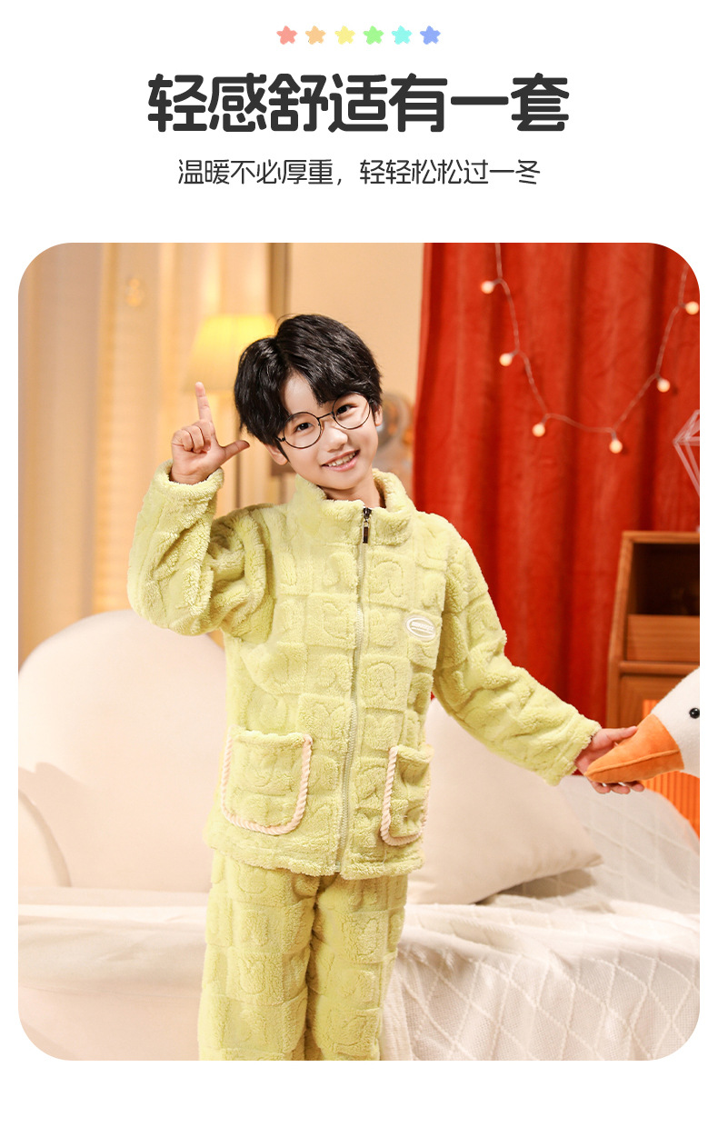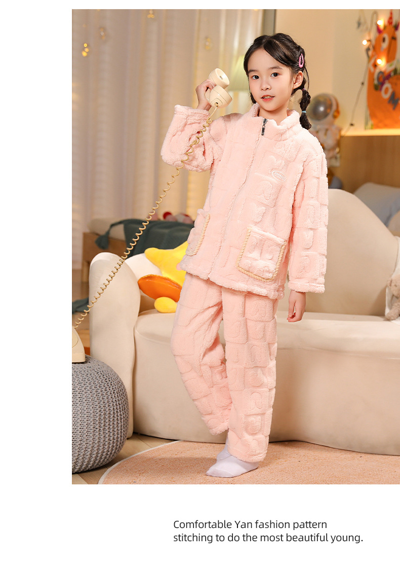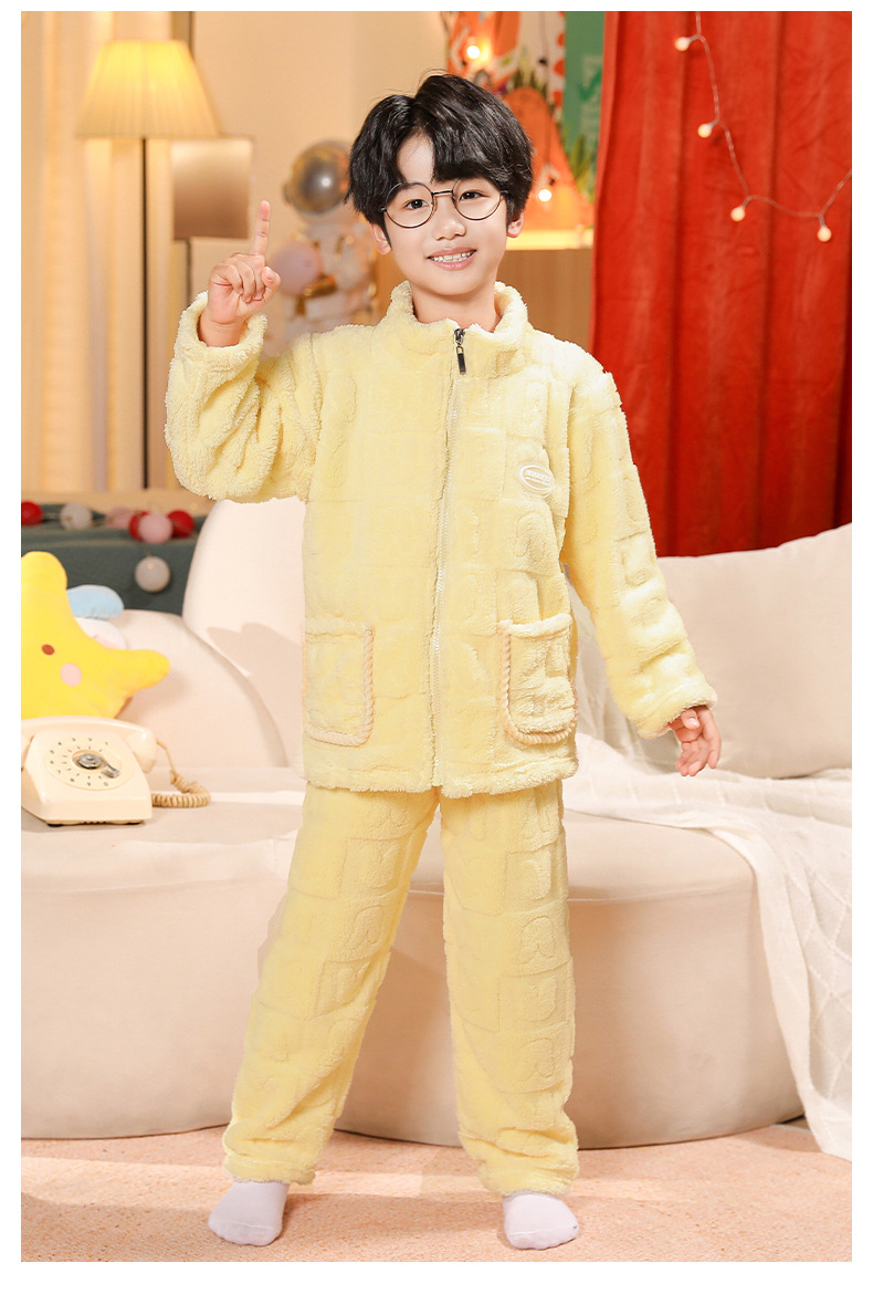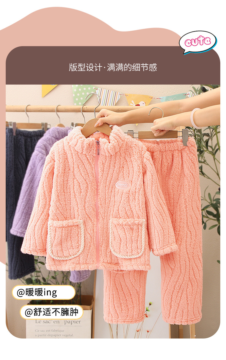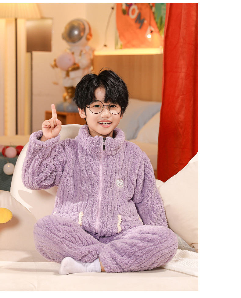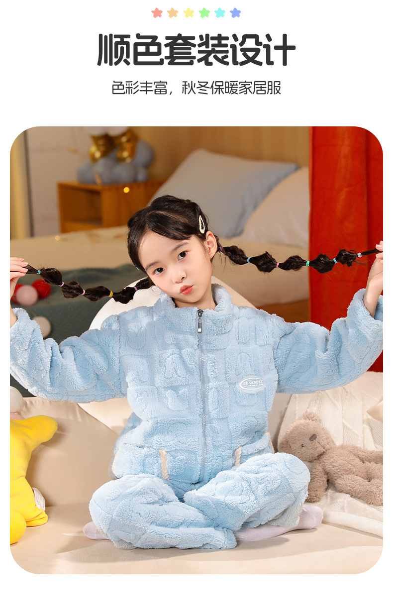 어린이 잠옷 소년 가을 겨울 지퍼 플란넬 소녀 중 · 대형 어린이 양면 양털 아기 산호 양털 홈 옷스토어 가기