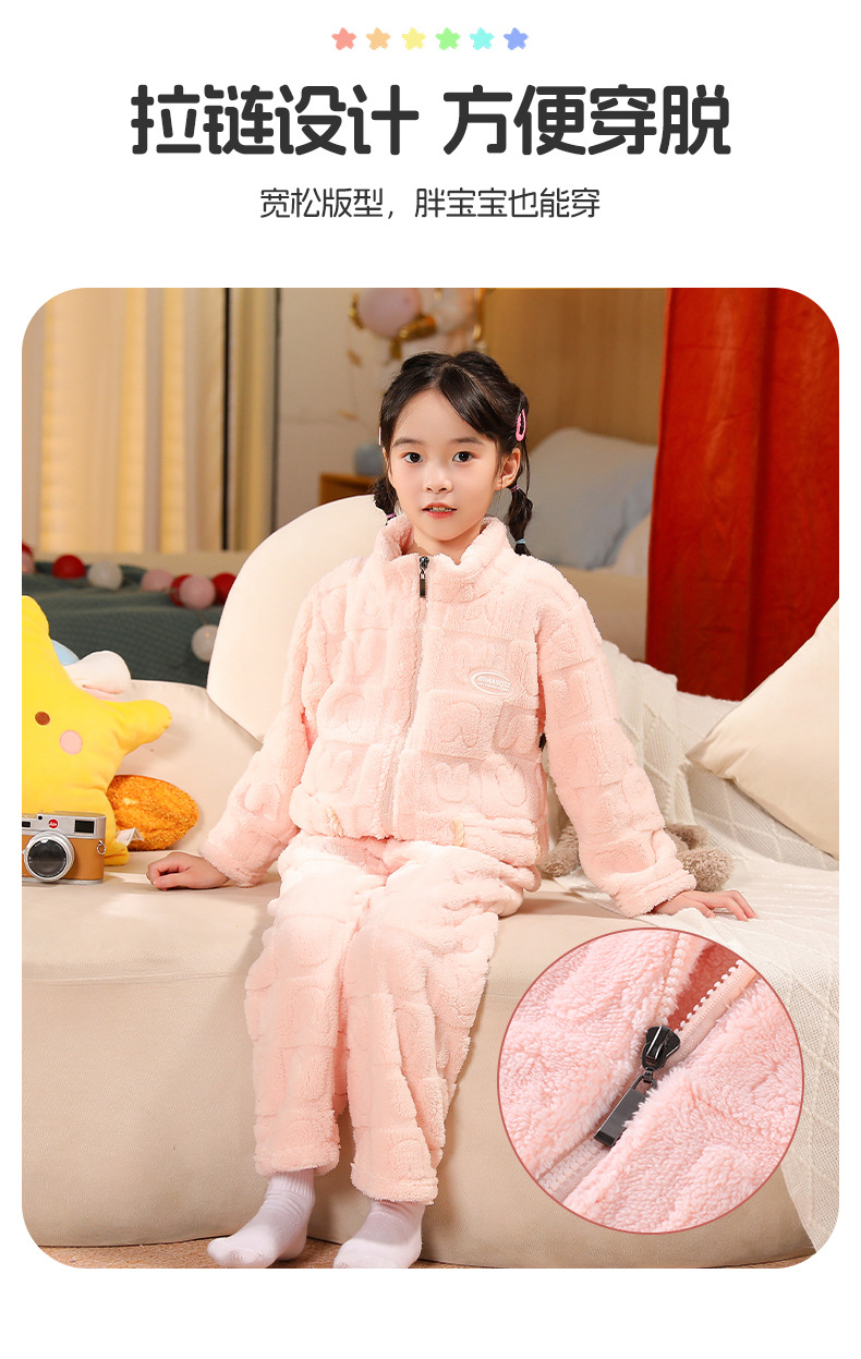어린이 잠옷 소년 가을 겨울 지퍼 플란넬 소녀 중 · 대형 어린이 양면 양털 아기 산호 양털 홈 옷