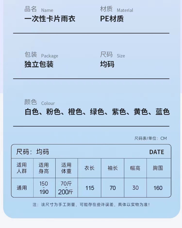 일회용 다채로운 카드 비옷 성인 어린이 두꺼운 긴 휴대용 야외 여행 비옷 판초