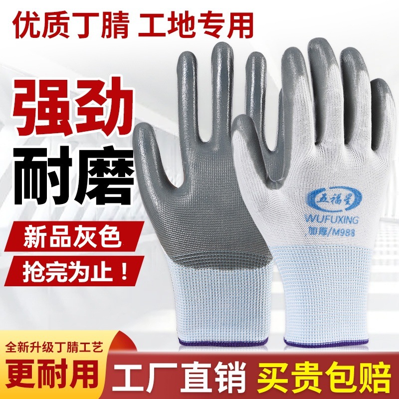 40g 두꺼운 회색 손 니트릴 도매 내마모성 건설 현장 건물 통기성 디핑 벨트 내유성 노동 장갑스토어 가기