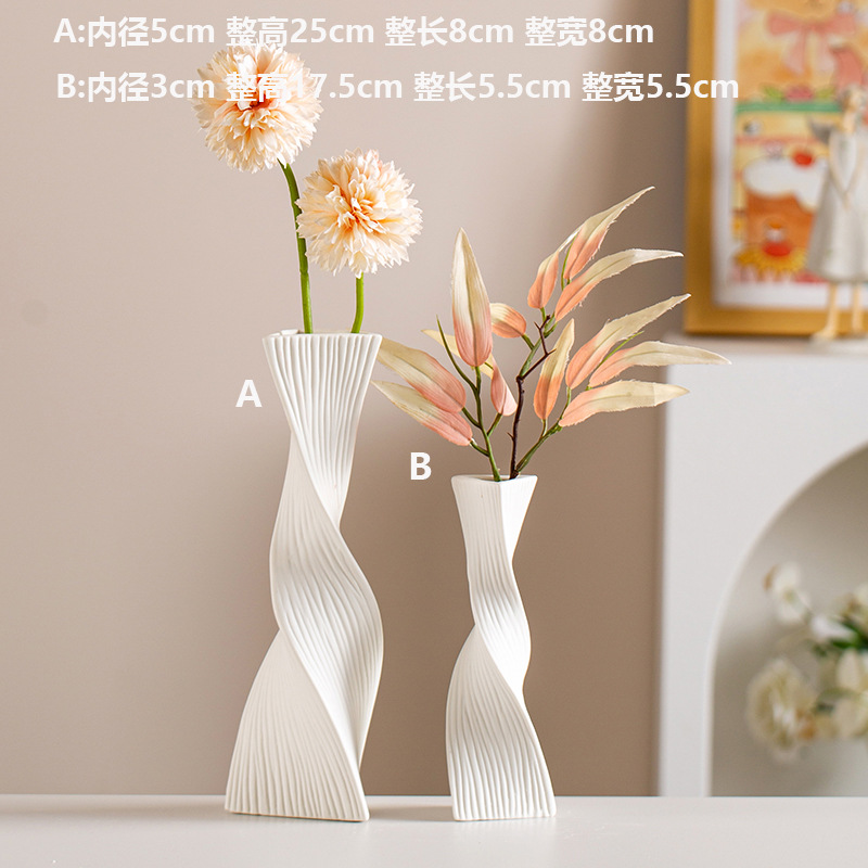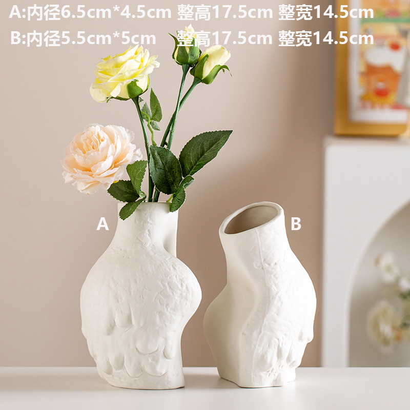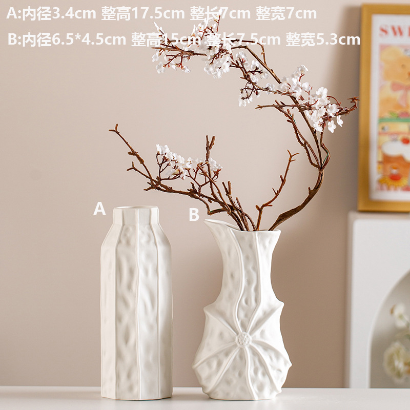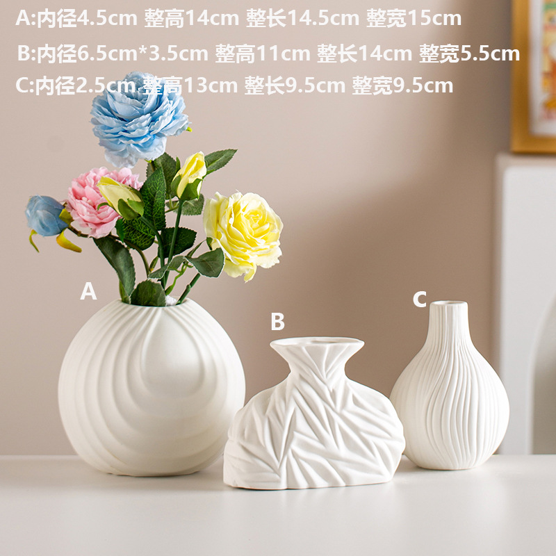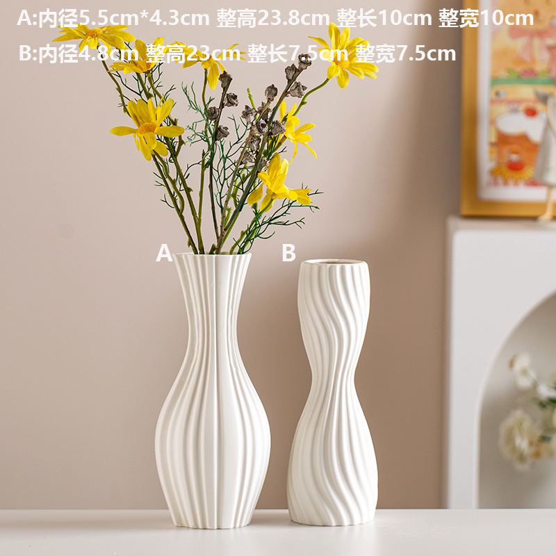 흰색 간단한 세라믹 꽃병 물 올리기 북유럽 현대 창조적 인 홈 거실 식탁 말린 꽃 꽃 장식 장식품