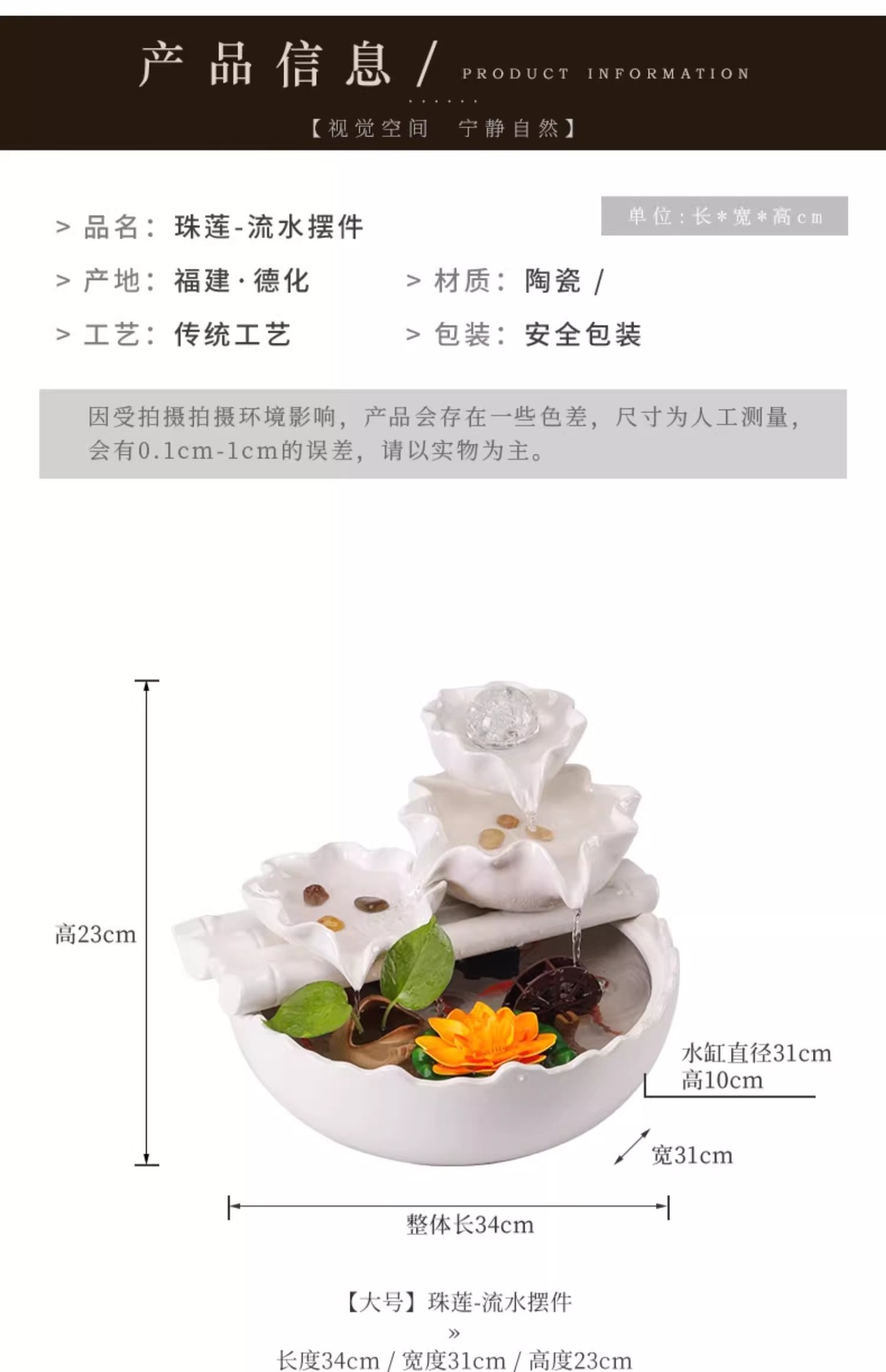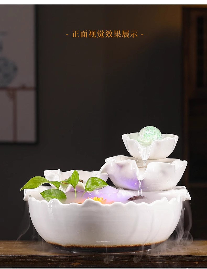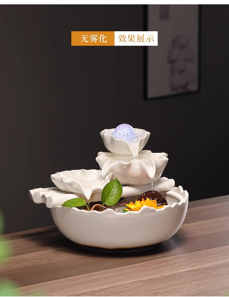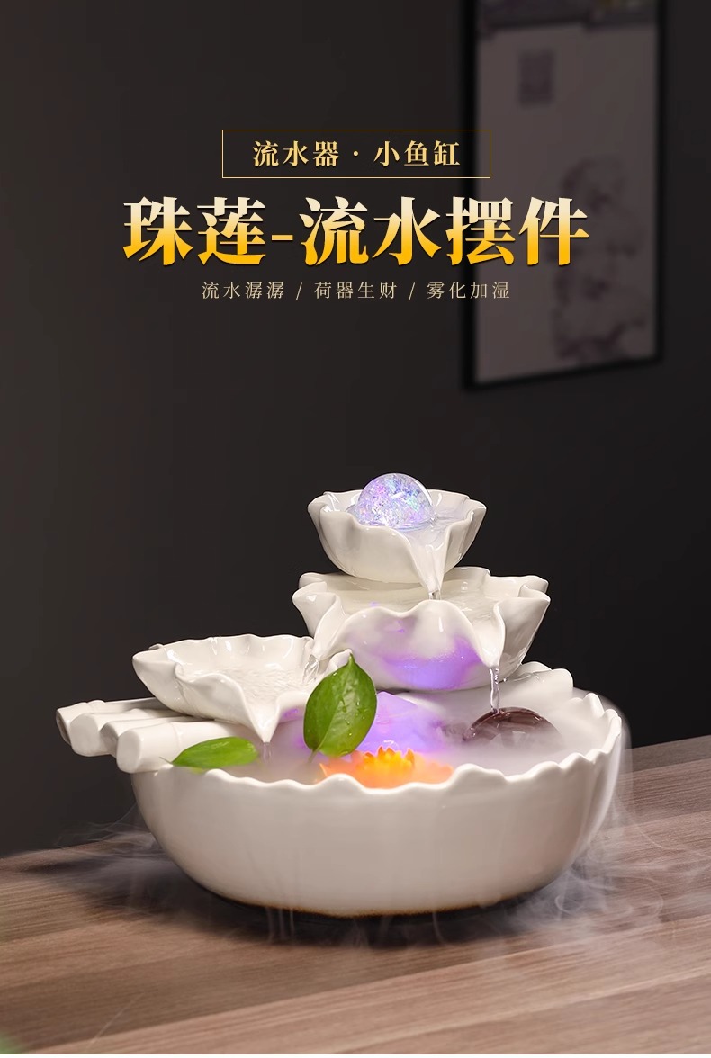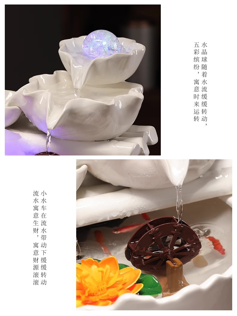 세라믹 어항 풍수 바퀴 흐르는 물 분수 장식품 순환 물 책상 장식 거실 데스크탑 운세 만들기 풍수 공