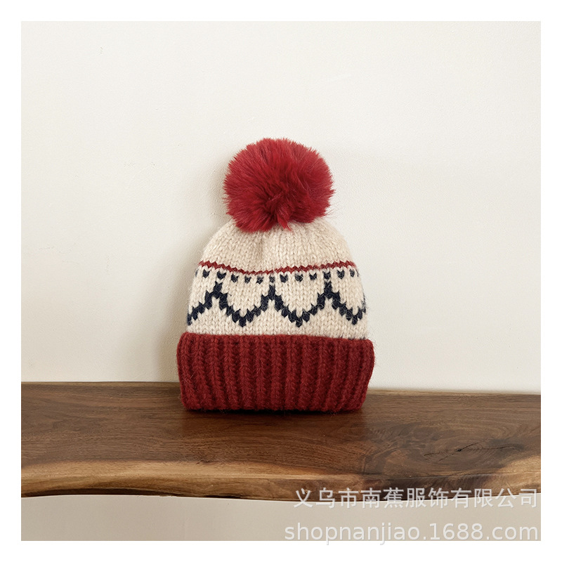 费尔岛风提花儿童针织帽
