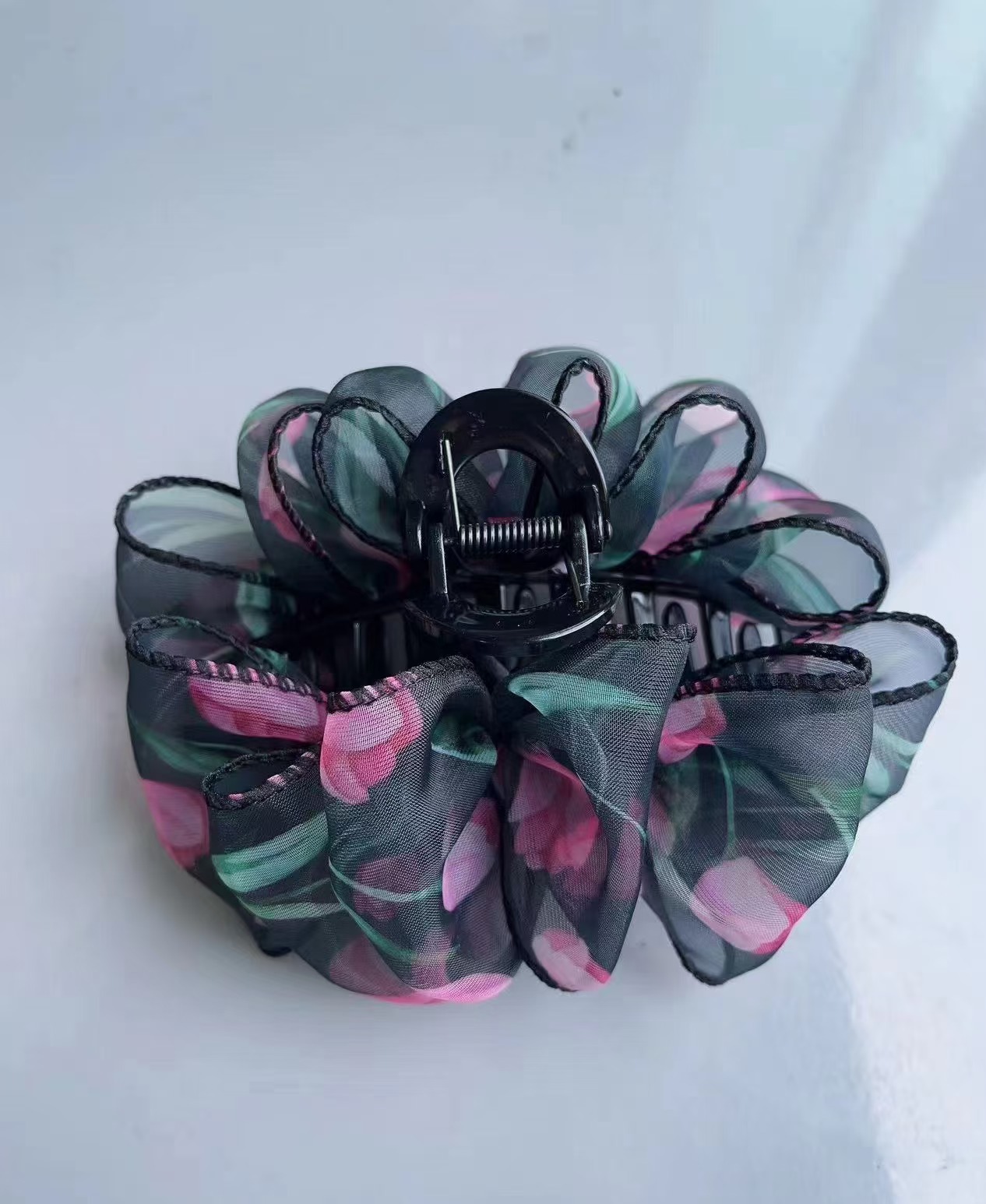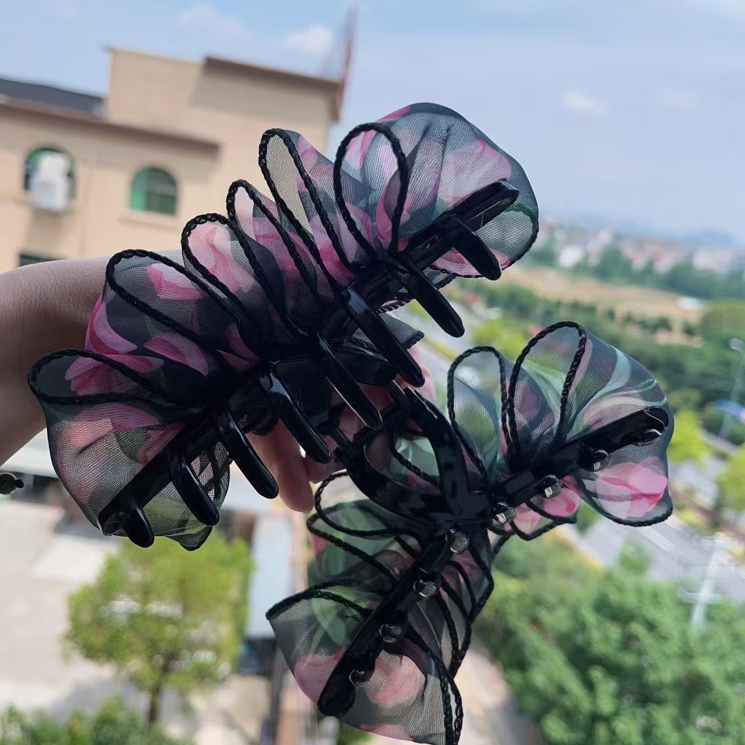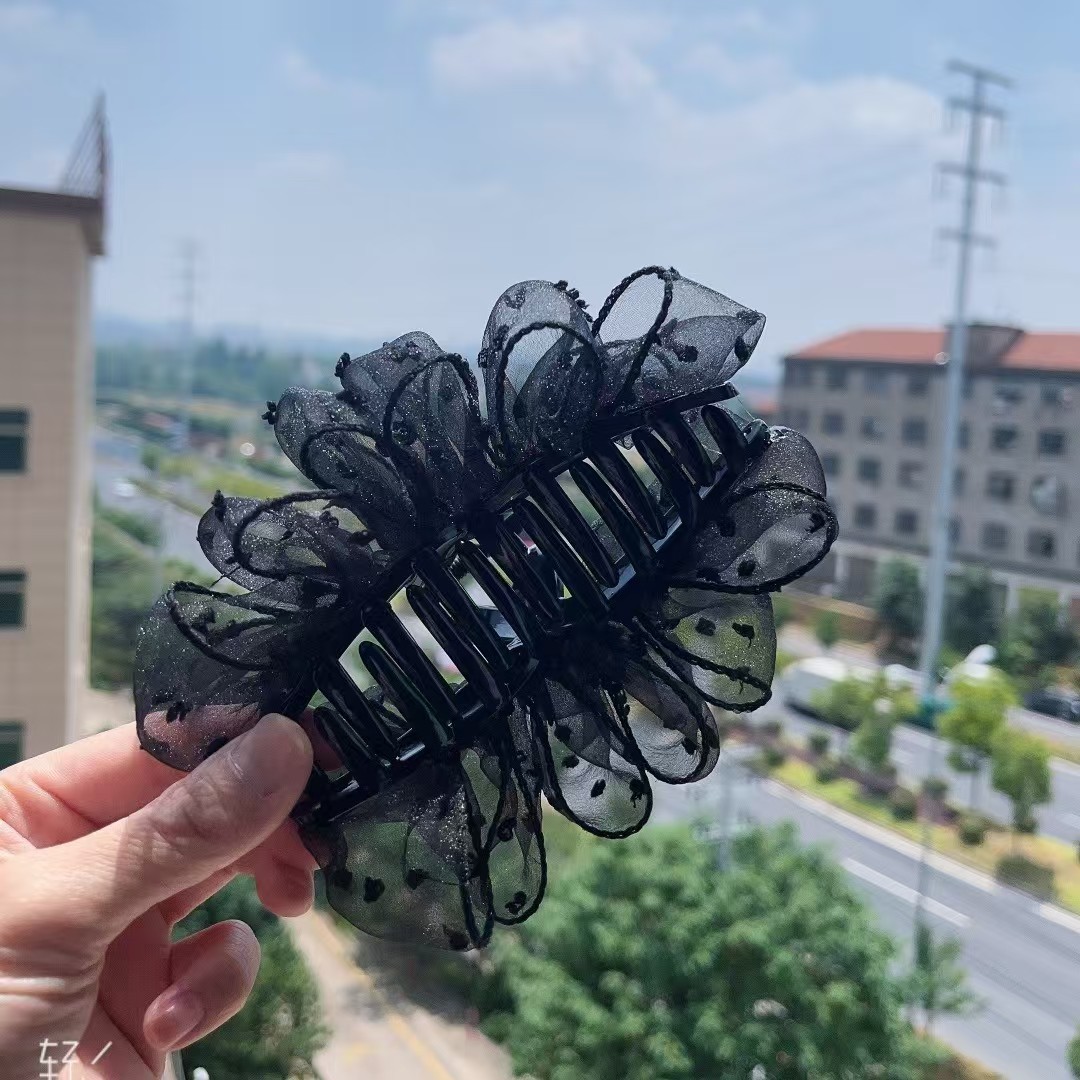 봄과 여름 새로운 메쉬 주름 플레이트 웨이브 포인트 헤어 그립 클립 높은 감각 우아한 기질 패션 부드러운 달콤한 헤어 클립