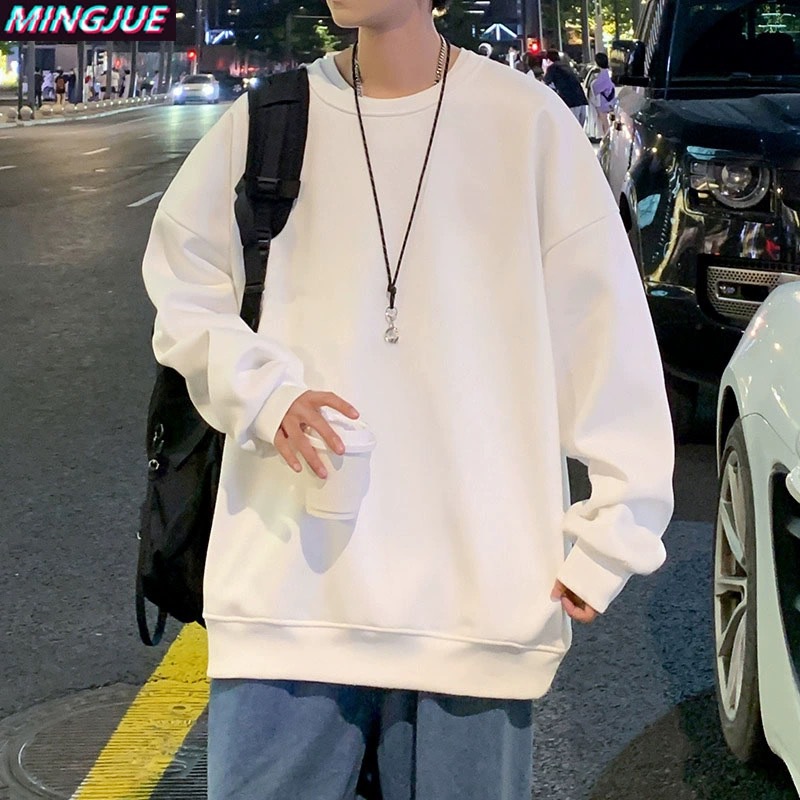 순면 크루 넥 스웨터 남자 가을과 겨울 느슨한 커플의베이스 셔츠 유행 가을 옷 긴팔 티셔츠 남성용 캐주얼 탑
