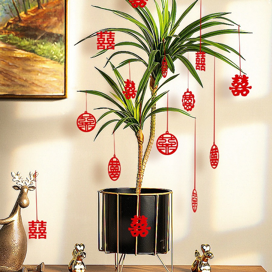 웨딩 작은 해피 캐릭터 꽃 녹색 식물 분재 교수형 장식 새 집 집 웨딩 룸 장면 레이아웃 웨딩 용품