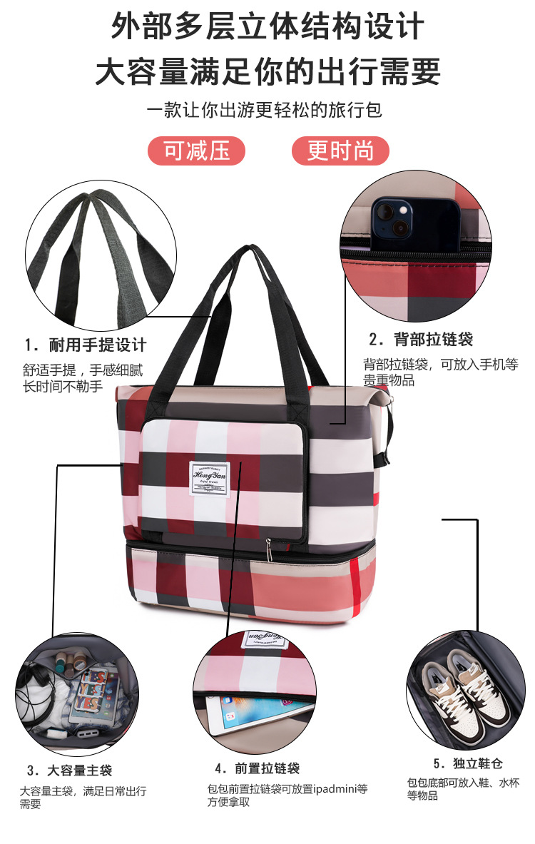 새로운 다기능 여행 가방 건조하고 젖은 별도의 독립 신발 창고 4 색 옵션 여행 단거리 수하물 가방스토어 가기