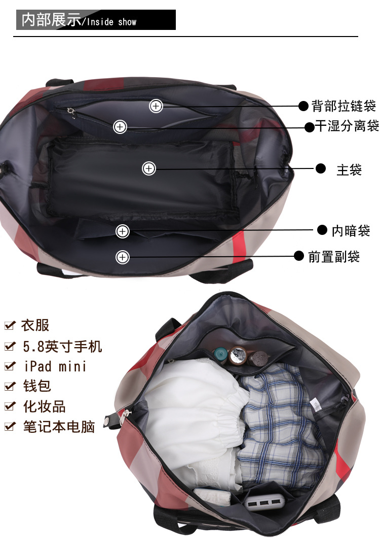 새로운 다기능 여행 가방 건조하고 젖은 별도의 독립 신발 창고 4 색 옵션 여행 단거리 수하물 가방