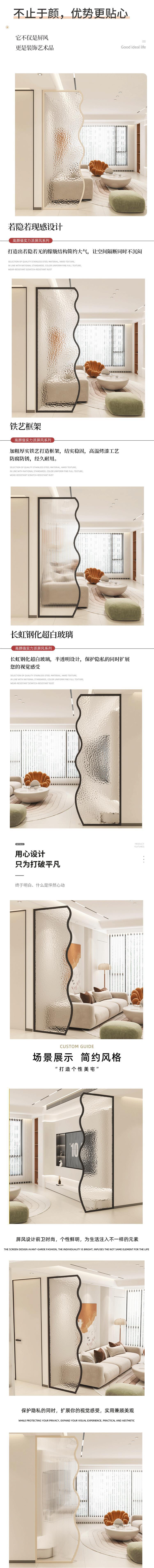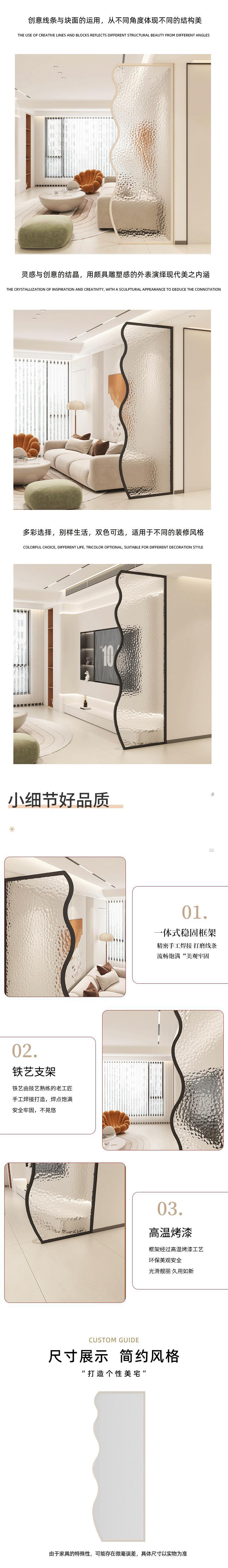 HH 창홍 강화 유리 스크린 간단한 크림 스타일 거실 입구 화장실 욕실 반벽 대피소스토어 가기