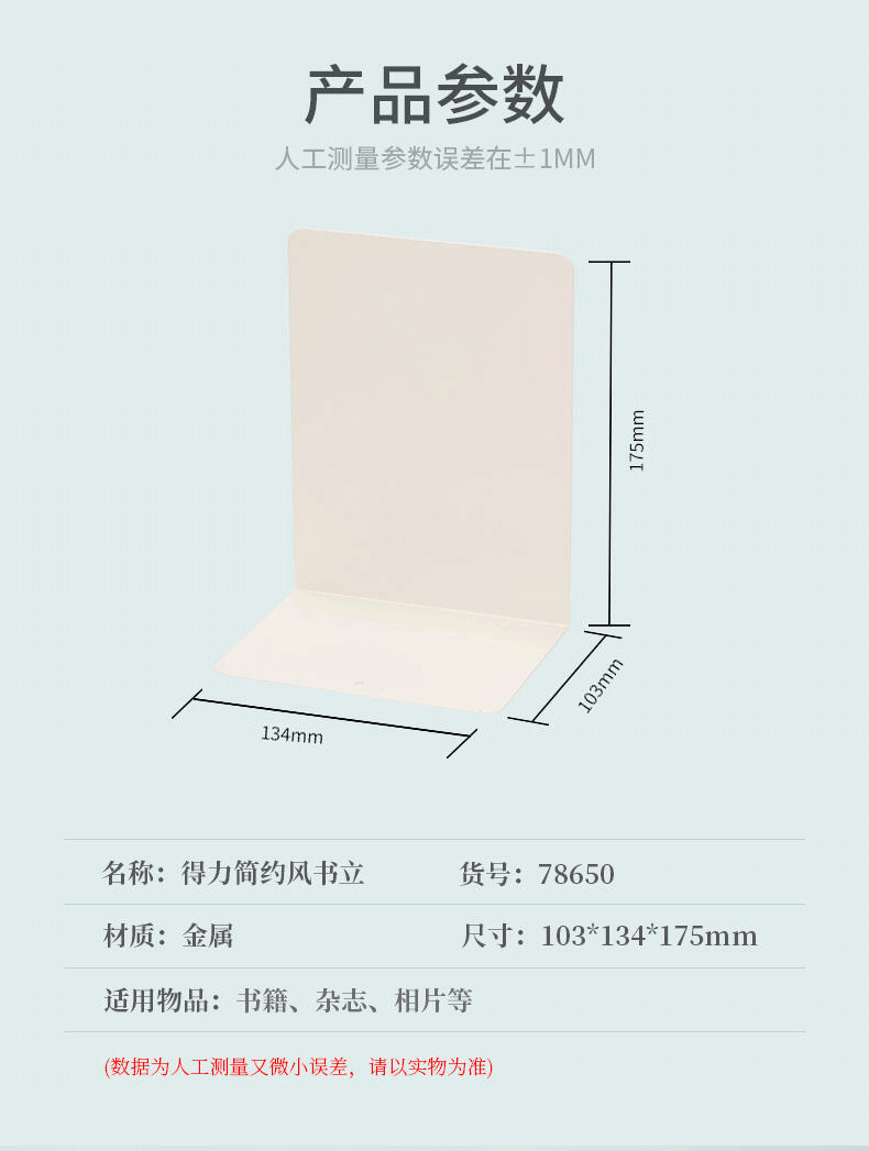 델리 메탈 북 랙 두꺼운 78650 데스크탑 북 홀더 7 인치 랙 북 배플 스토리지 책장