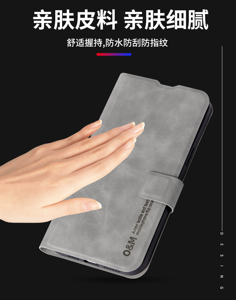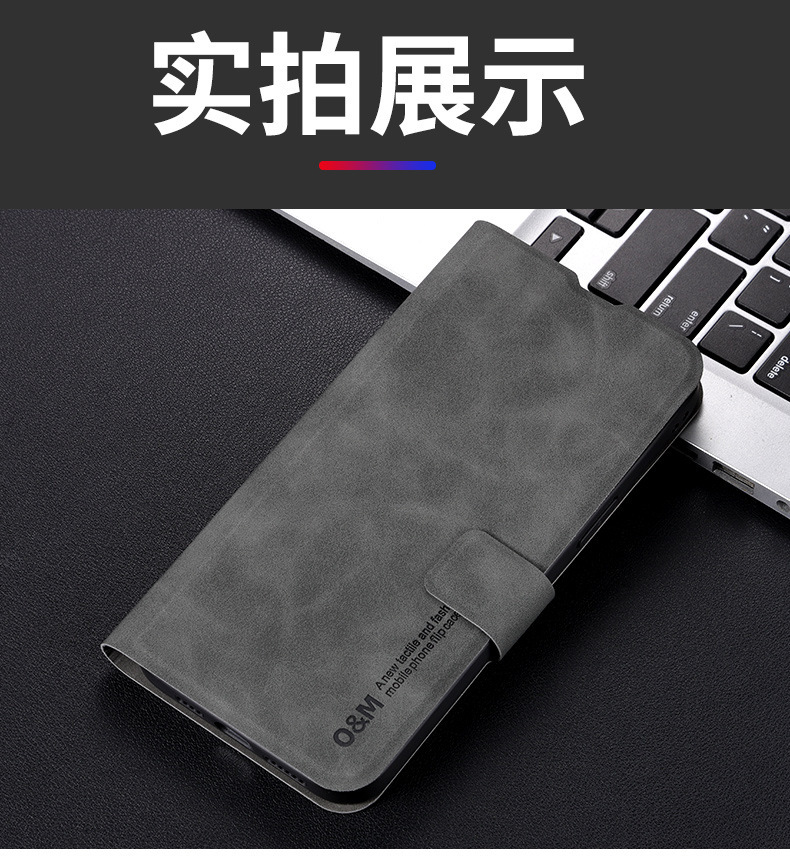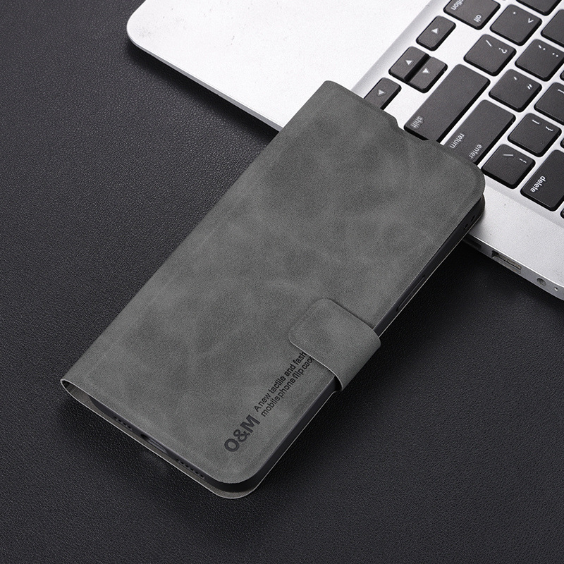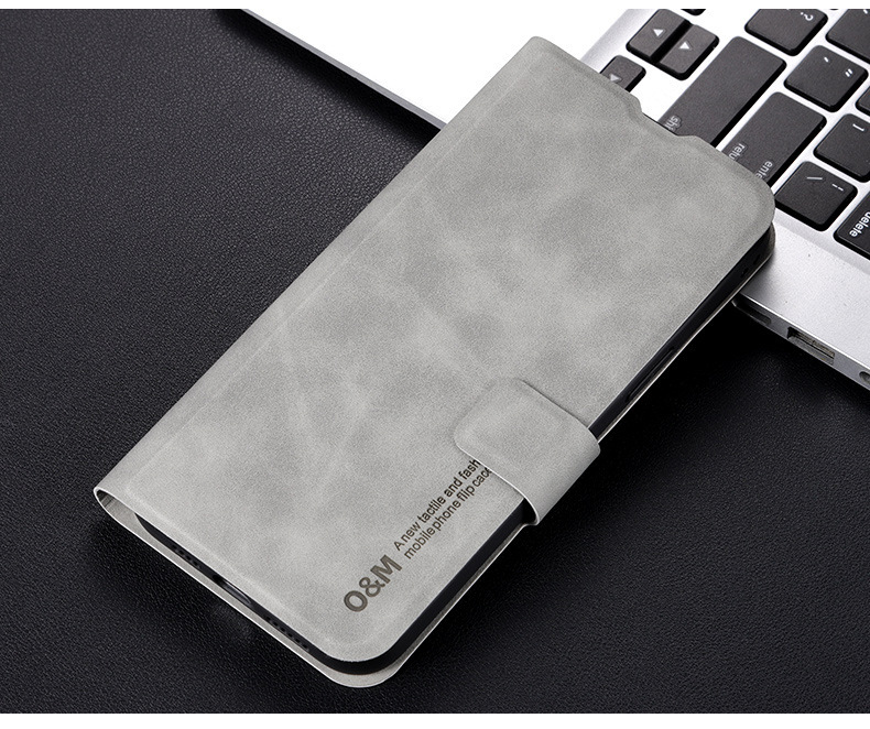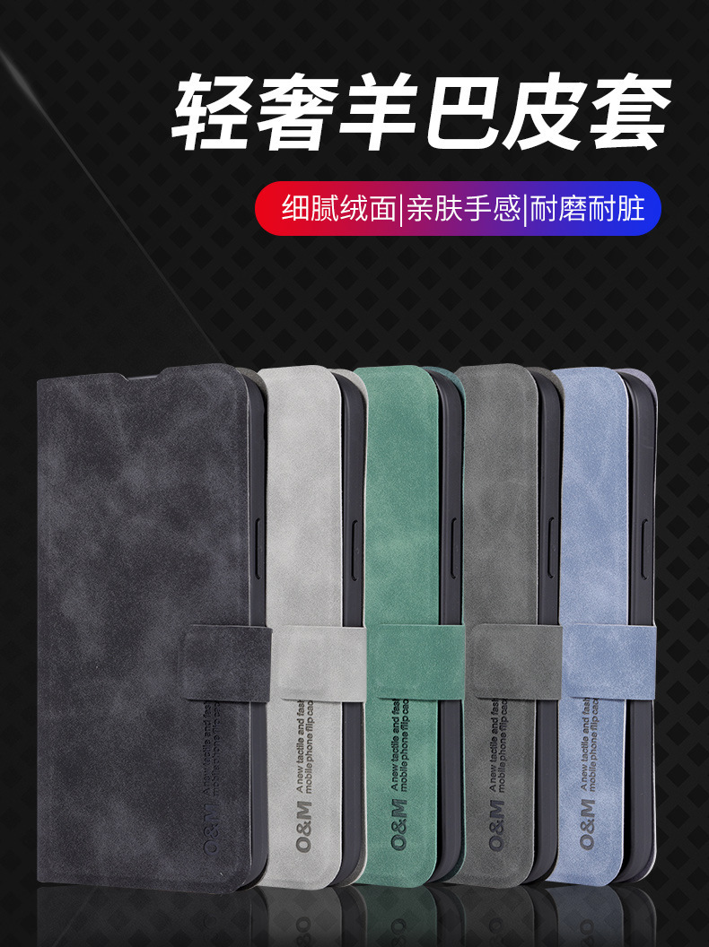 • 다크 그레이 양가죽 패턴 플립 가죽 케이스