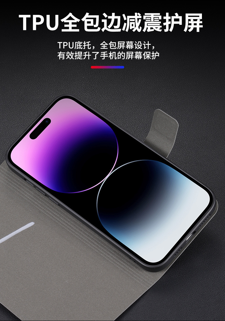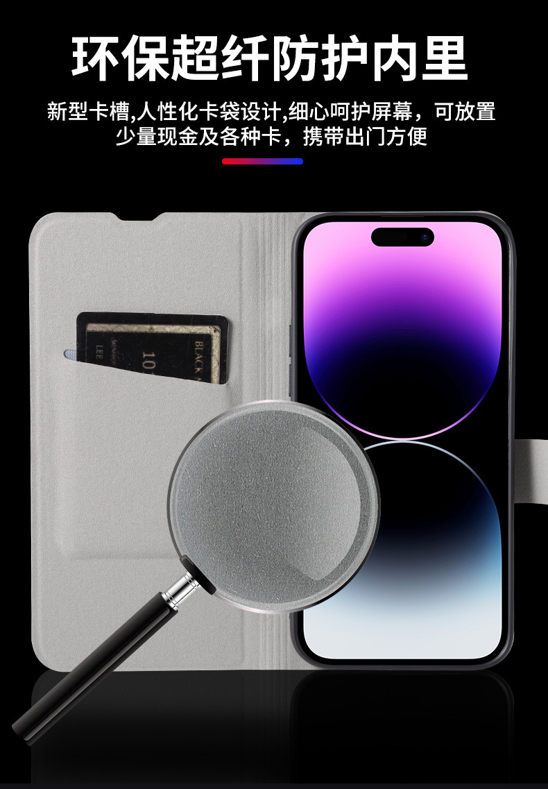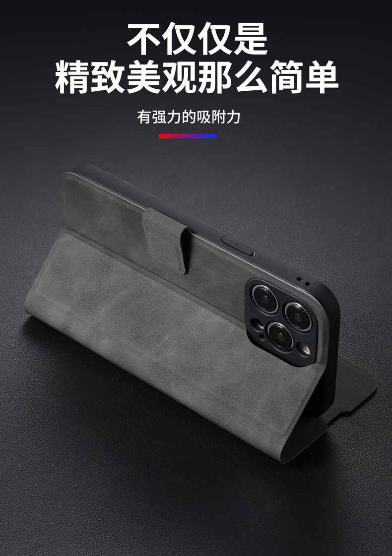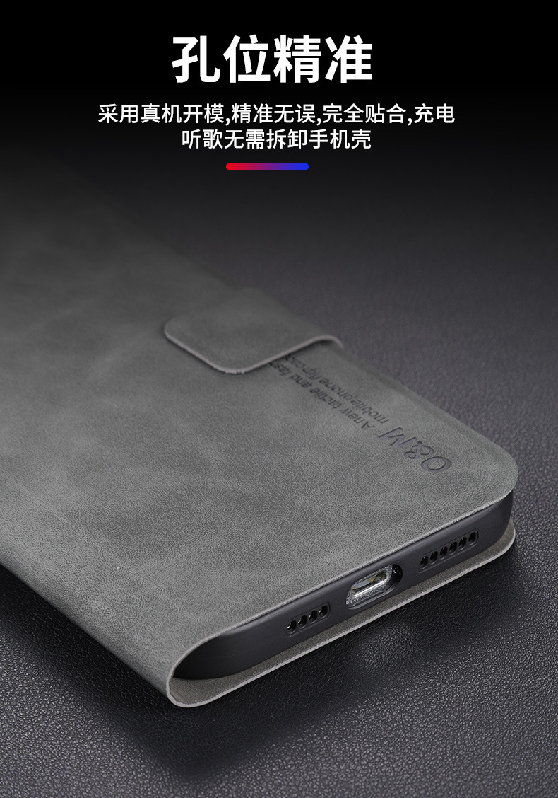 • 다크 그레이 양가죽 패턴 플립 가죽 케이스
