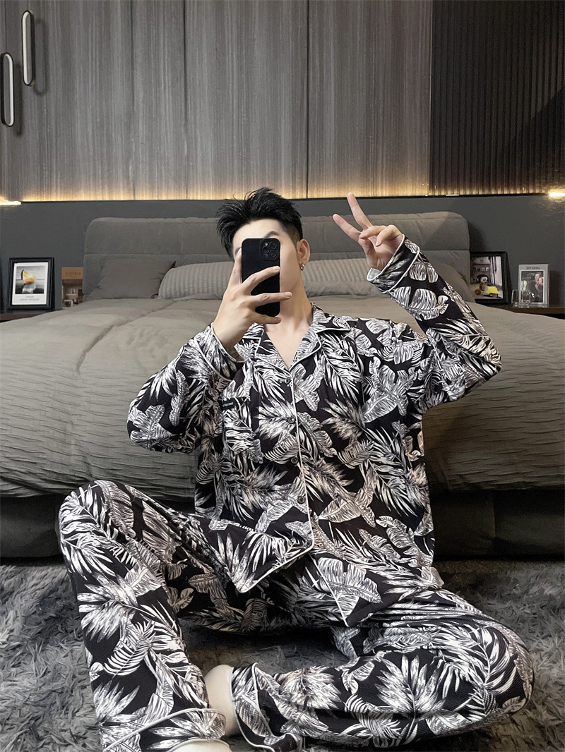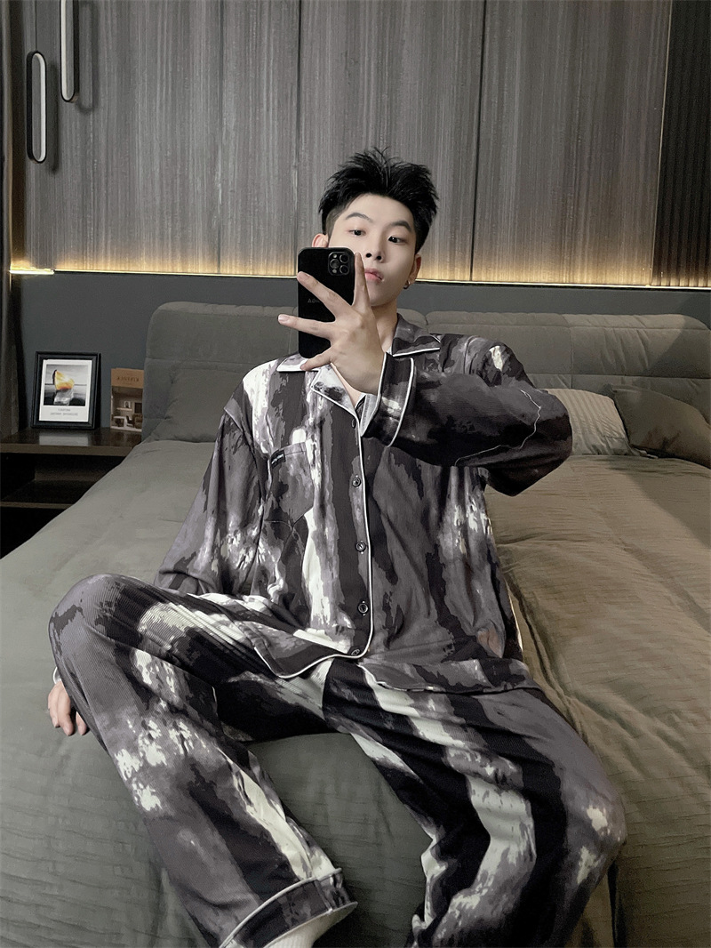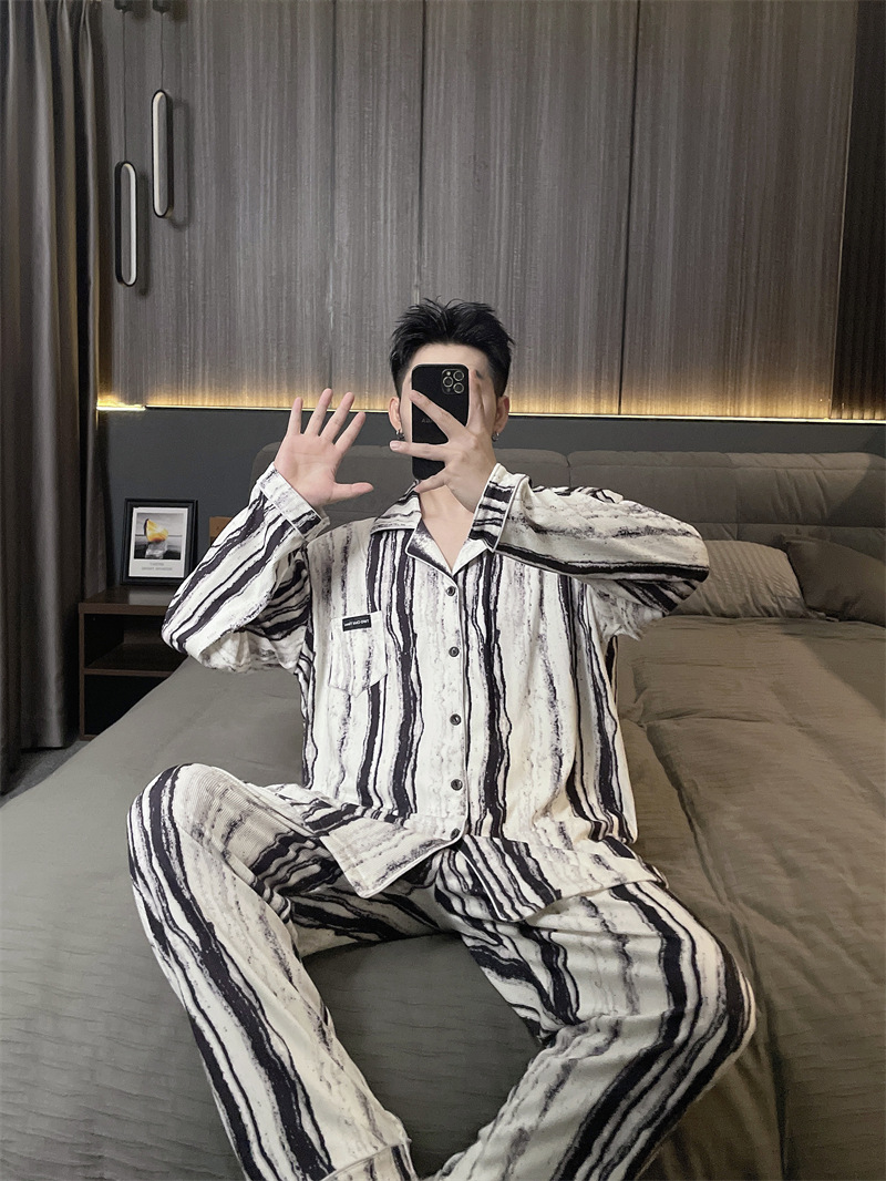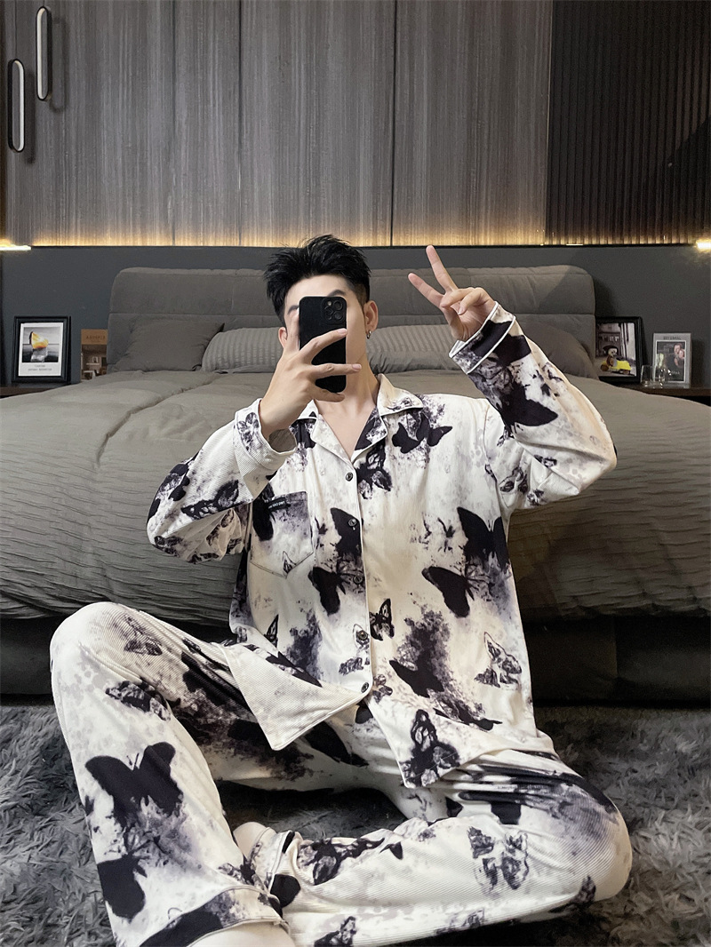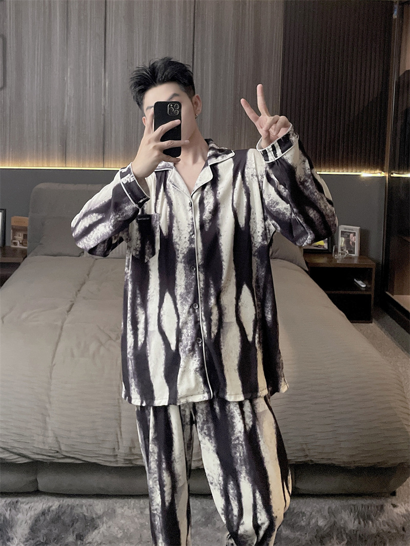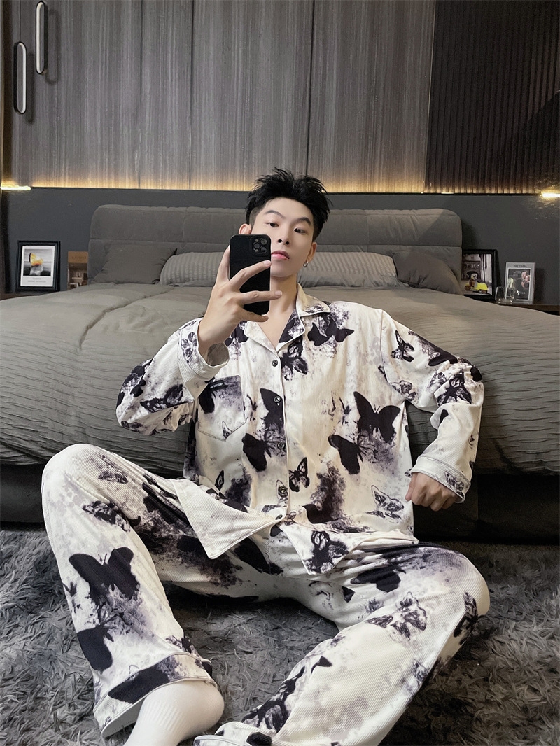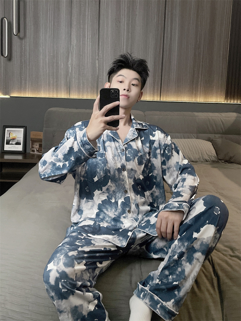 독일 벨벳 따뜻한 잠옷 남성용 봄과 가을 긴 소매와 지방 초대형 300kg 지방 겨울 얇은 벨벳 체크 무늬 홈 의류