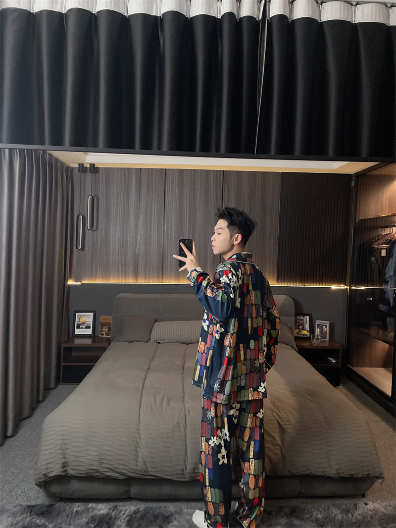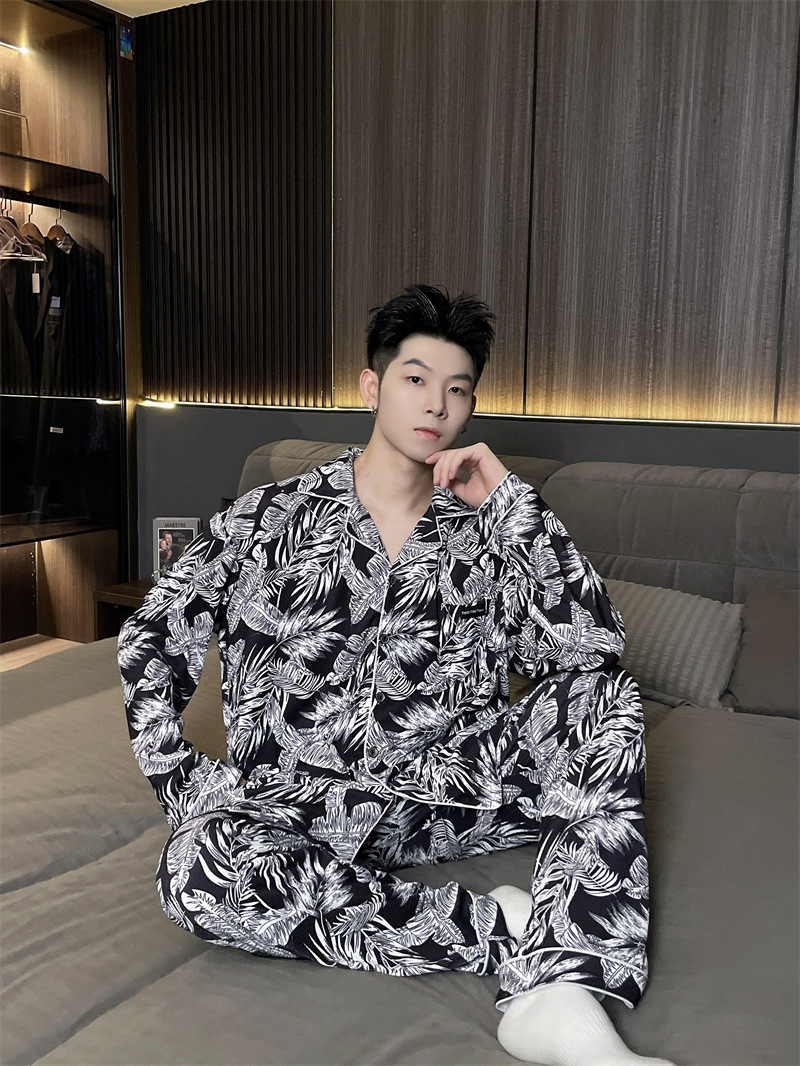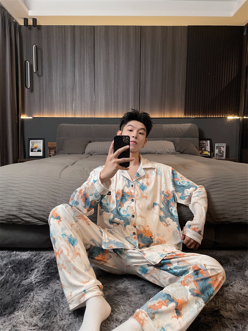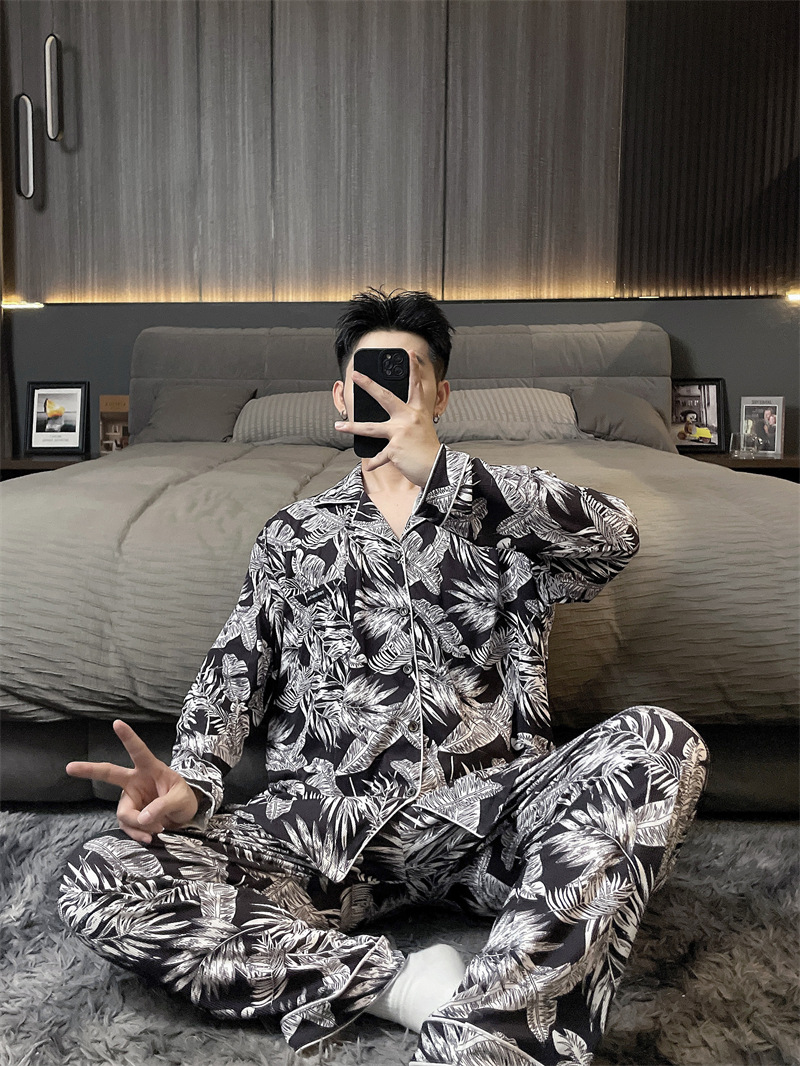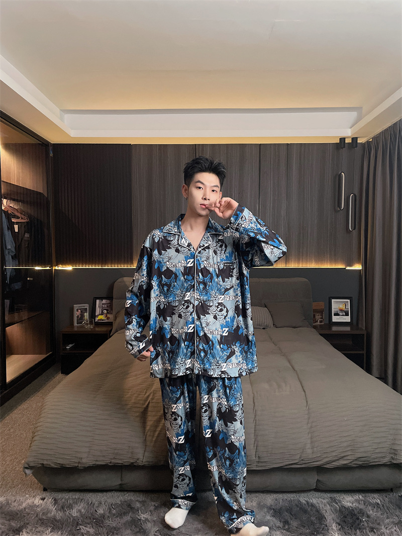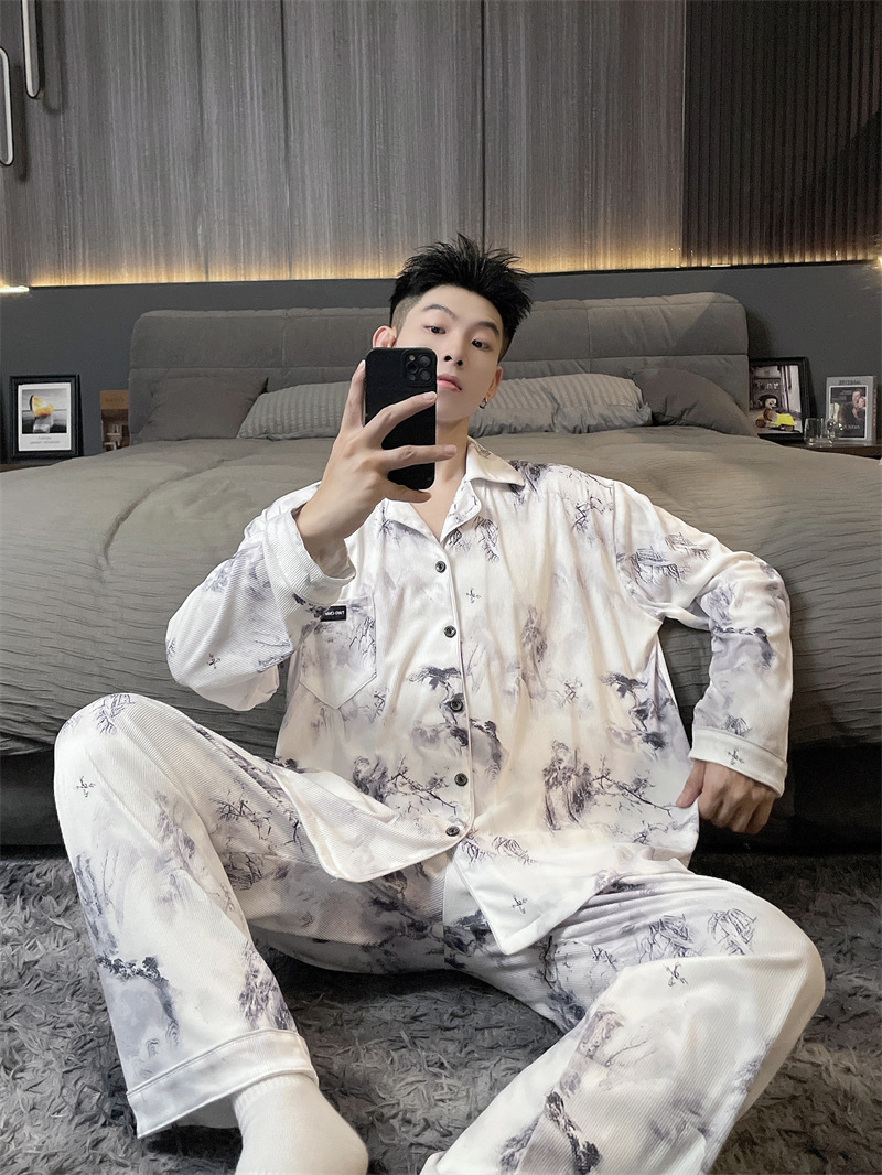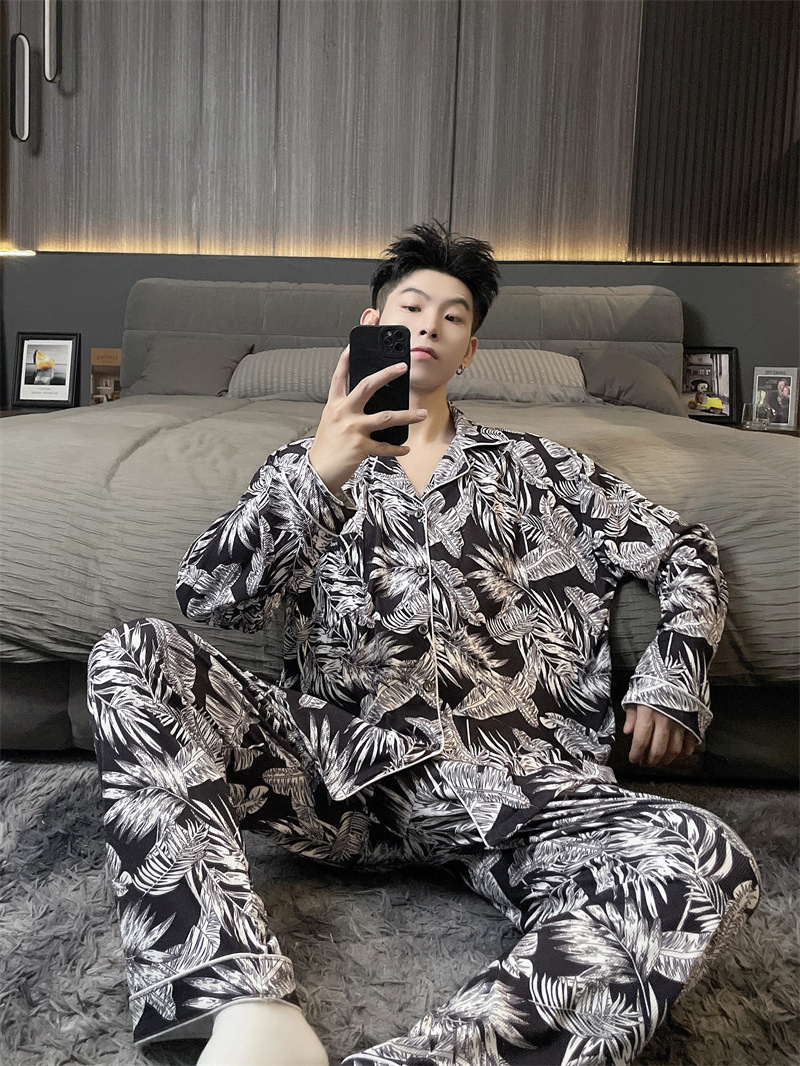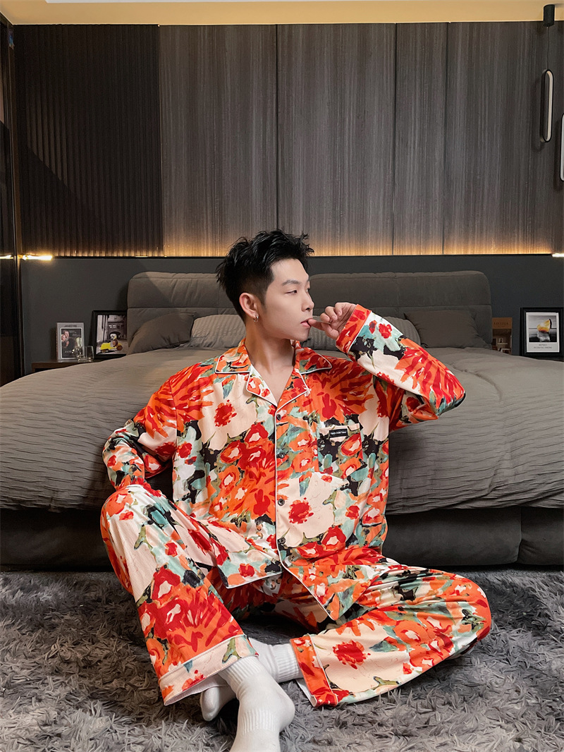 독일 벨벳 따뜻한 잠옷 남성용 봄과 가을 긴 소매와 지방 초대형 300kg 지방 겨울 얇은 벨벳 체크 무늬 홈 의류