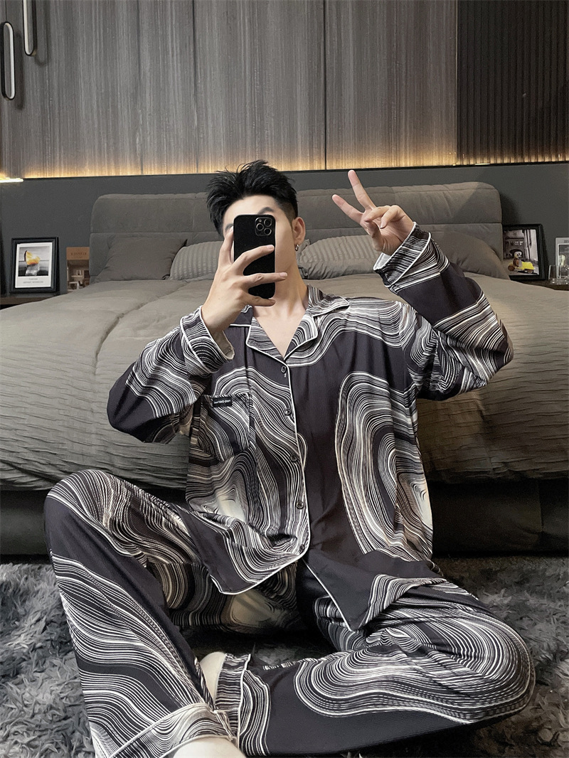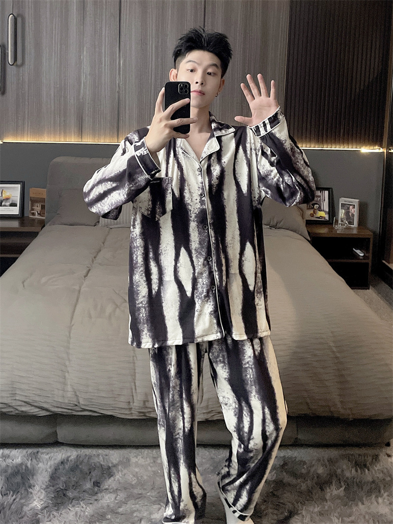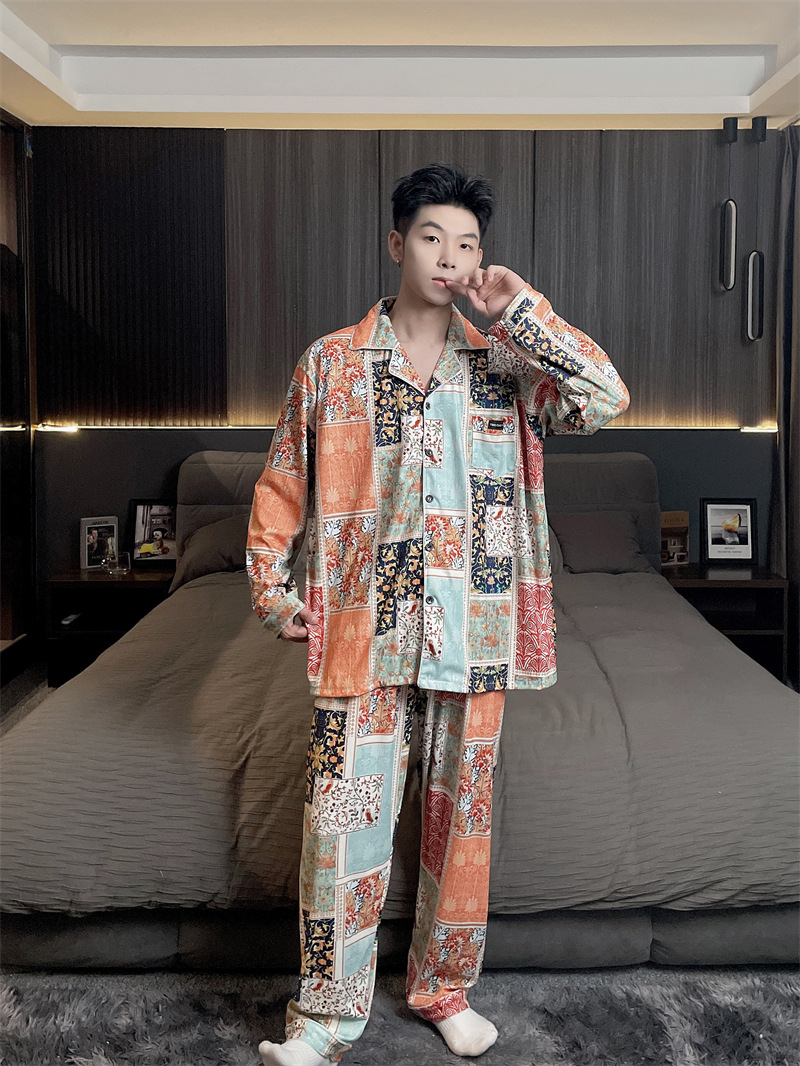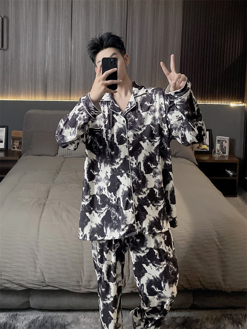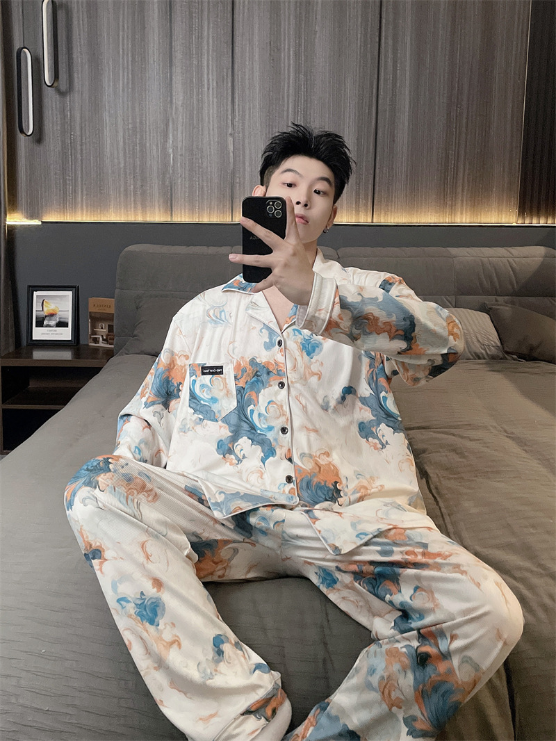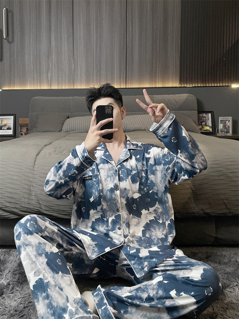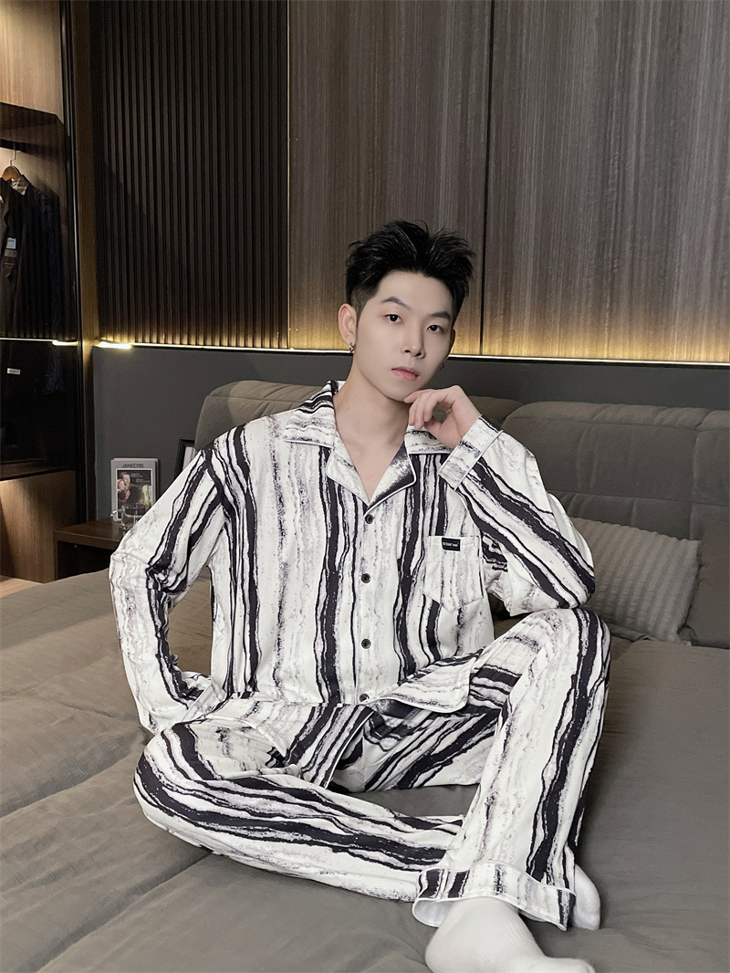 독일 벨벳 따뜻한 잠옷 남성용 봄과 가을 긴 소매와 지방 초대형 300kg 지방 겨울 얇은 벨벳 체크 무늬 홈 의류