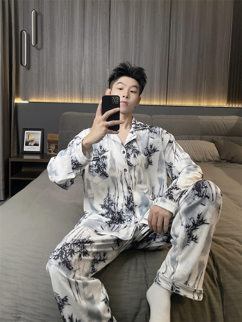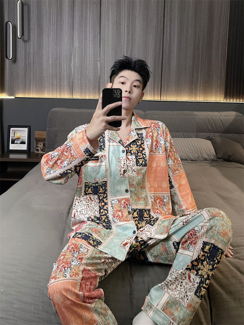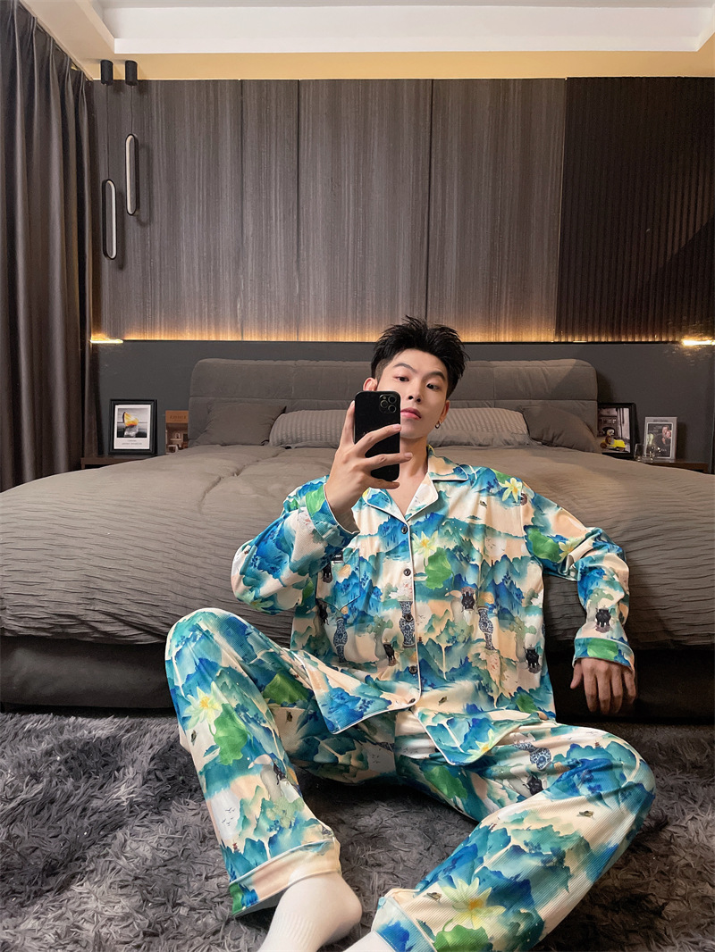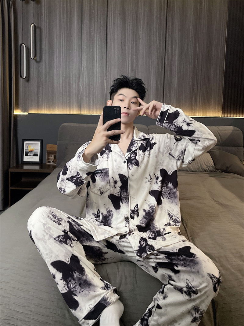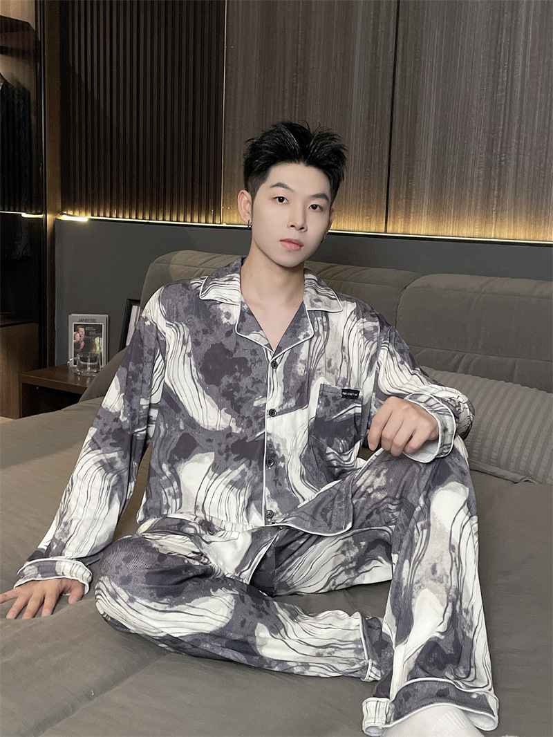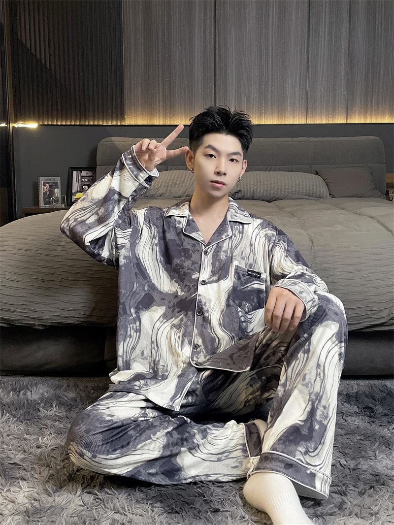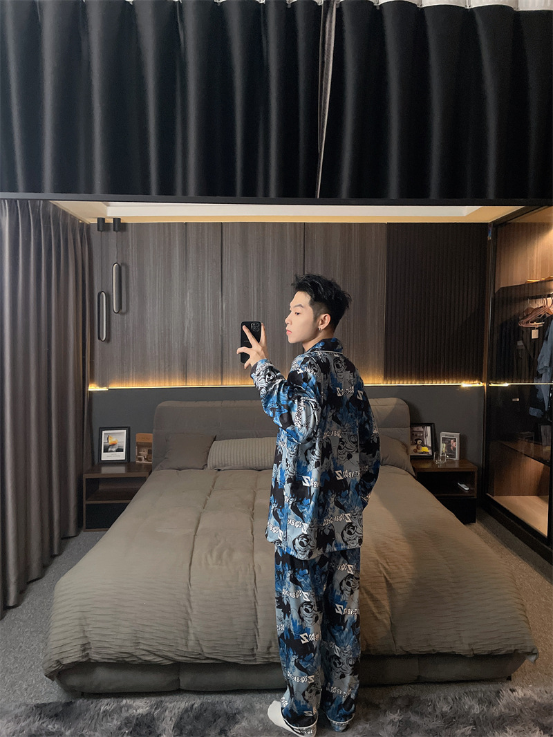 독일 벨벳 따뜻한 잠옷 남성용 봄과 가을 긴 소매와 지방 초대형 300kg 지방 겨울 얇은 벨벳 체크 무늬 홈 의류