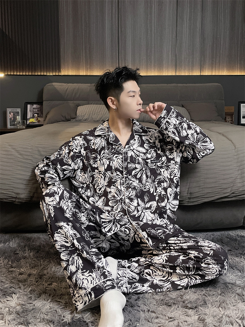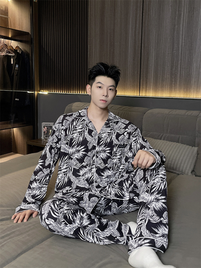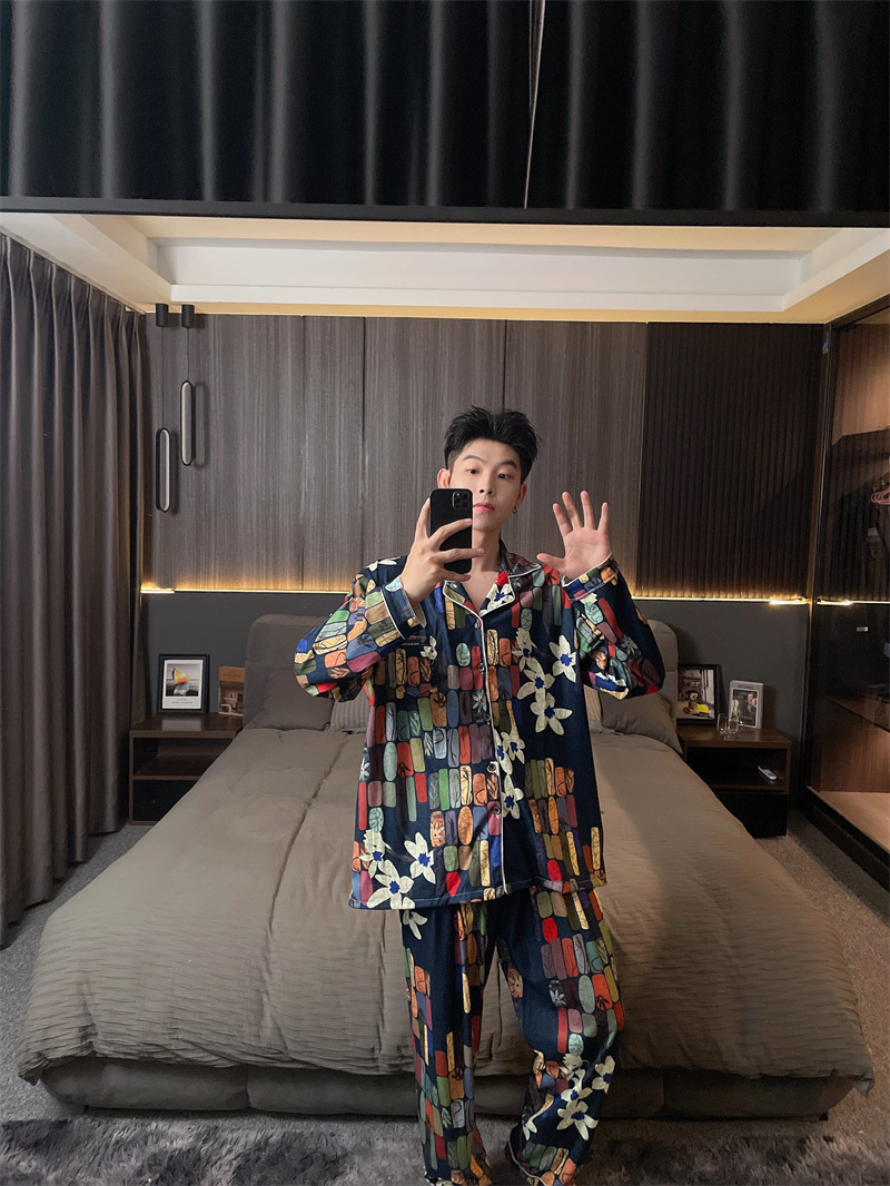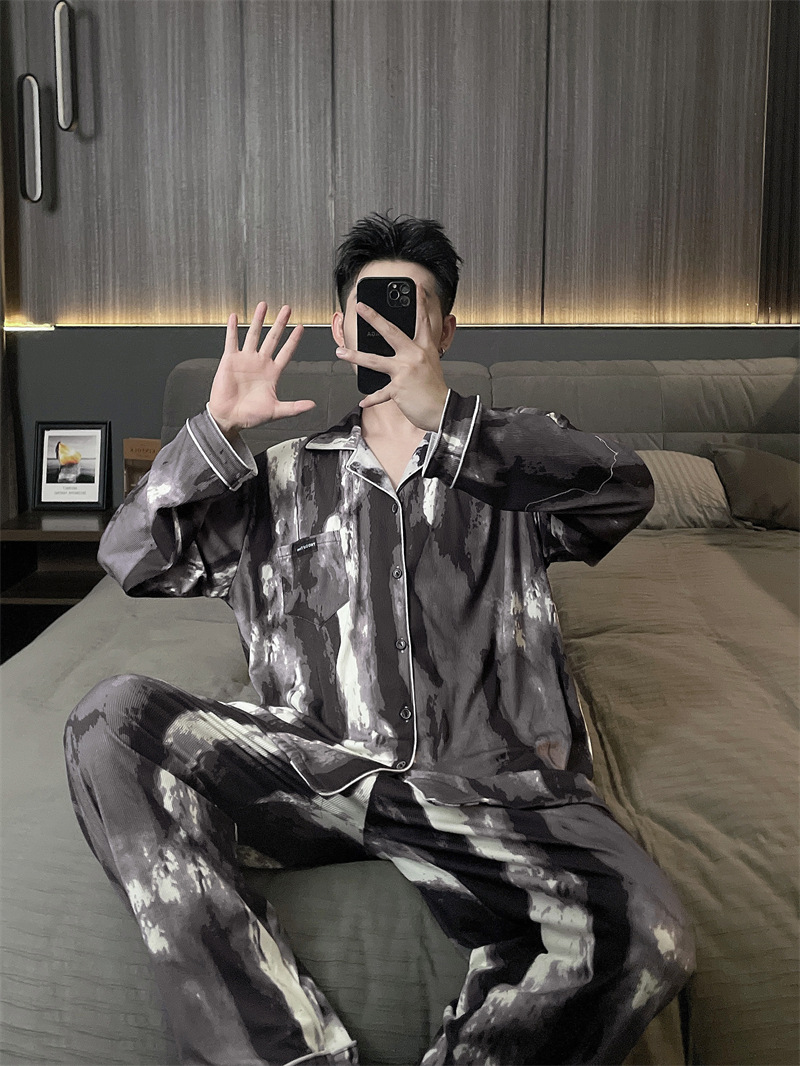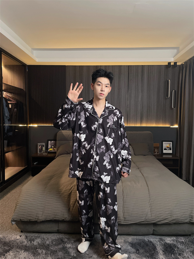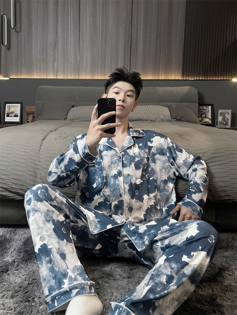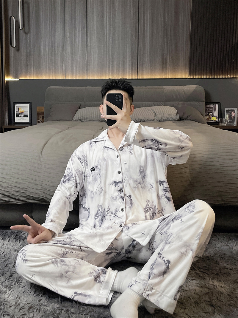 독일 벨벳 따뜻한 잠옷 남성용 봄과 가을 긴 소매와 지방 초대형 300kg 지방 겨울 얇은 벨벳 체크 무늬 홈 의류